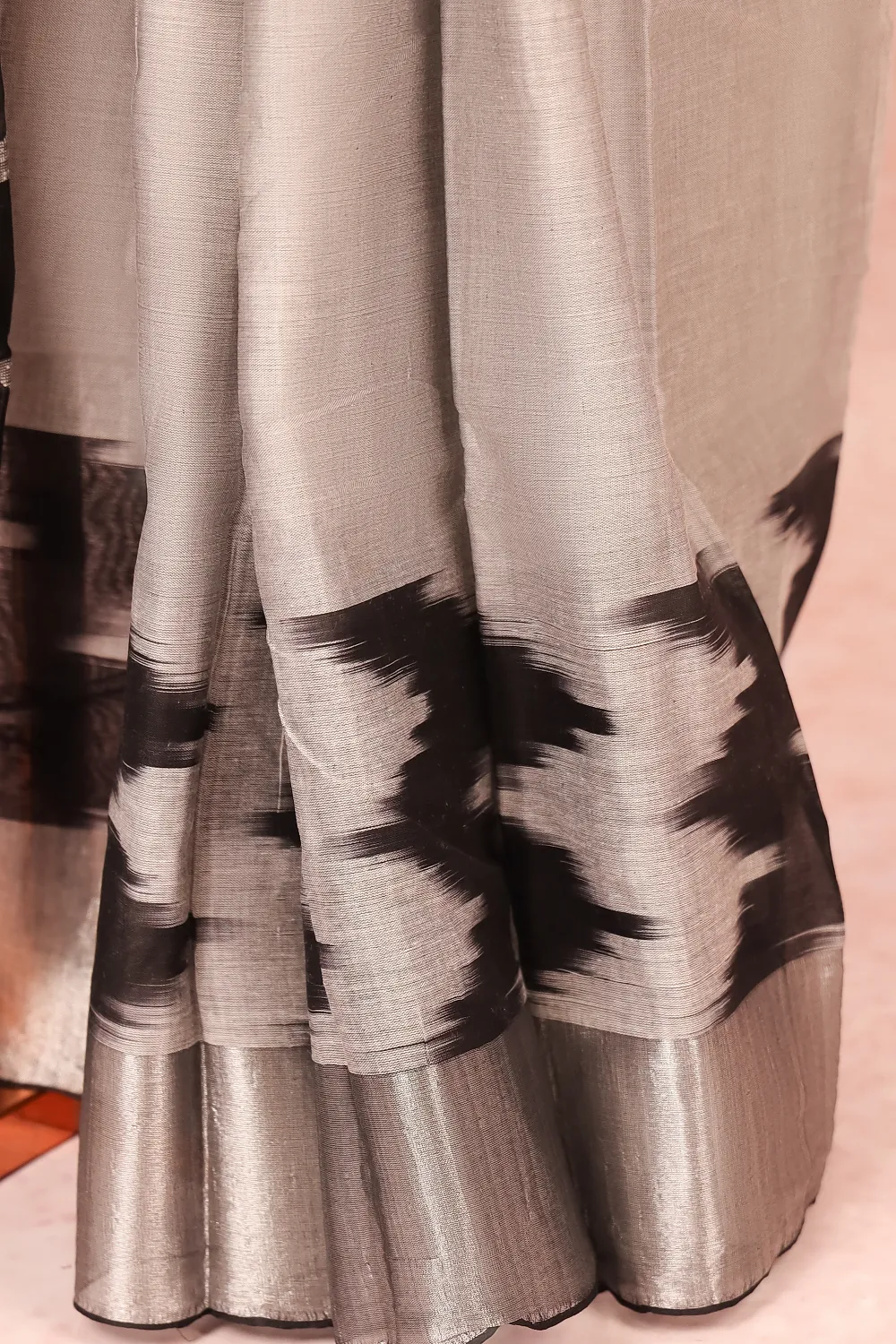 Grey Cotton Plain Body Saree with Silver border. Includes Unstitched Blouse