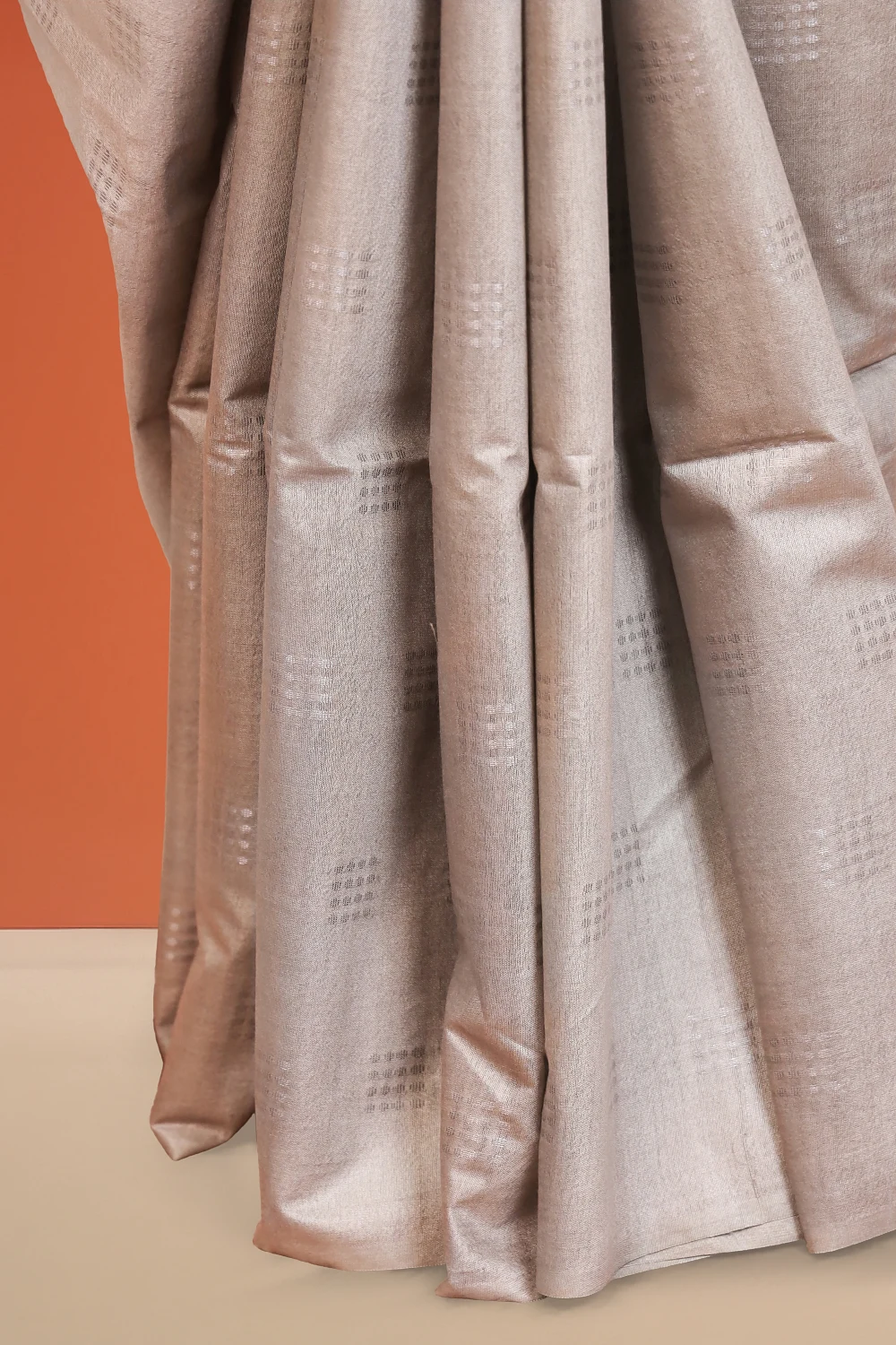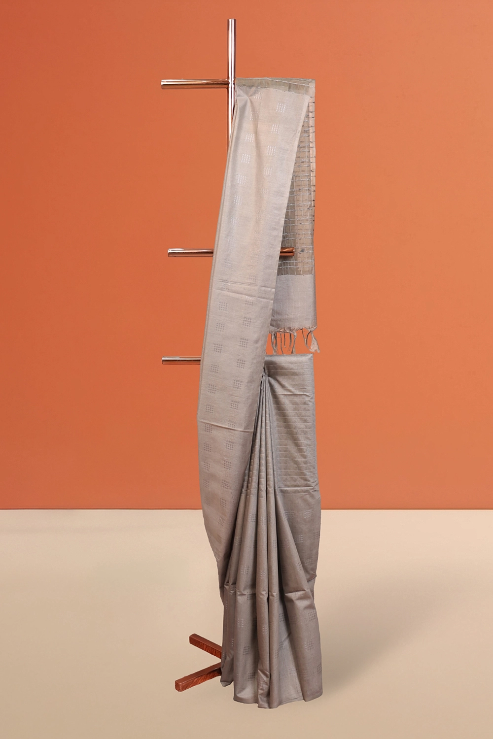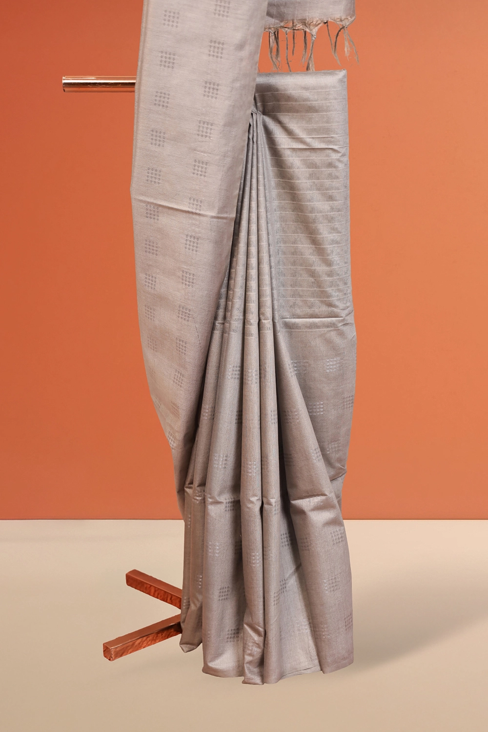 Grey Semi Tussar Self Design Saree without Border. Includes Unstitched Blouse