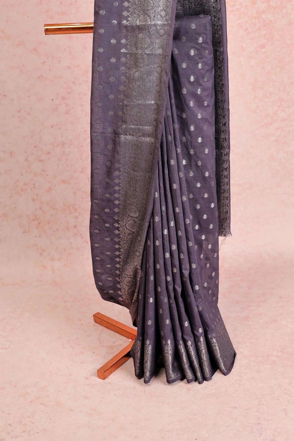 Greyish Purple Banarasi Georgette Butta Saree with Designer Border. Includes Unstitched Blouse