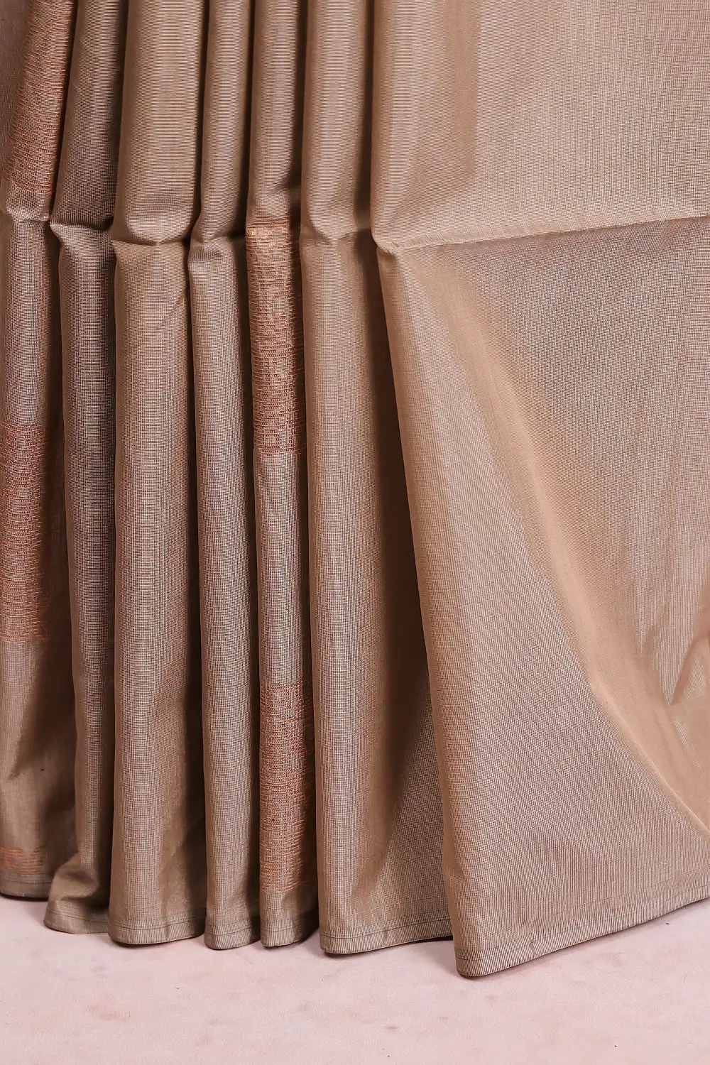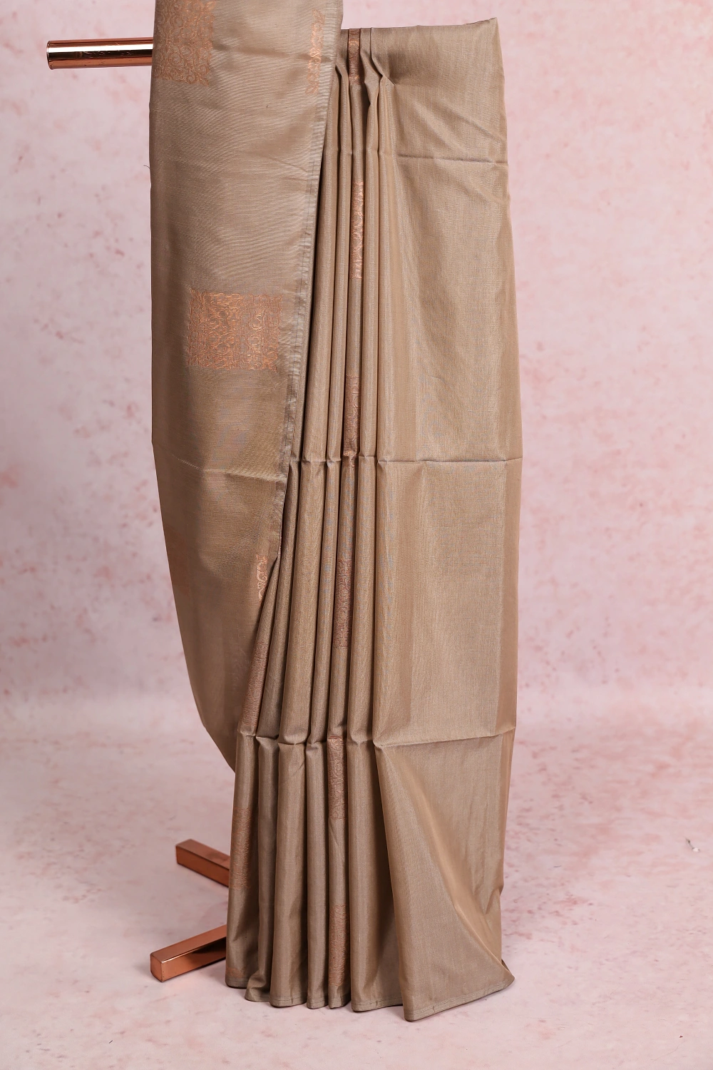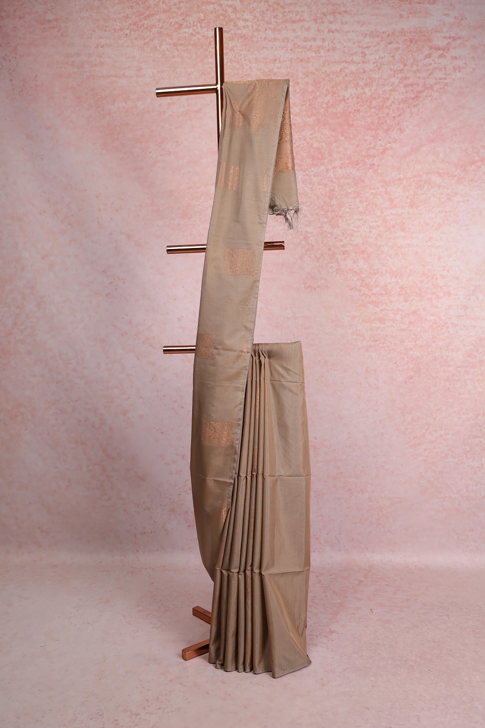 Khaki Color Semi Silk Box Design Saree With Without Border. Includes Un Stitched Blouse