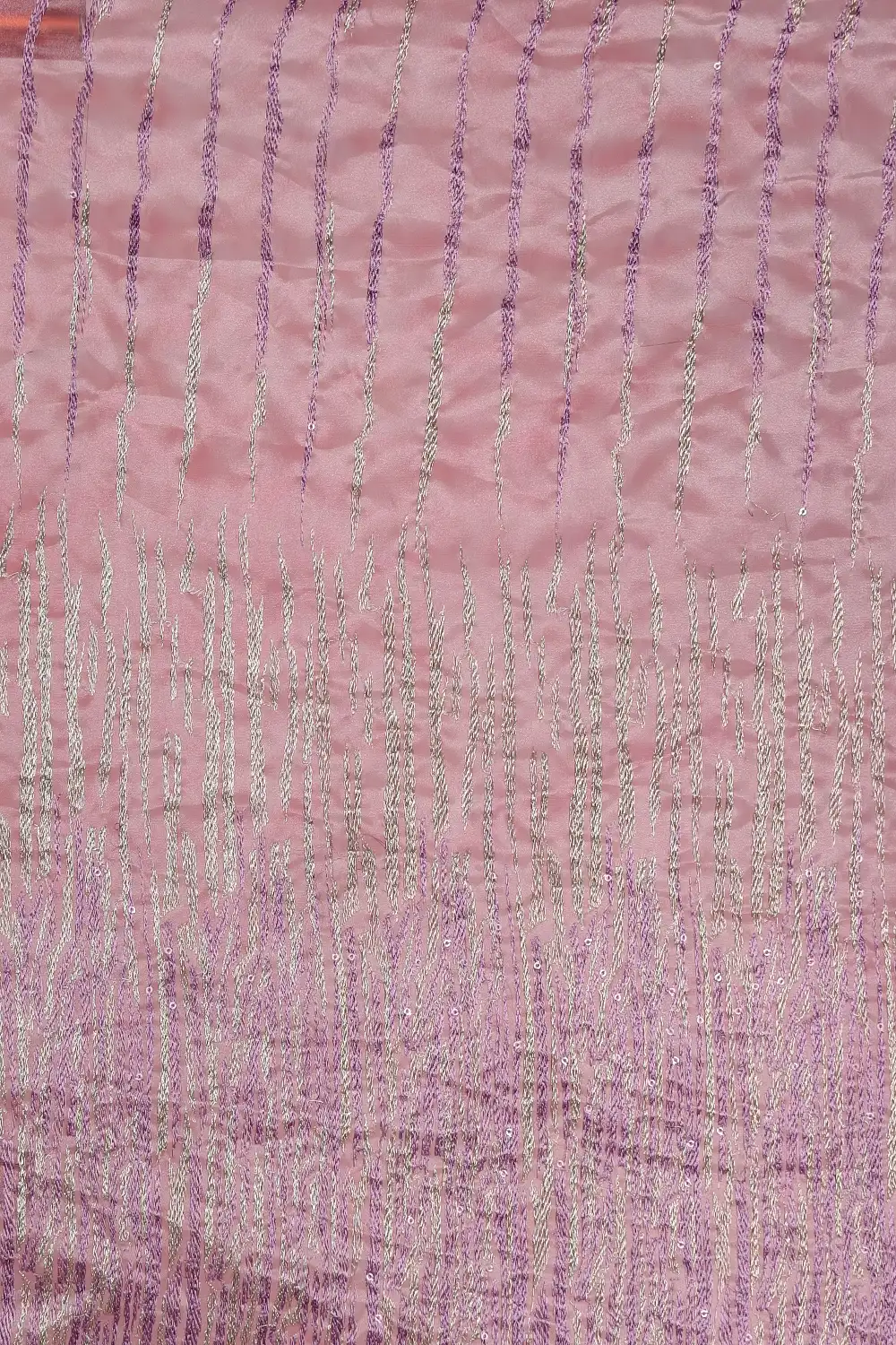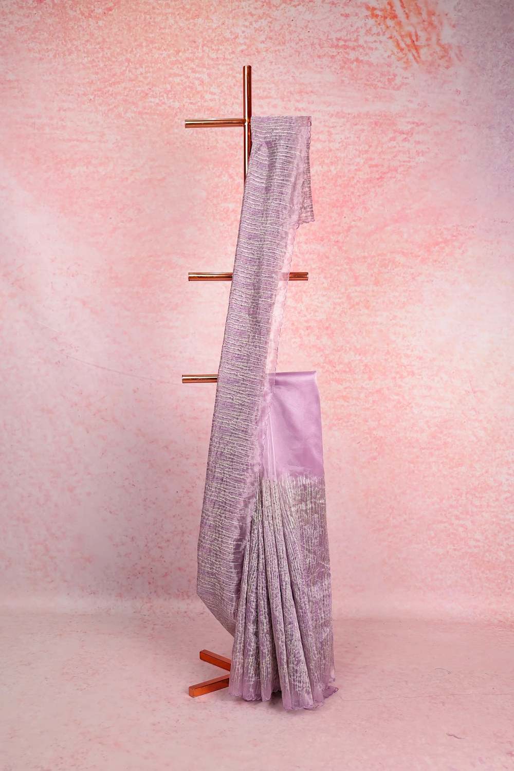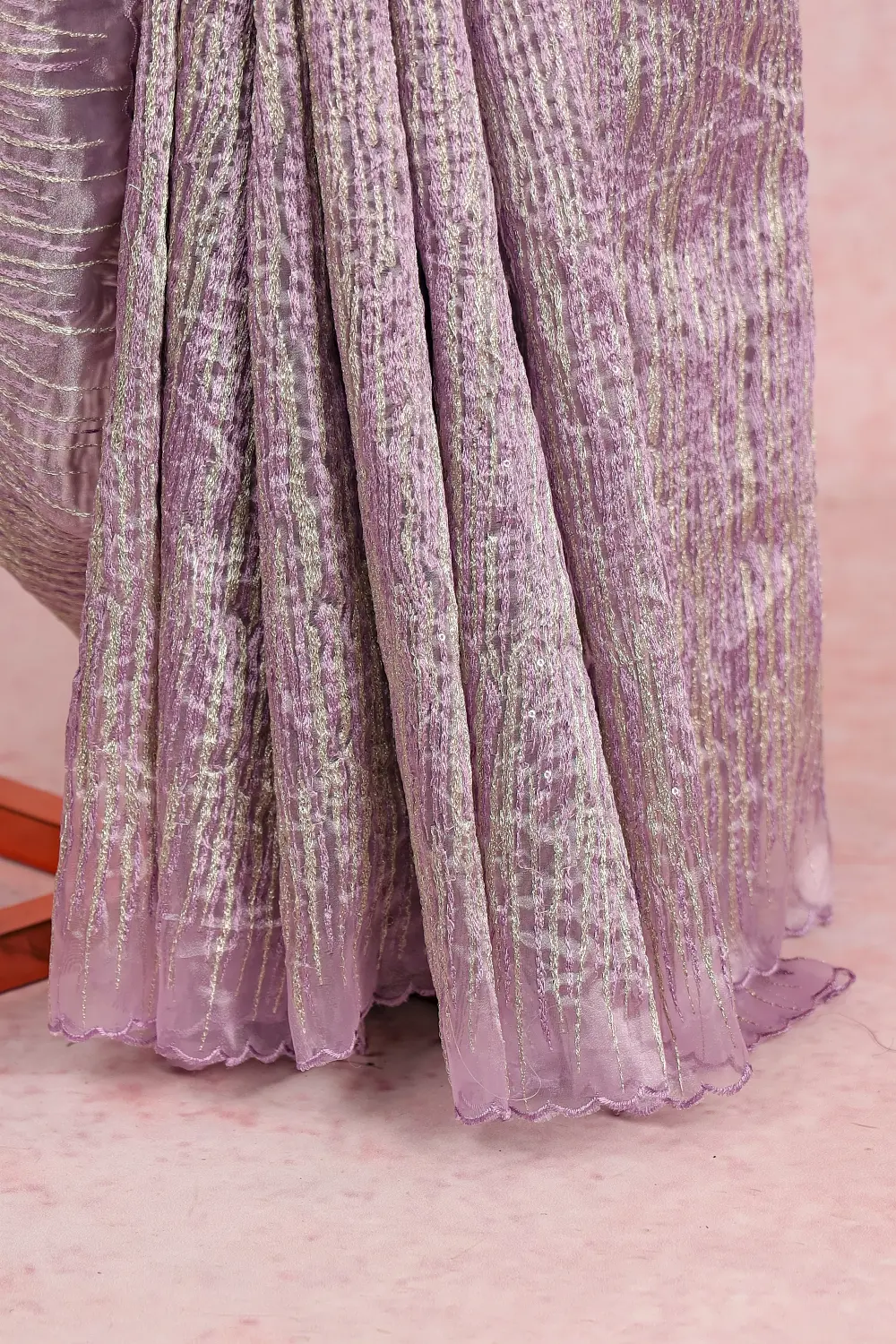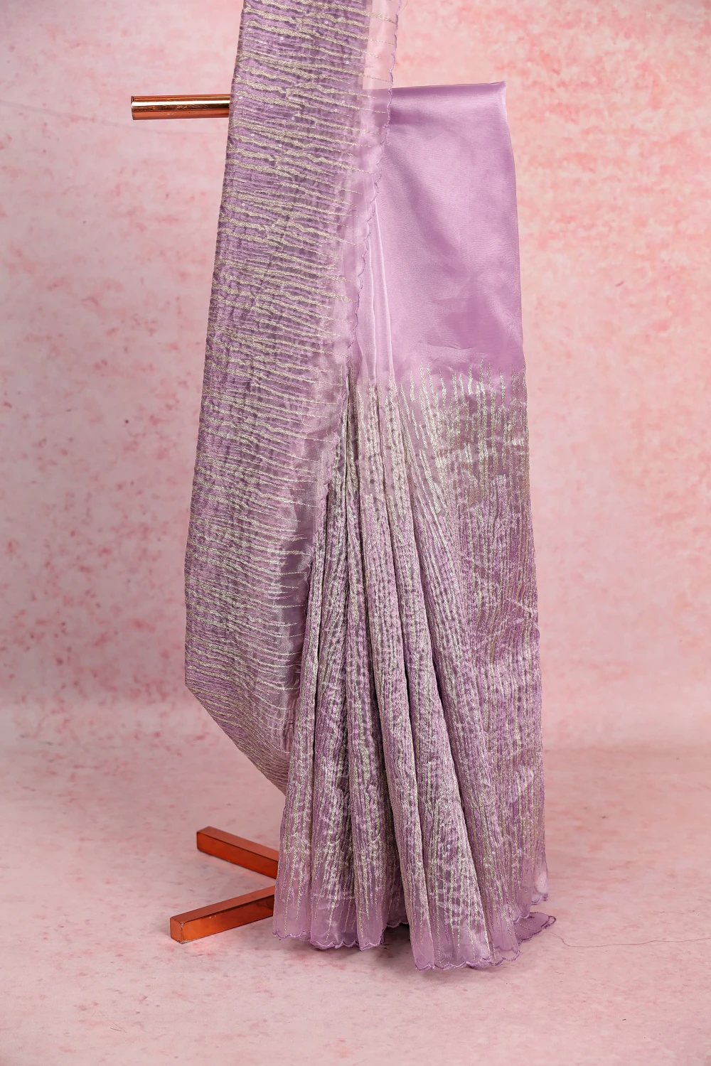 Lavender Glass Organza Thread Work Saree with Scallop Border. Includes Unstitched Blouse