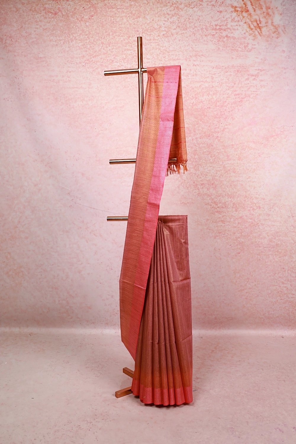 Lavender Semi Tussar Zari Design Saree With Designer Border. Includes Unstitched Blouse