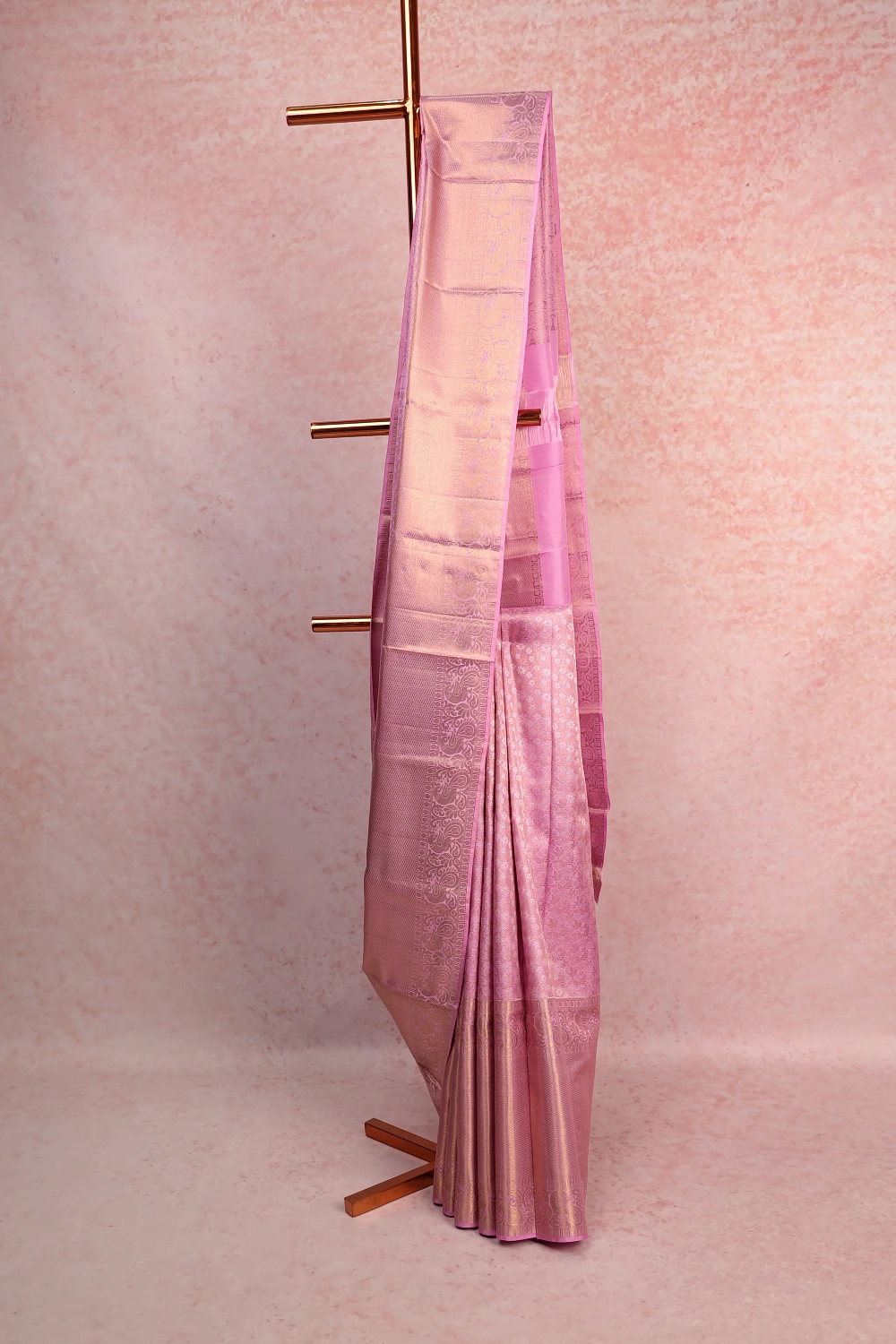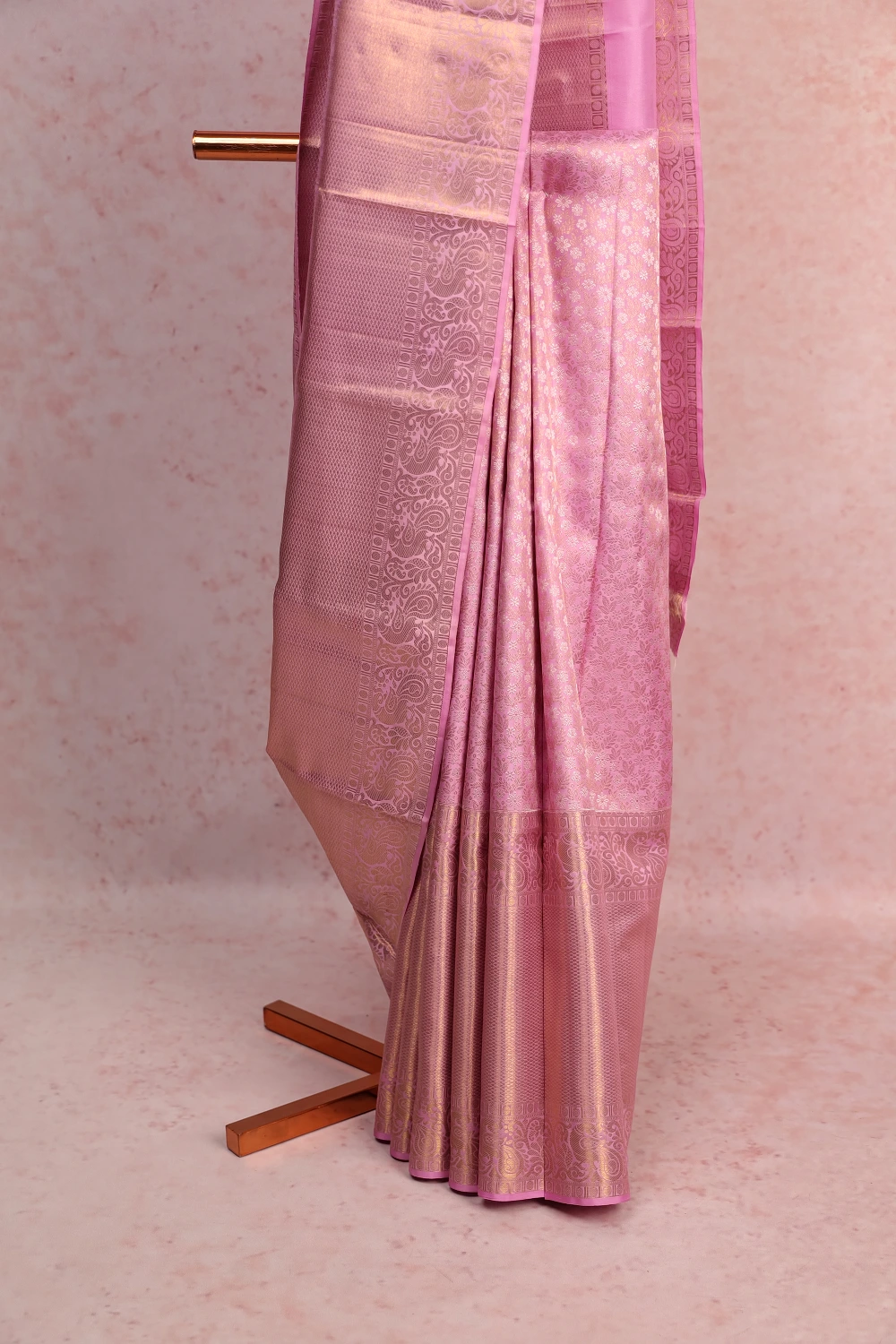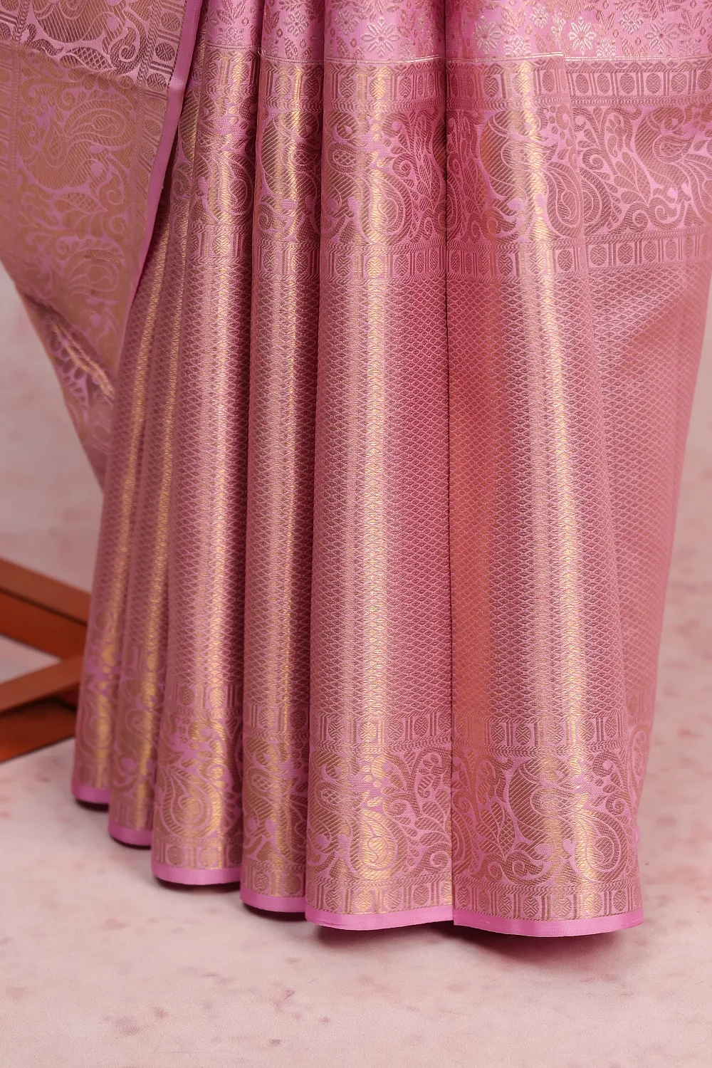 Lavender Kancheepuram Silk Brocade Saree with Designer Border. Includes Un stitched Blouse