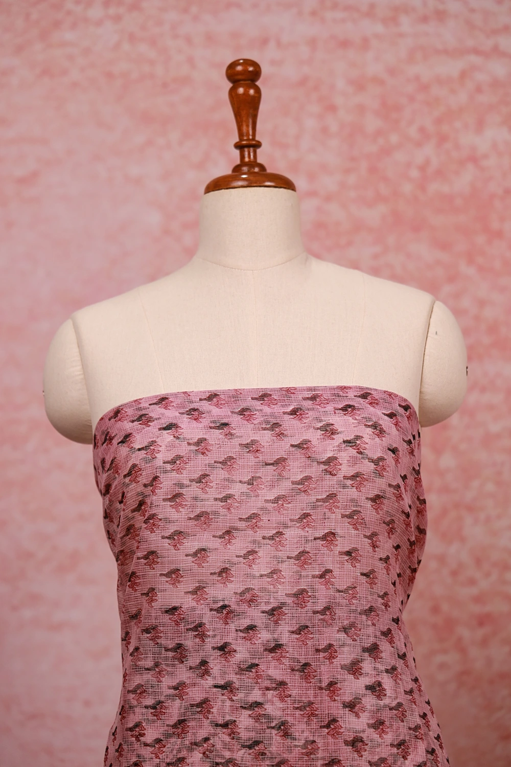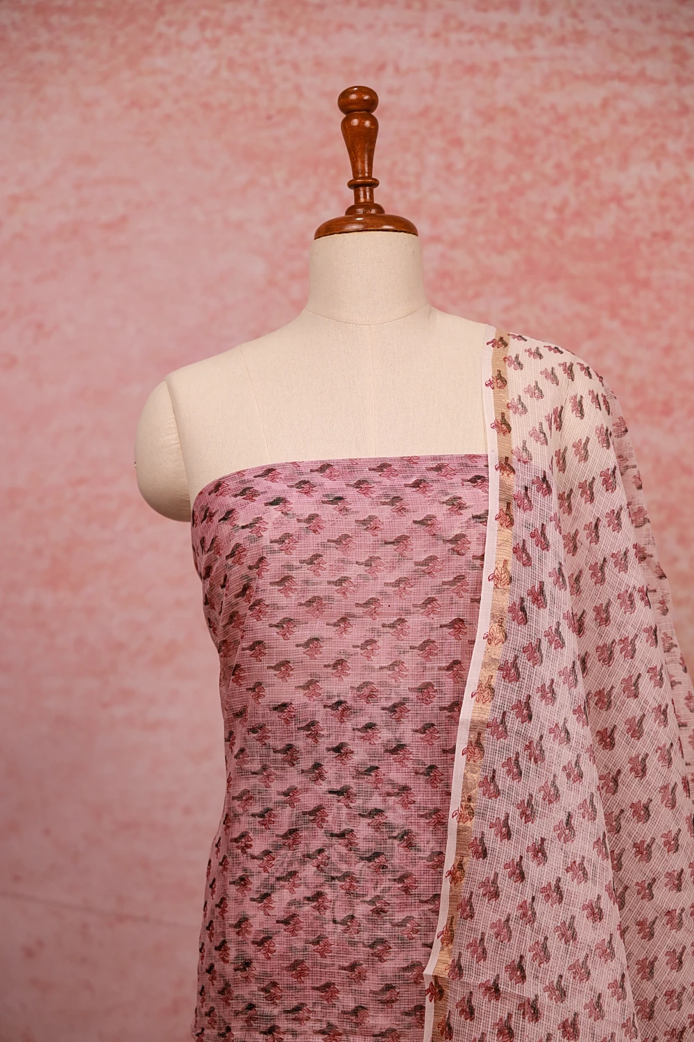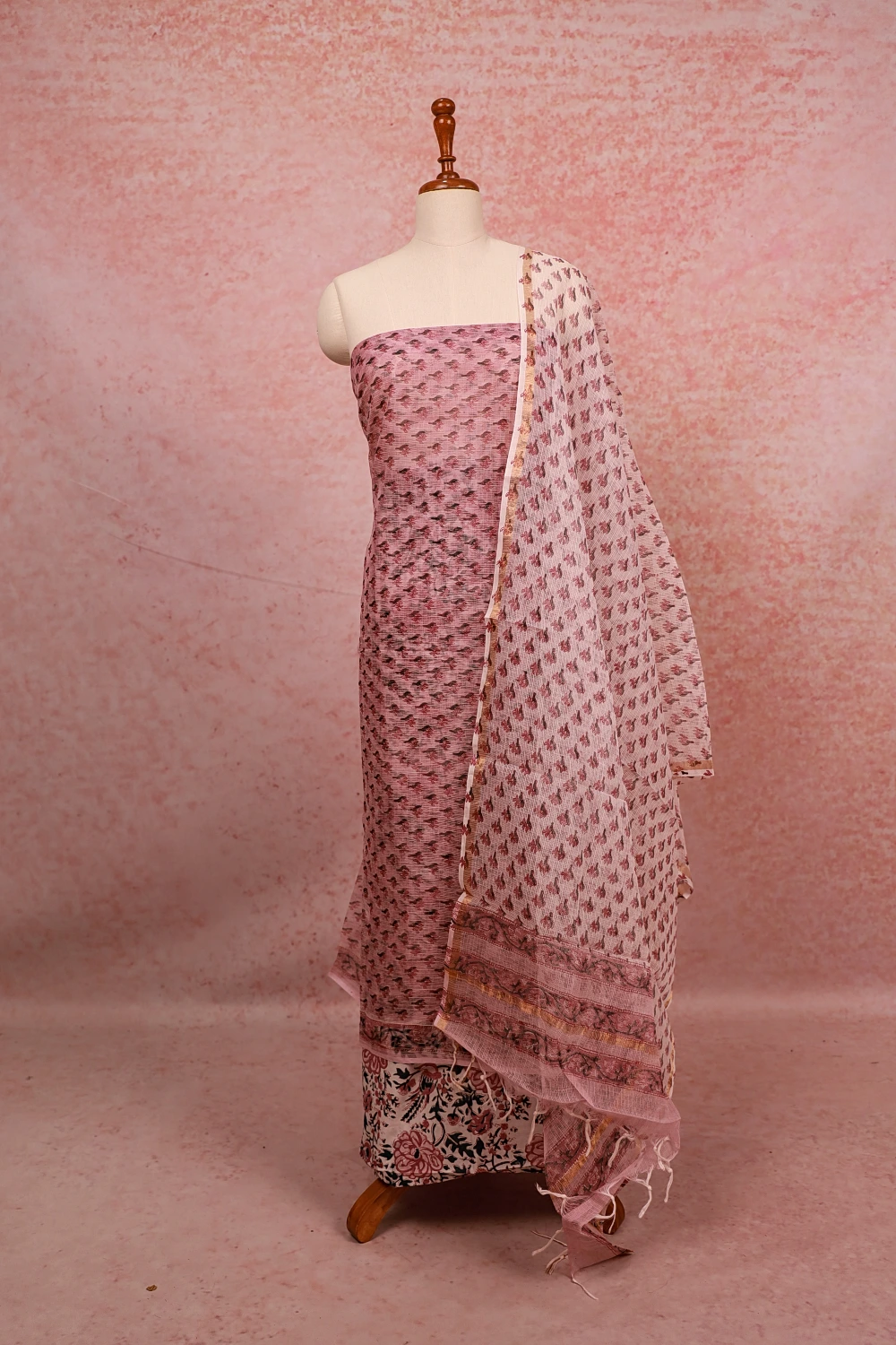 Lavender Pink Net Kota Printed Unstitched Churidar Material. Includes Dupatta.