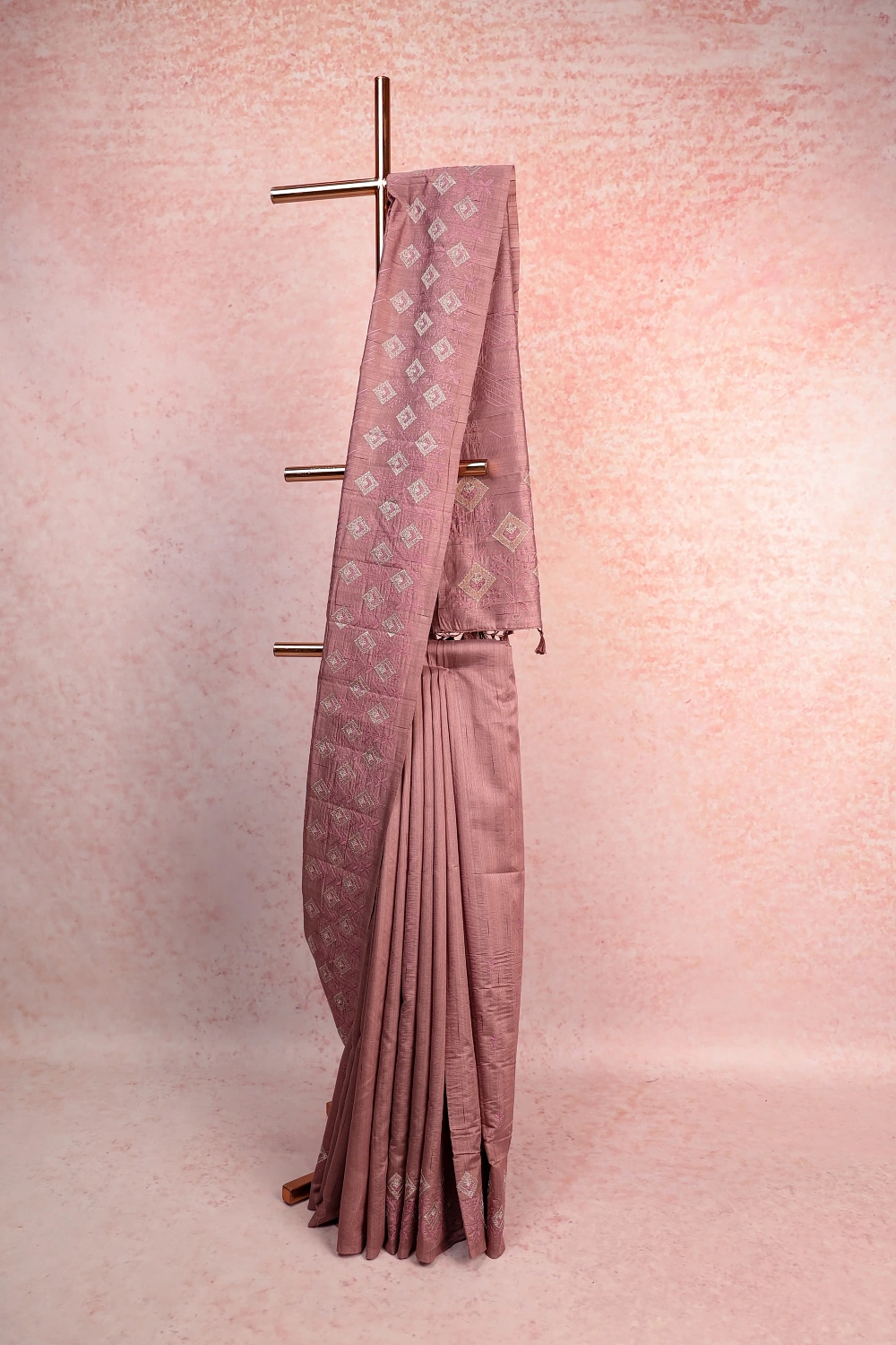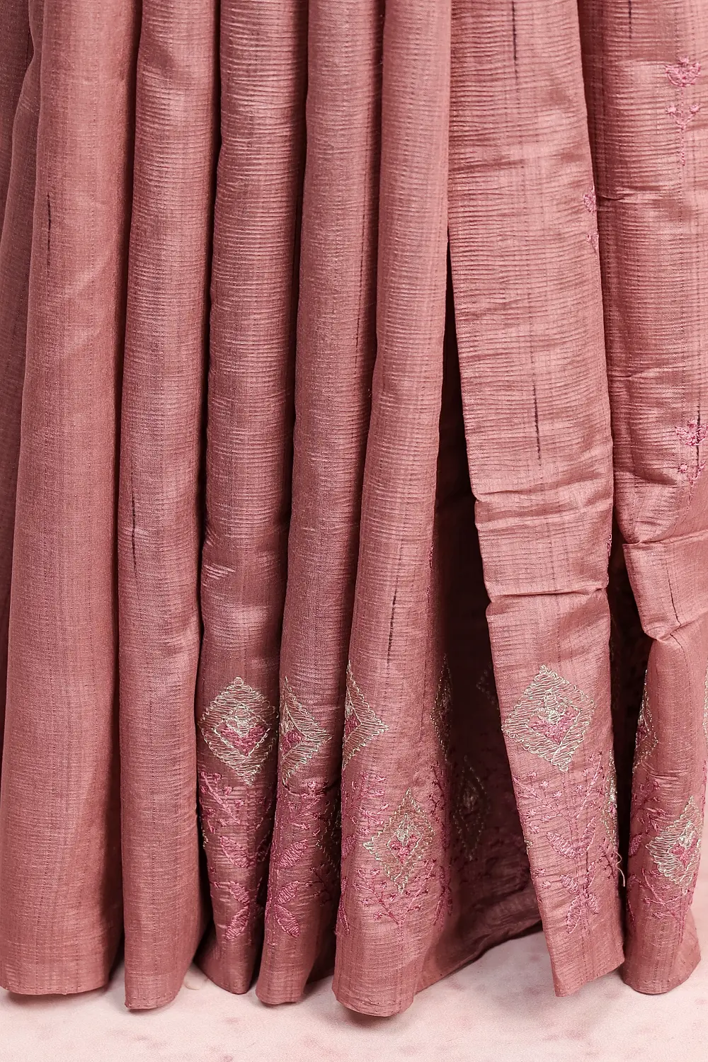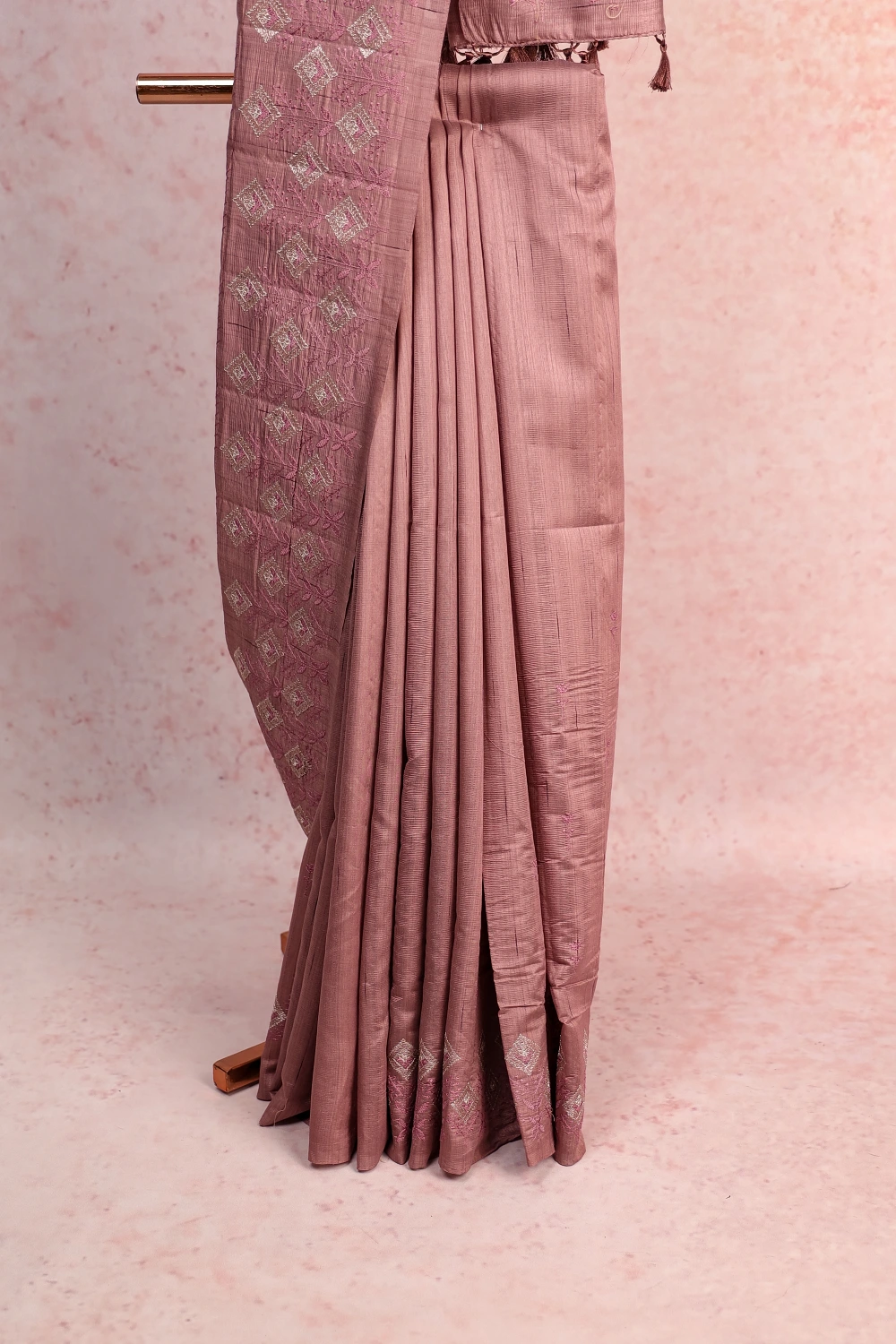 Lavender Semi Jute Embroidery Saree with Thread Border. Includes Un stitched Blouse
