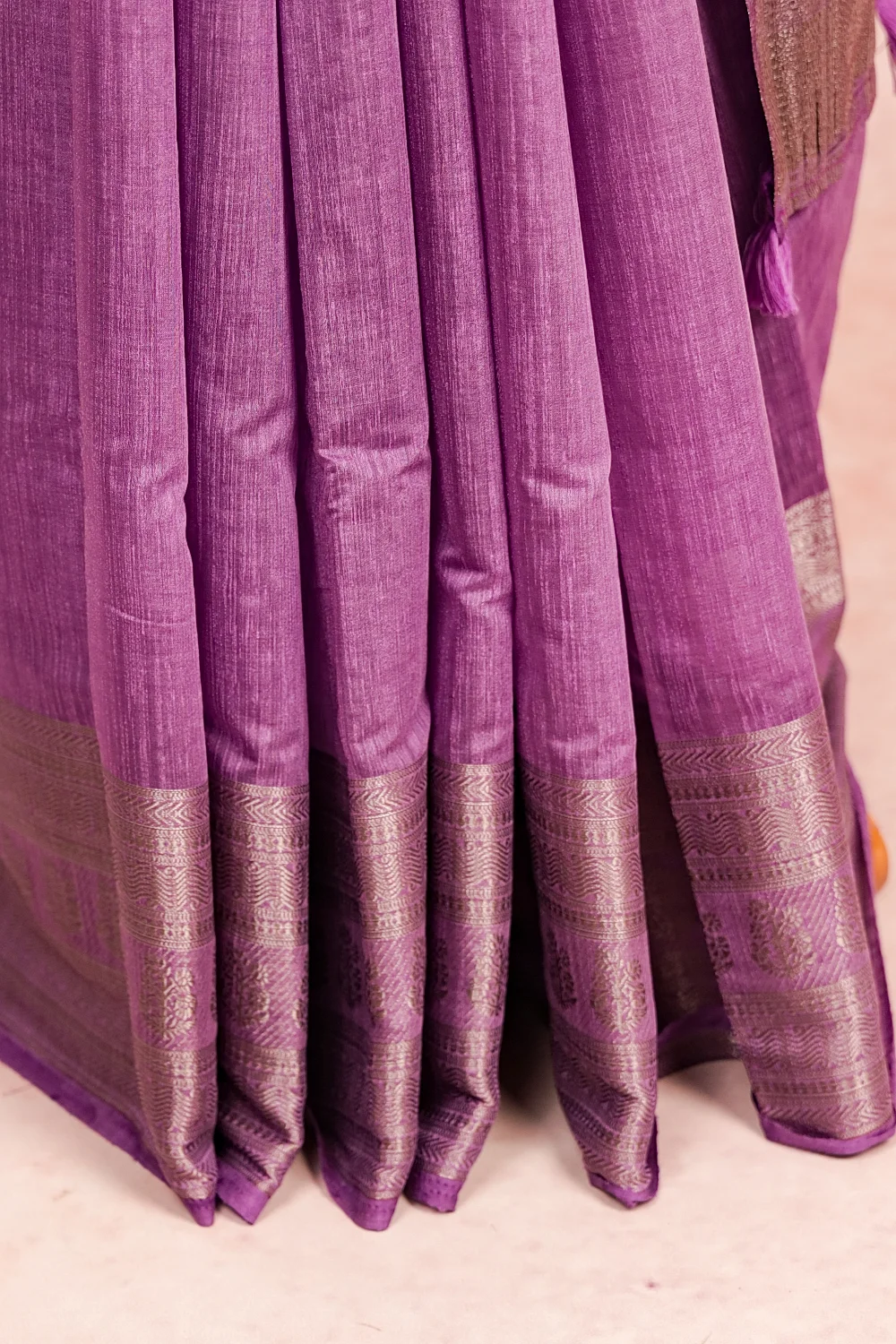 Lavender Semi Jute Plain Saree With Designer Border. Includes Unstitched Blouse