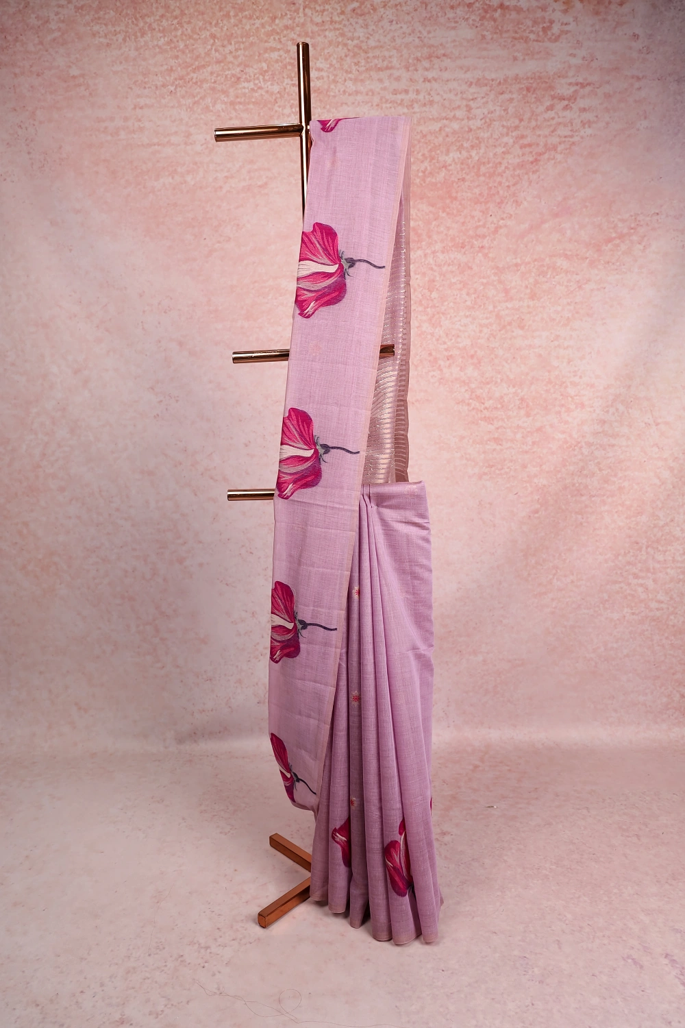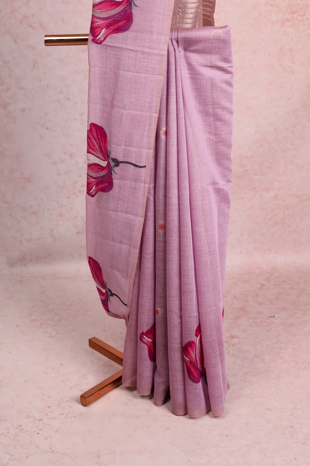 Lavender Semi Linen Butta Saree with Without Border. Includes Unstitched Blouse
