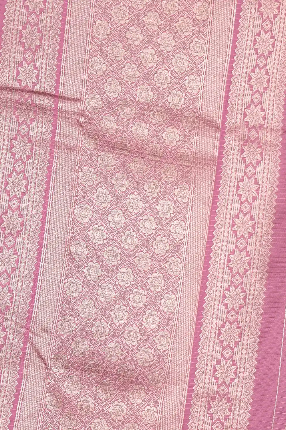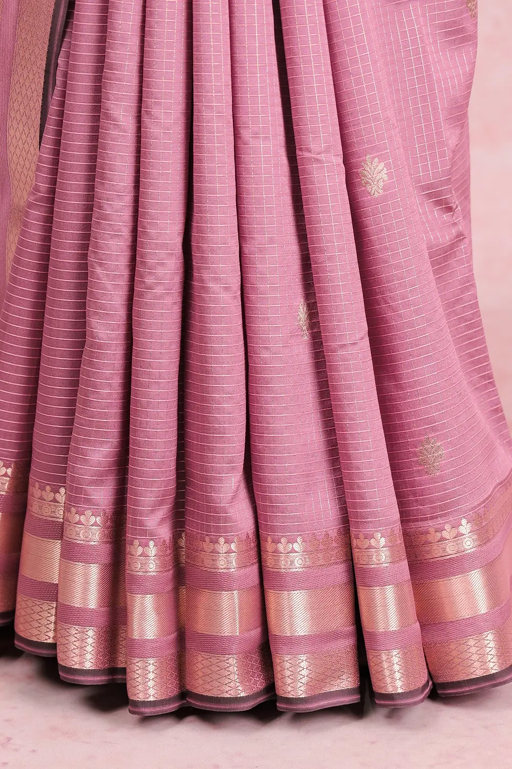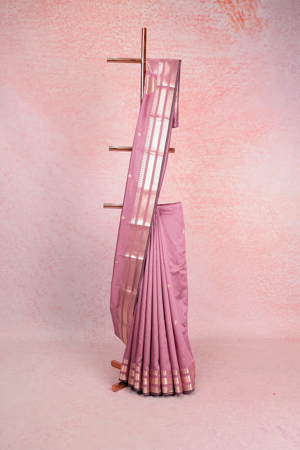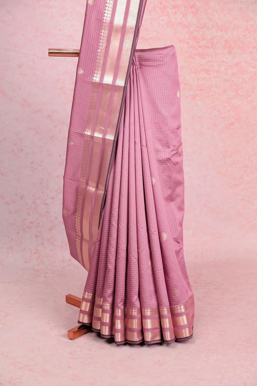 Lavender Semi Silk Line Brocade Saree with Golden Border. Includes Unstitched Blouse
