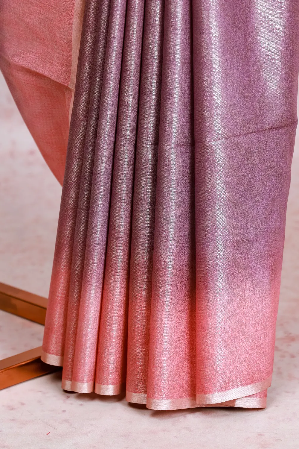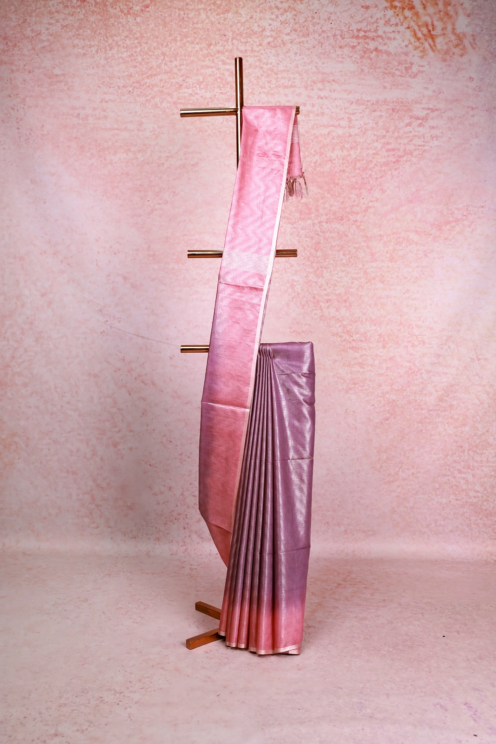 Lavender Semi Tussar Zari Design Saree With Zari Border. Includes Unstitched Blouse