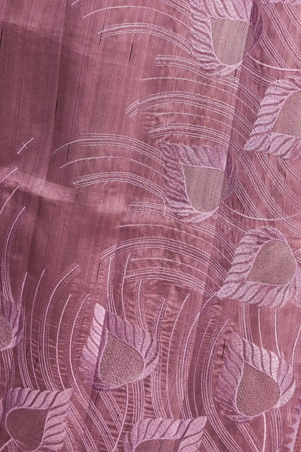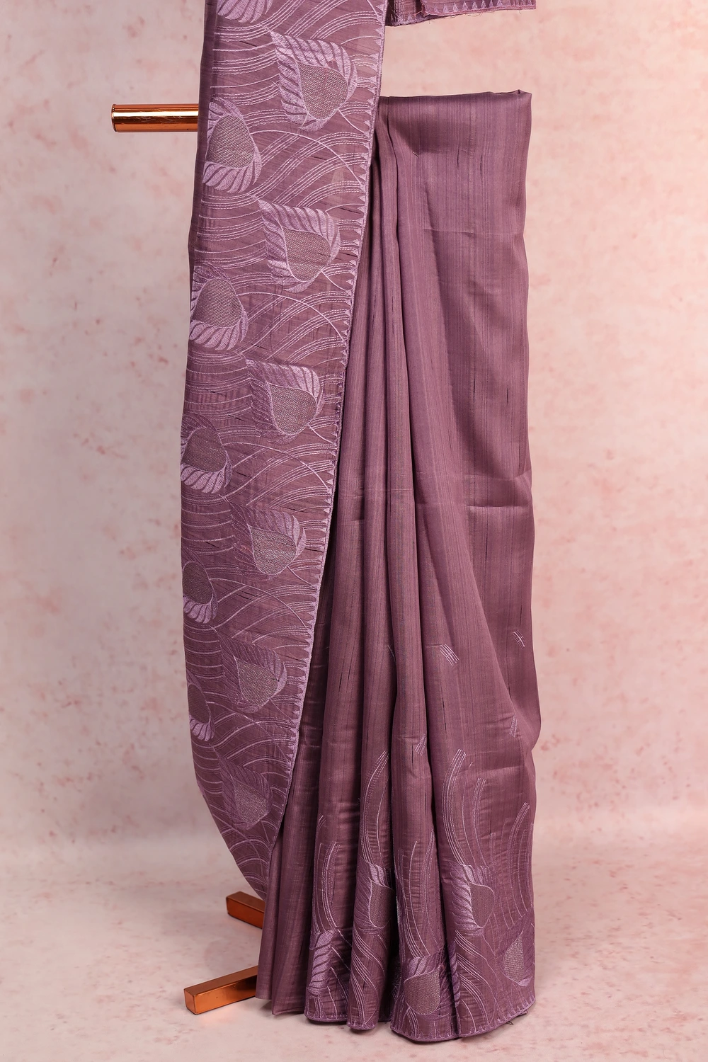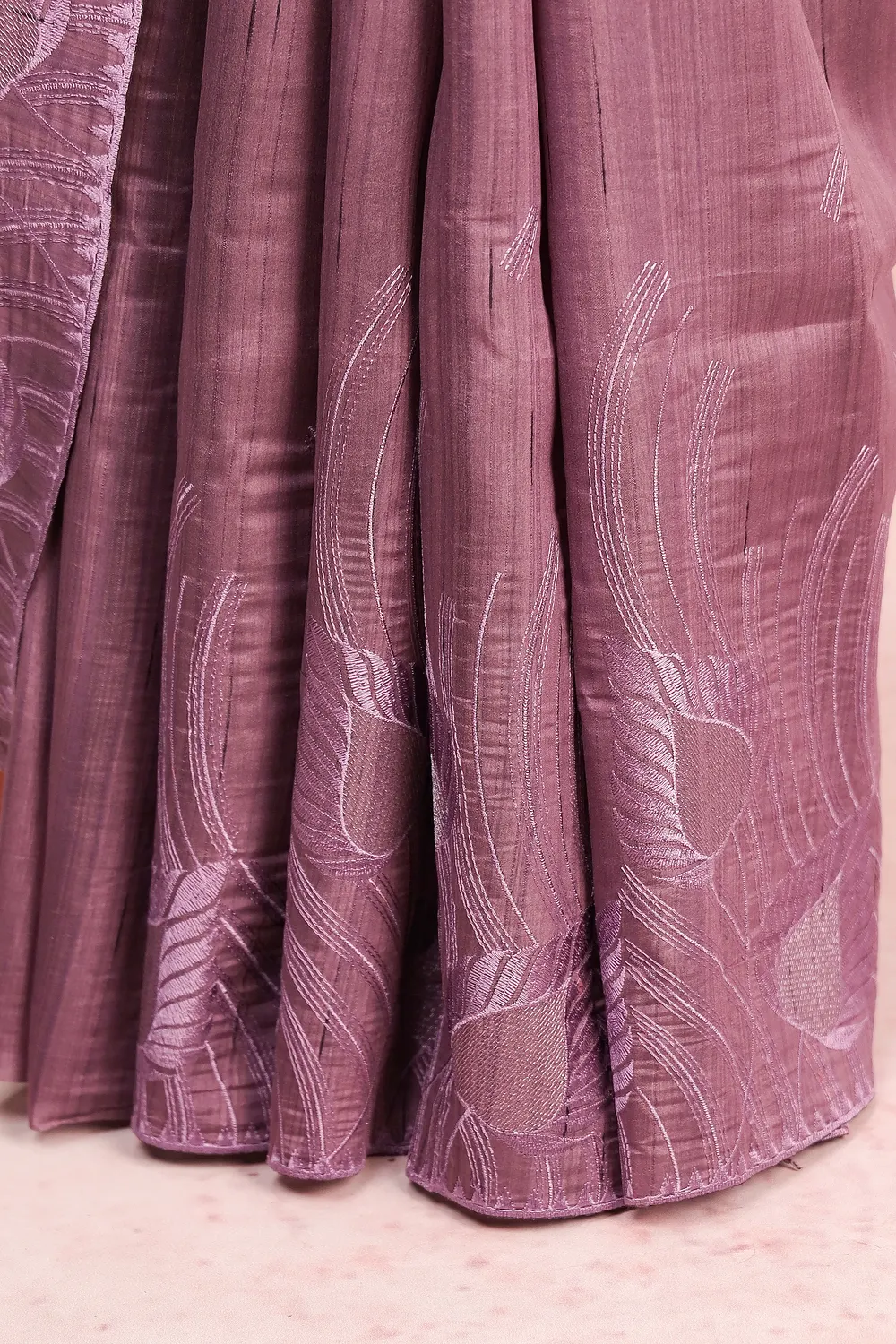 Lavender Semi Tussar Embroidery Saree with Thread Border. Includes Un stitched Blouse
