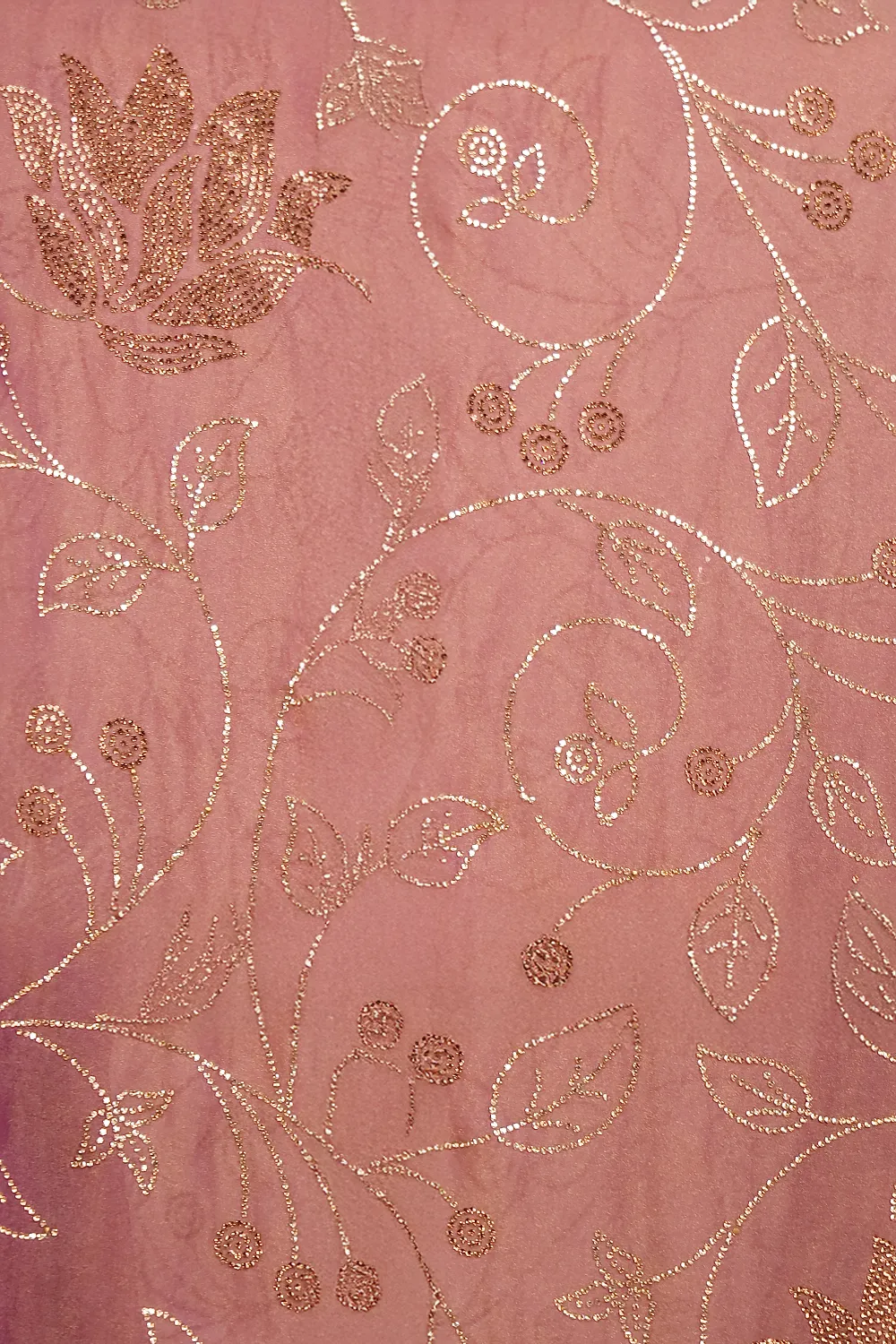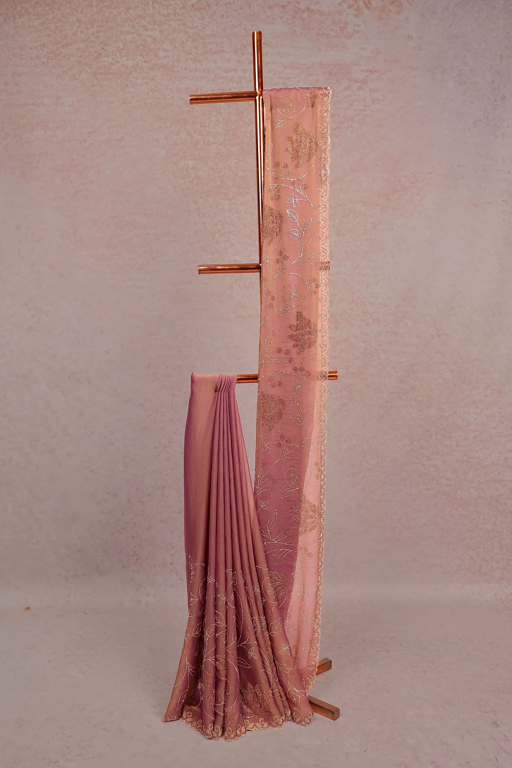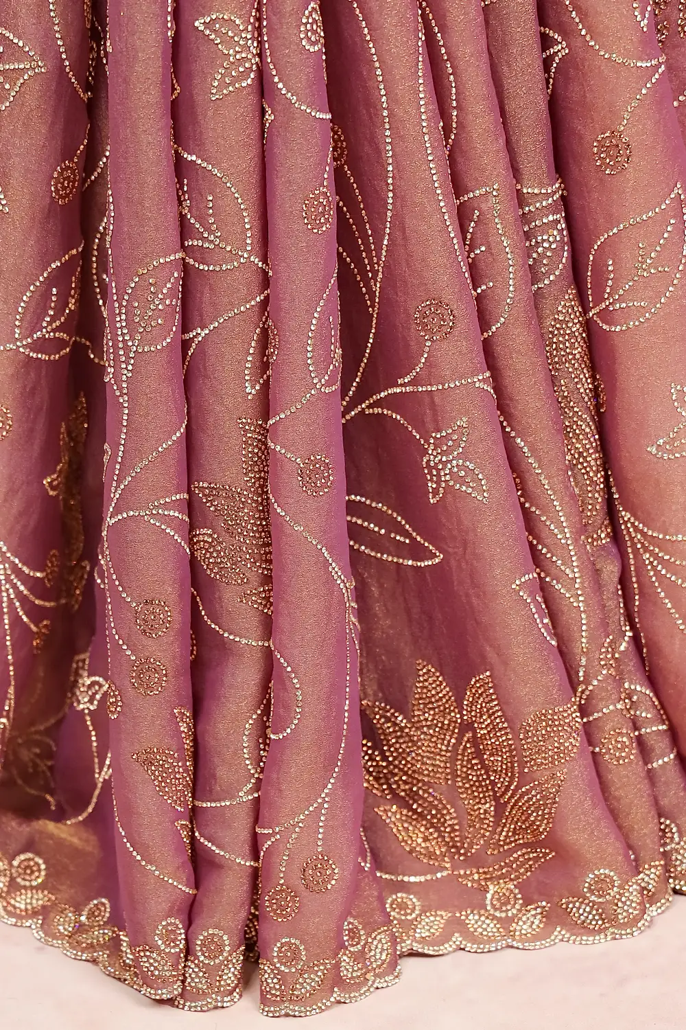 Lavender Shimmer Georgette Stone Work Saree with Scalp Border. Includes Unstitched Blouse