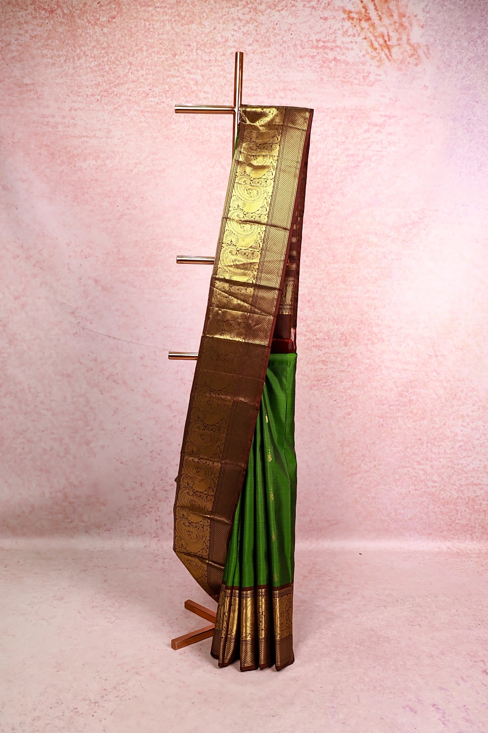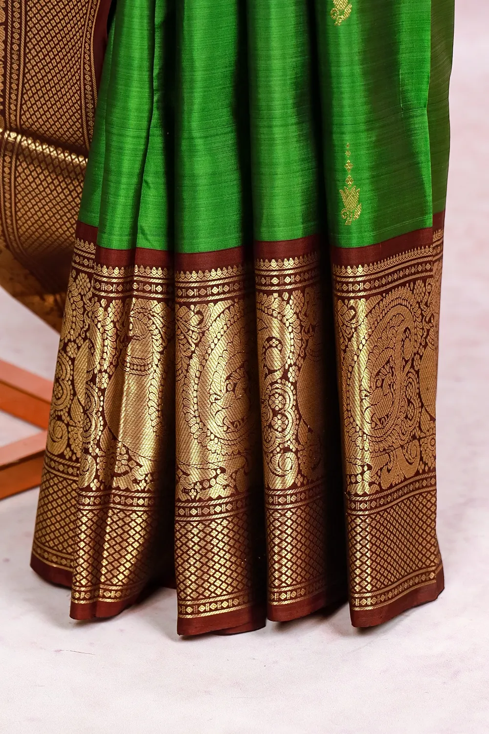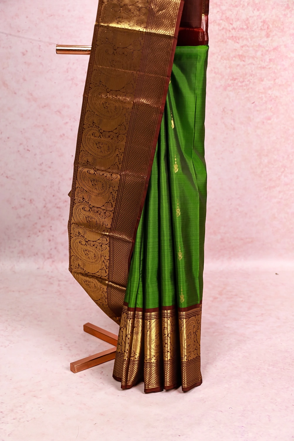 Leaf Green Kancheepuram Silk Butta Saree With Designer Border. Includes Unstitched Blouse