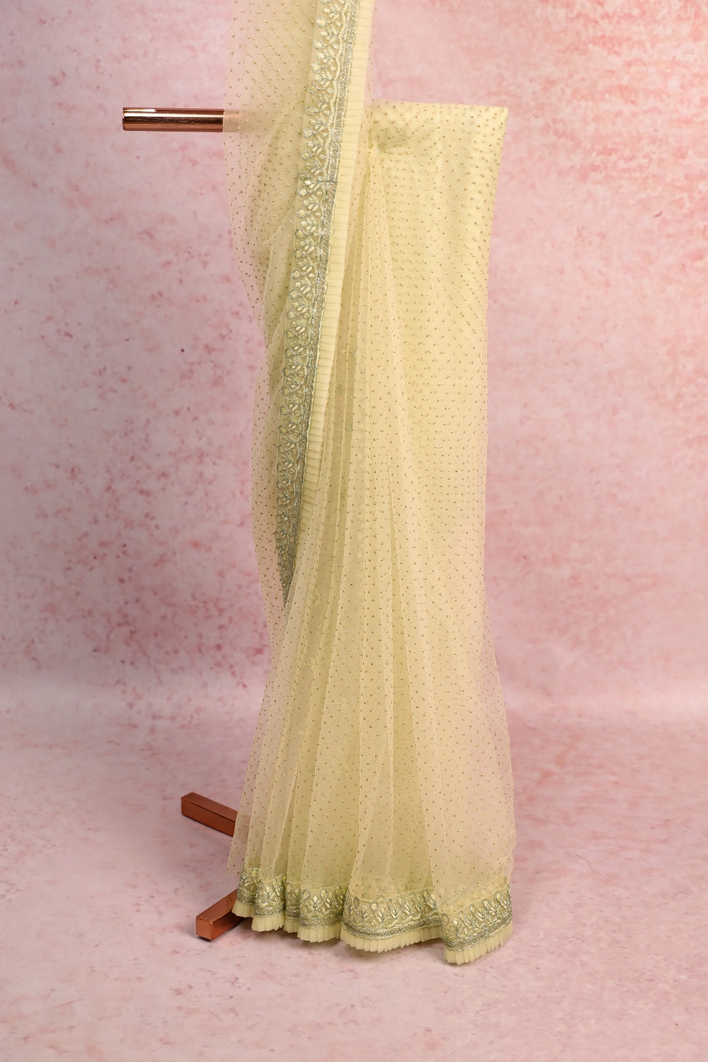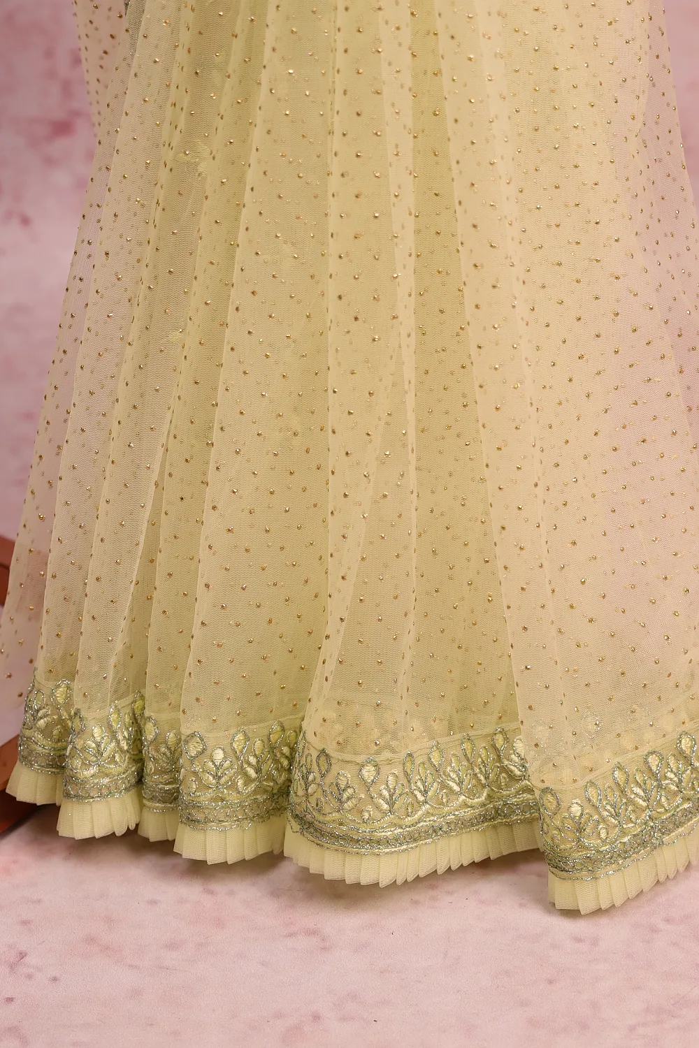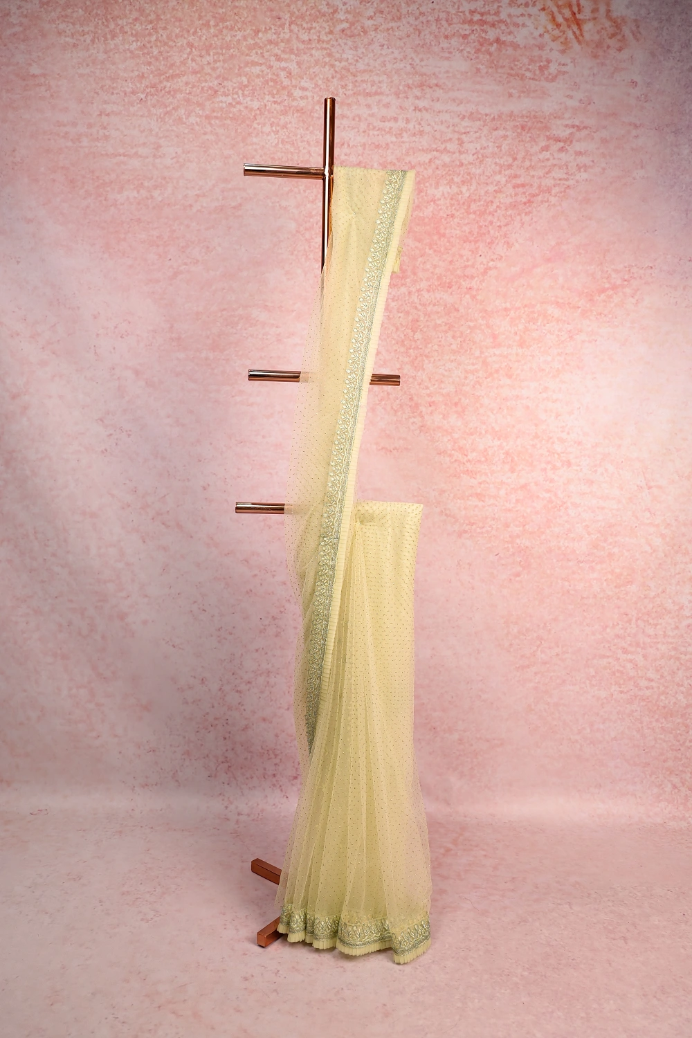 lemon Green Net Sequines Saree with Sequines Border. Includes Un stitched Blouse