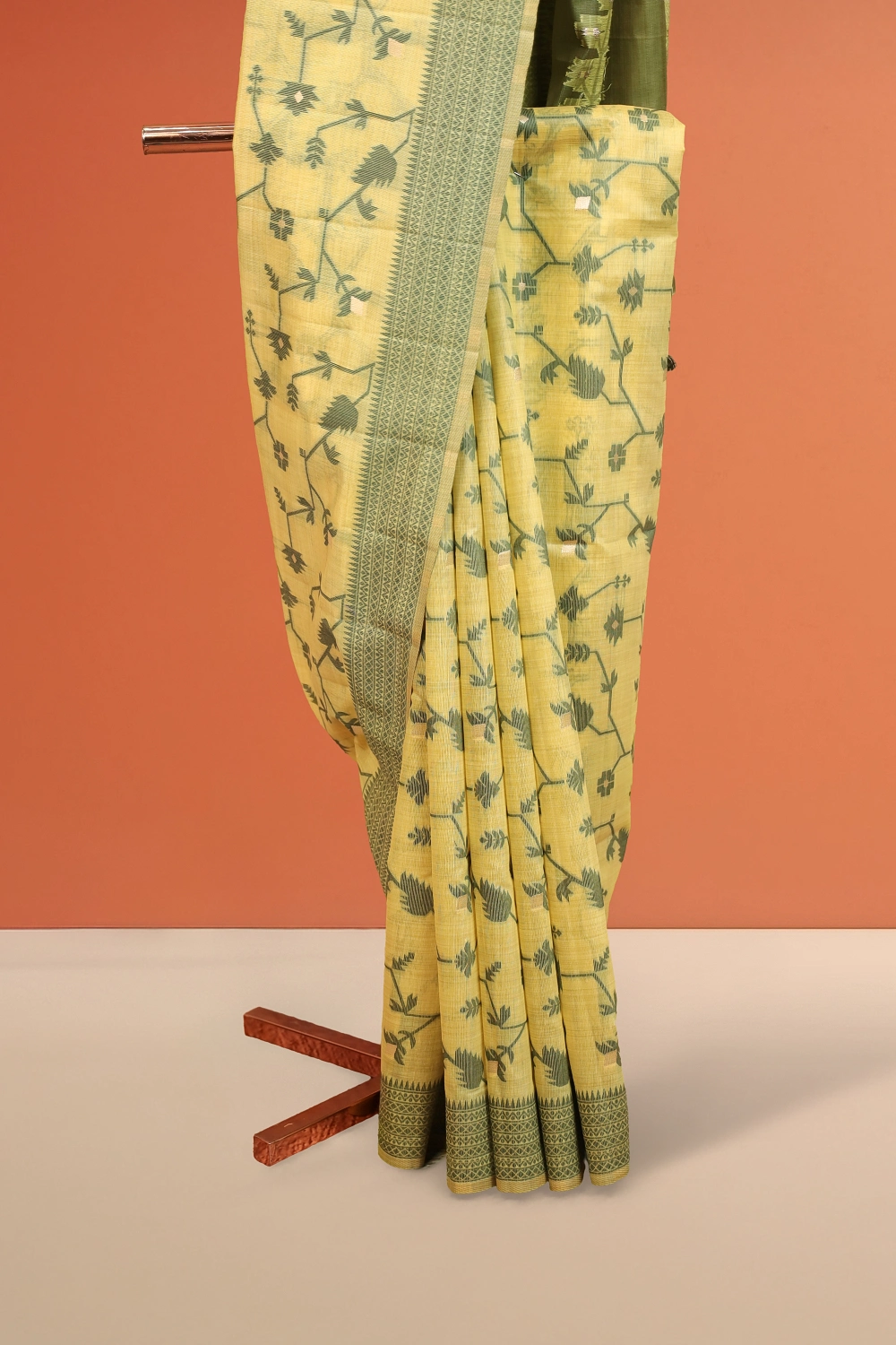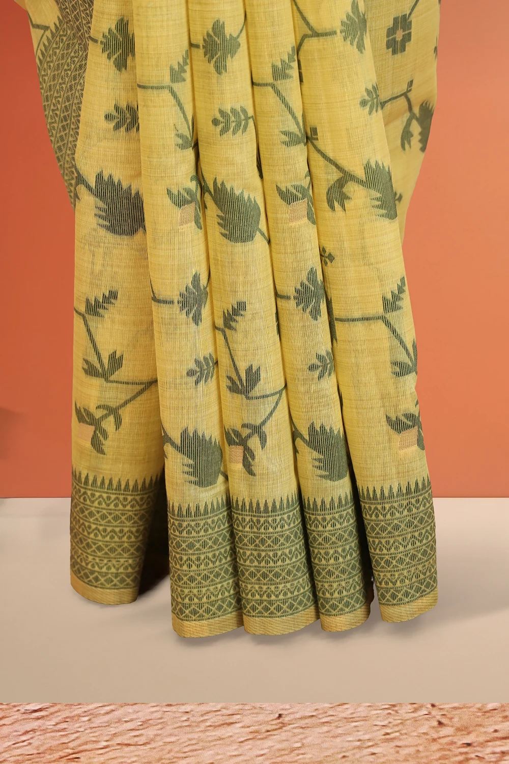 Lemon Yellow Semi Jute Saree