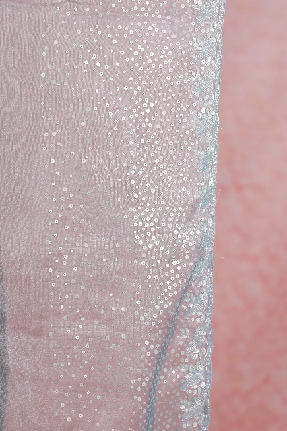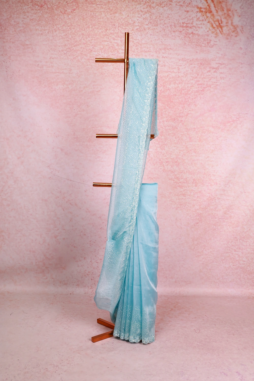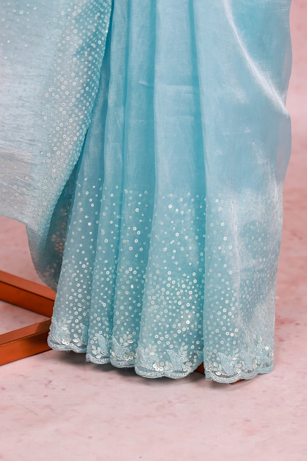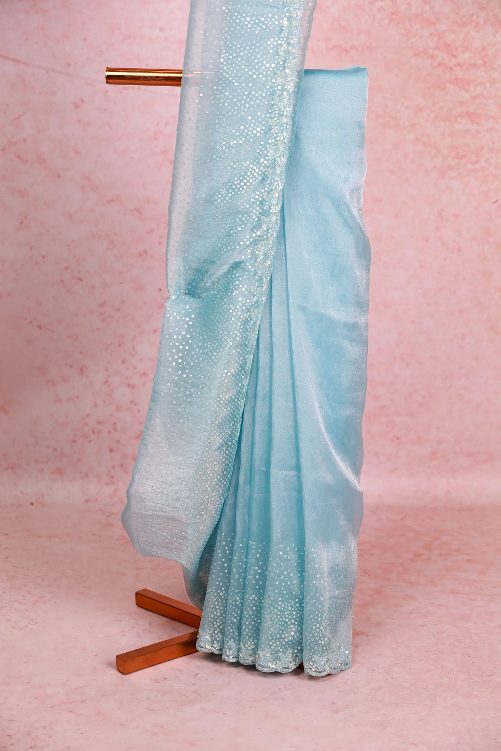 light Blue Tissue Organza Plain Body Saree With Scalp Border. Includes Un Stitched Blouse