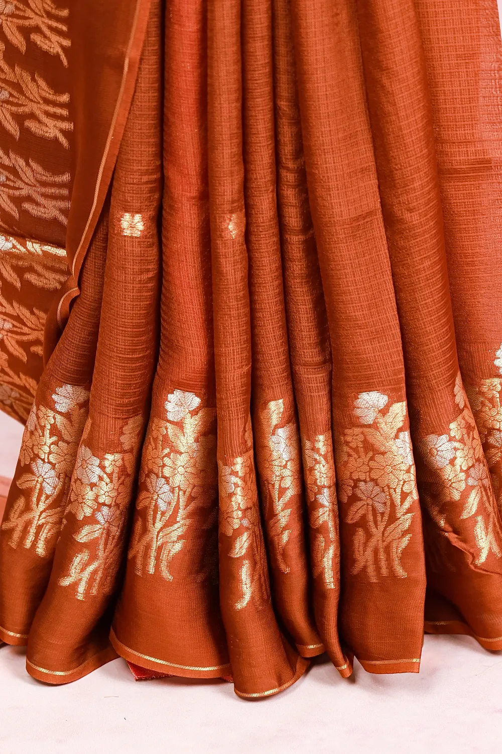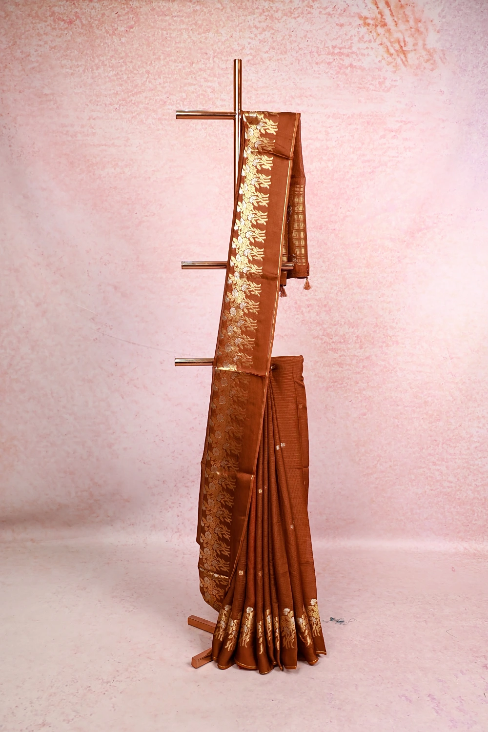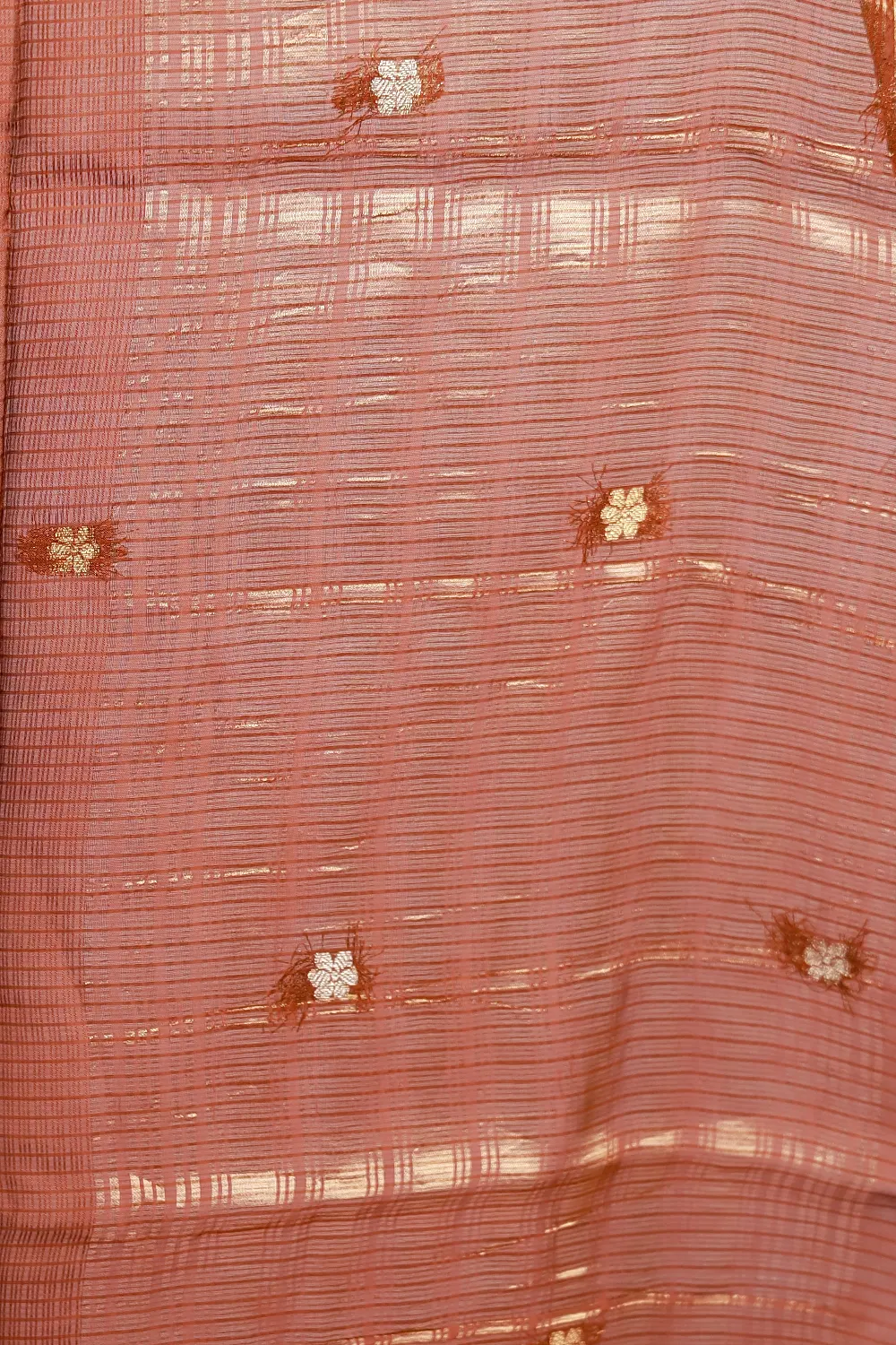 Light brown Soft Silky Kota Butta Saree With Zari Border. Includes Unstitched Blouse