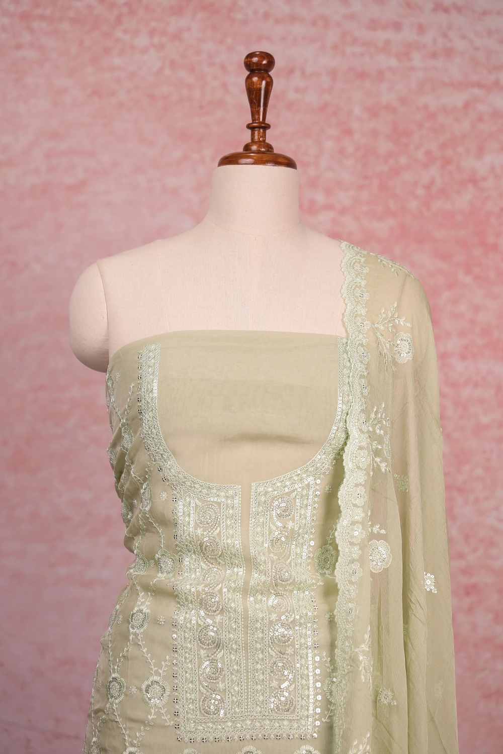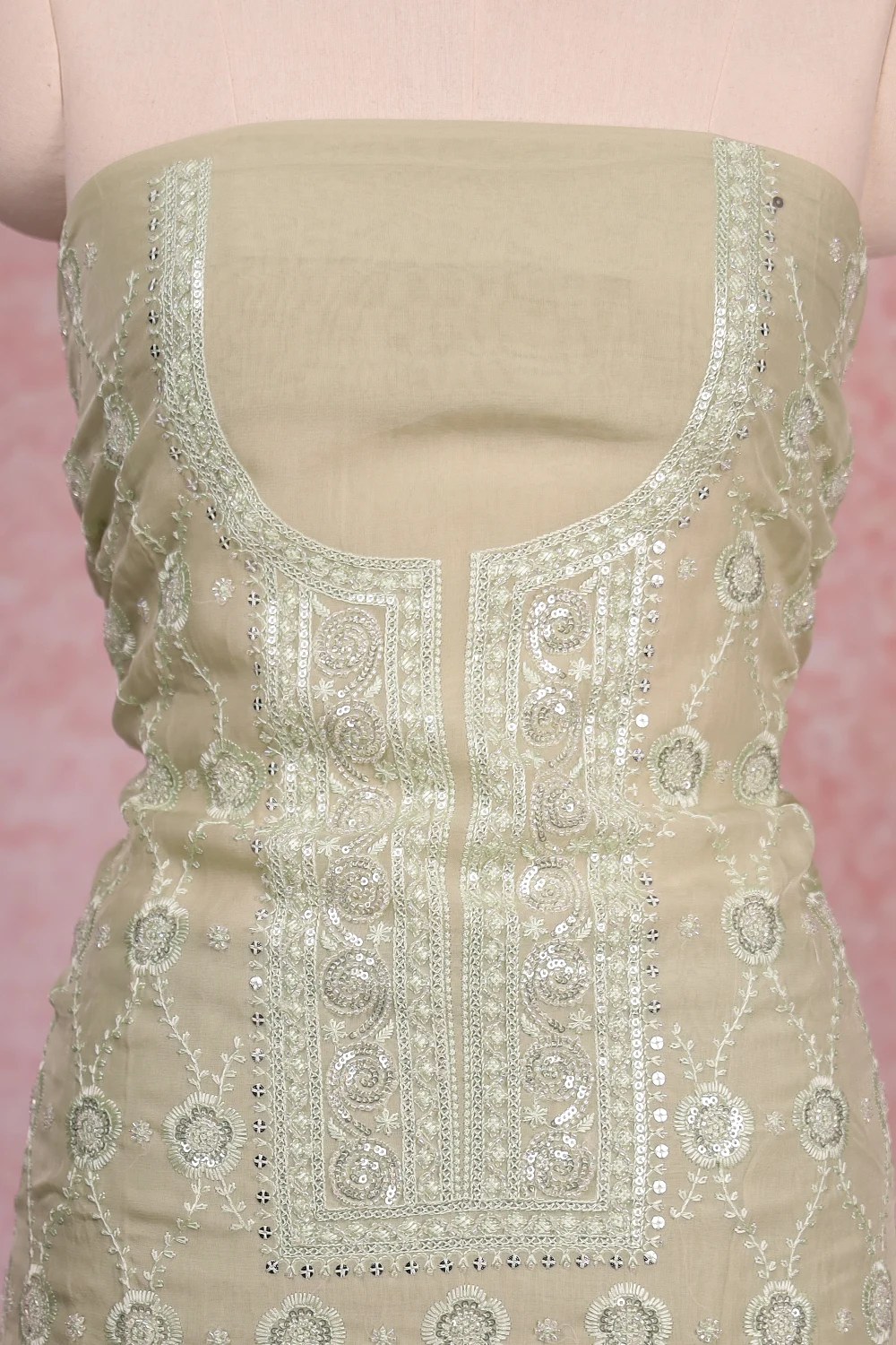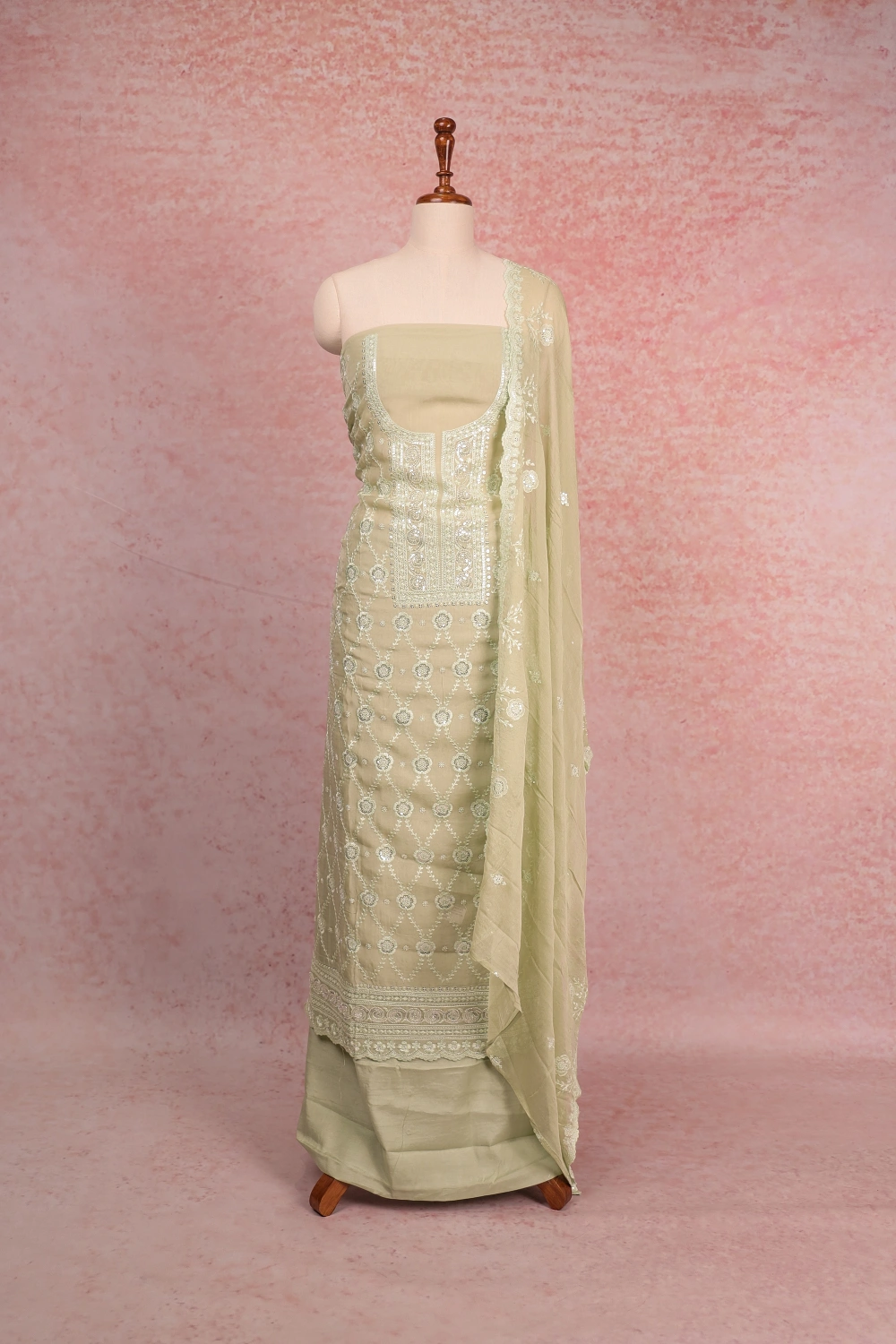 Light Green Organza Stone Work Unstitched Churidar Material. Includes Dupatta.