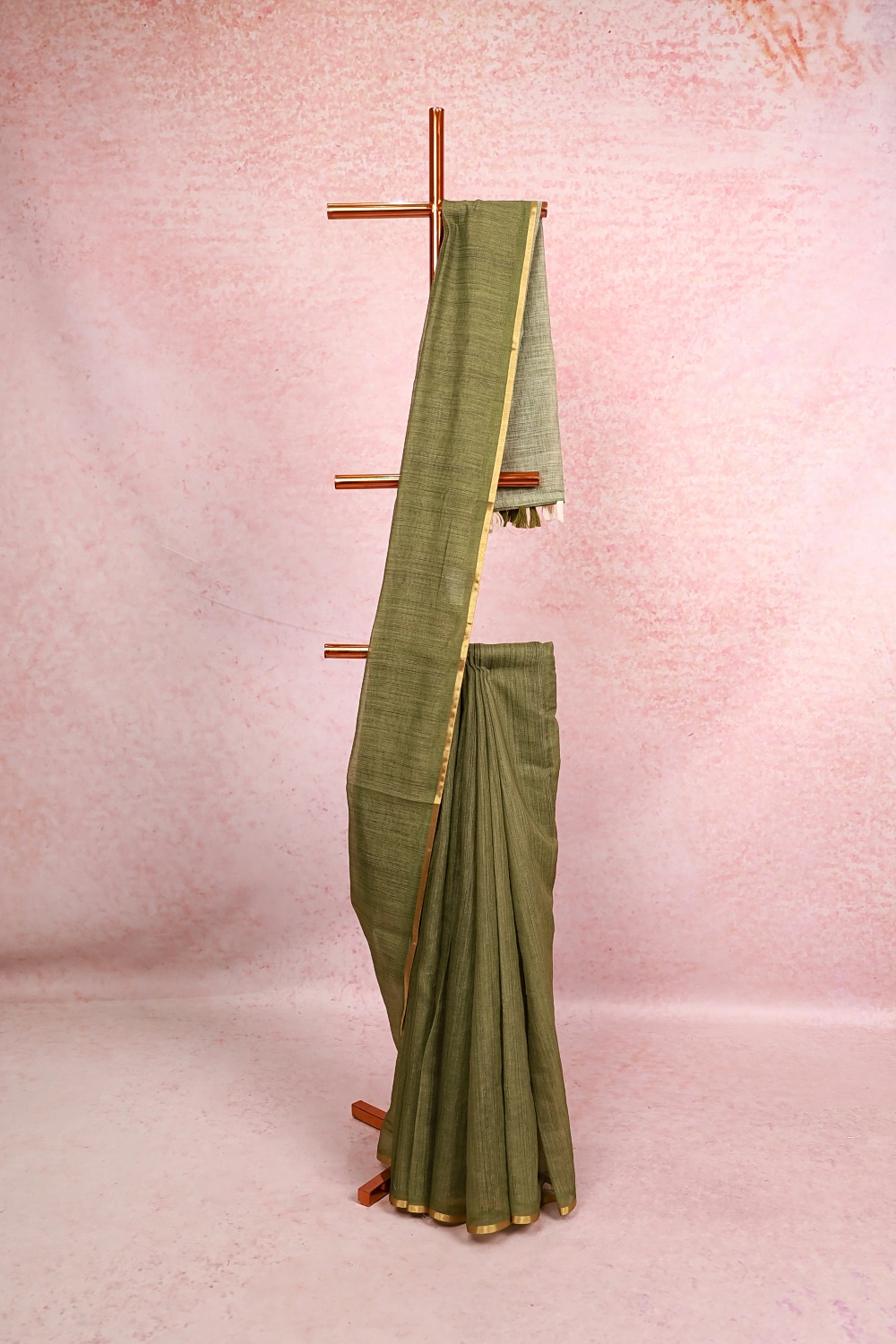 Light Green Semi Linen Plain Saree with Small Border. Includes Unstitched Blouse
