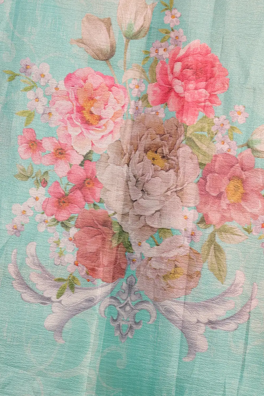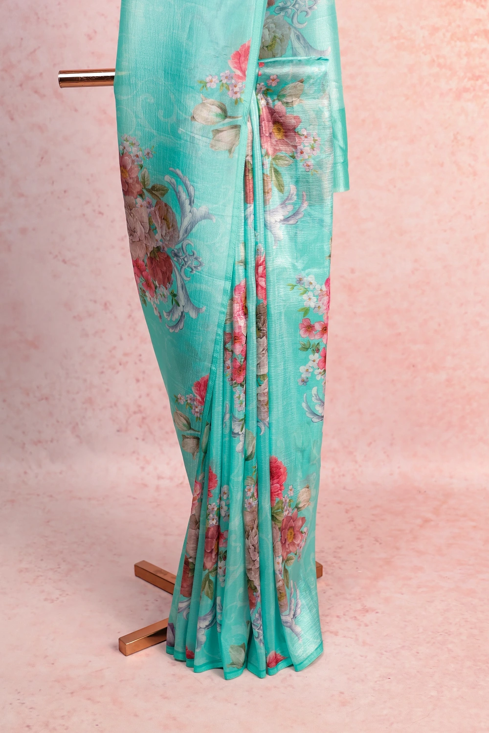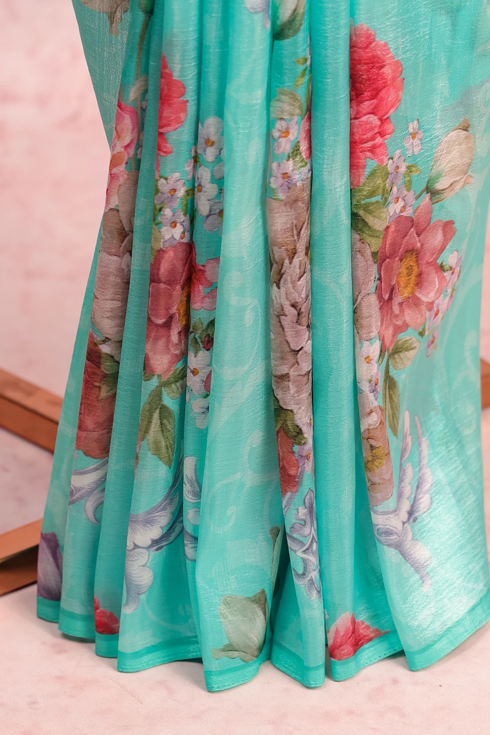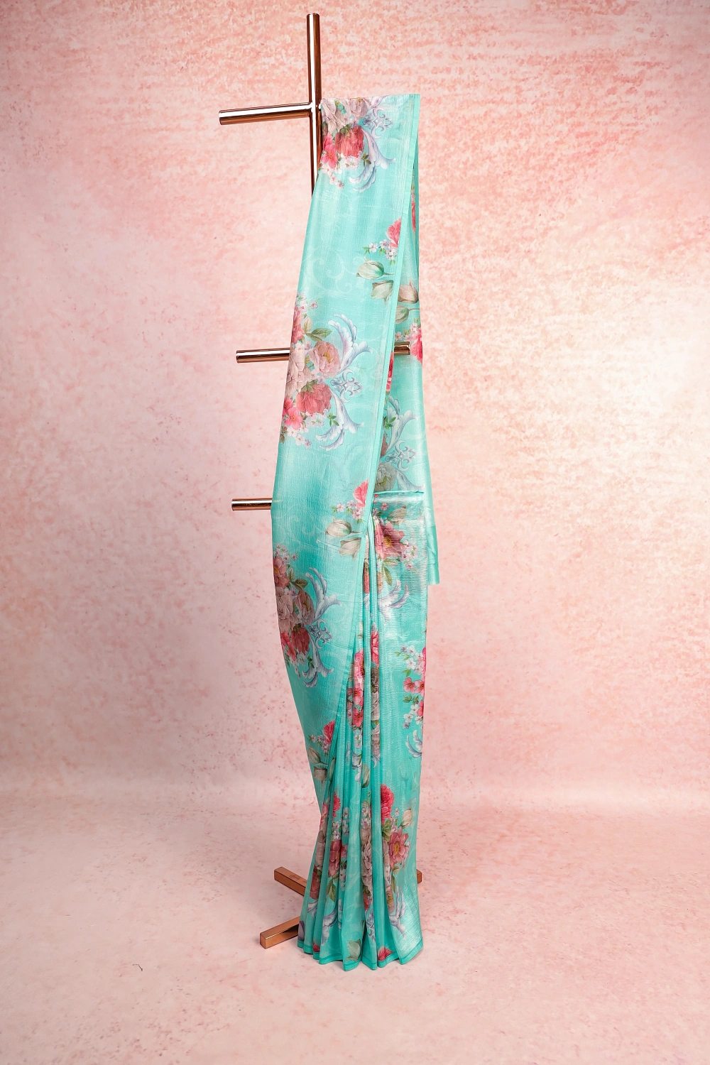 Light Green Semi Organza Printed Saree with Without Border. Includes Un stitched Blouse