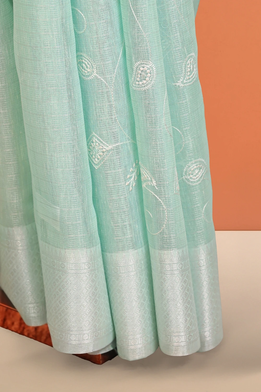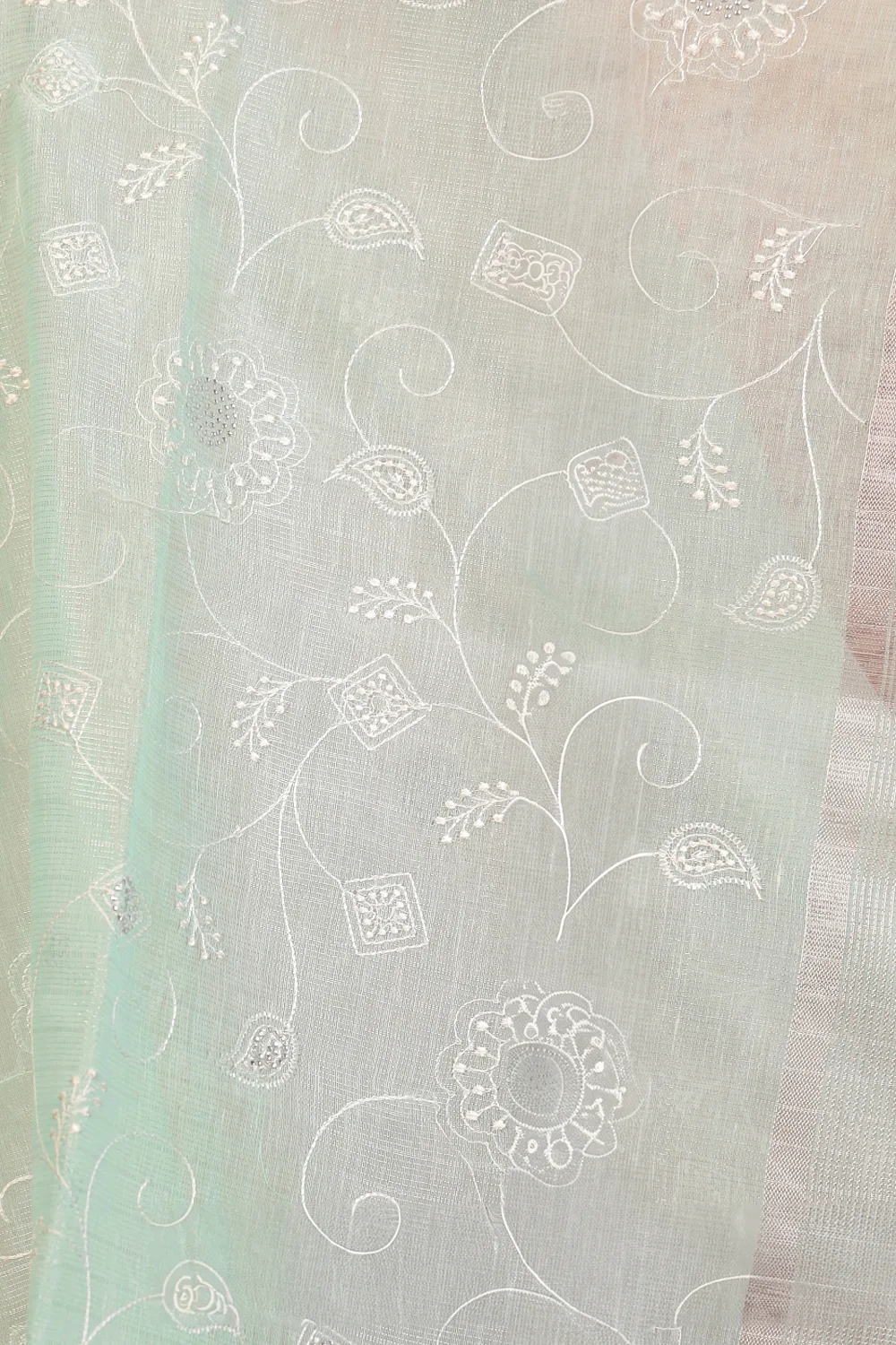 Light Green Semi Tissue Embroidary Saree with Designer Border. Includes Unstitched Blouse