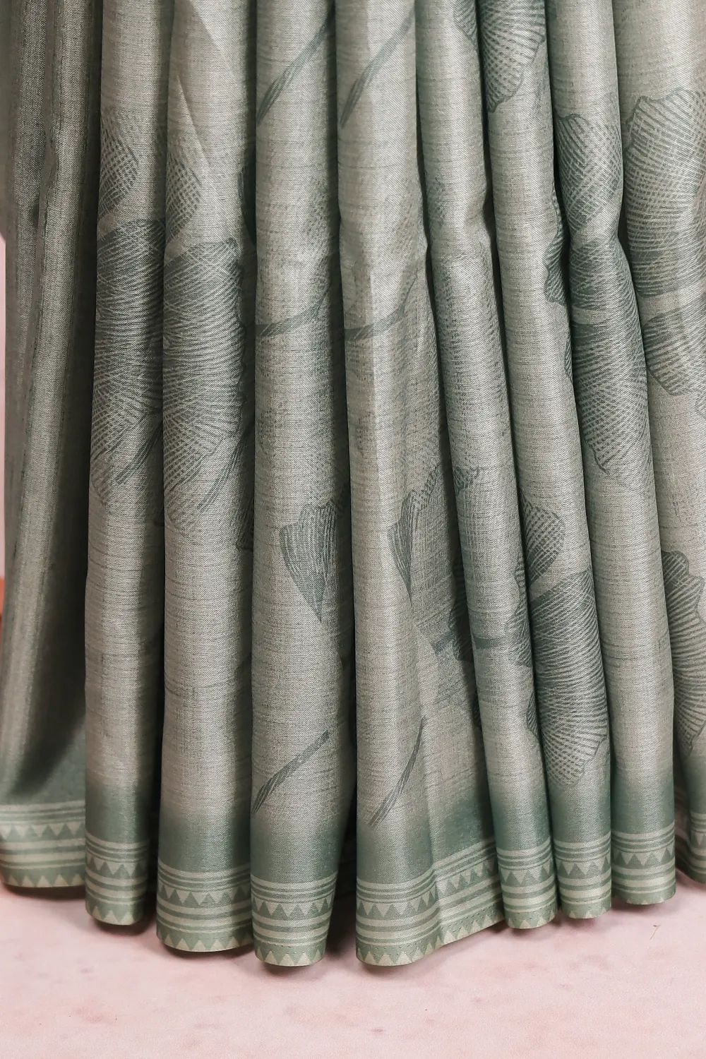 Light Green Semi Tussar Printed Saree With Without Border. Includes Un Stitched Blouse
