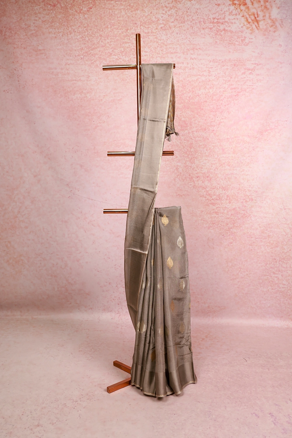 Light Green Soft Silky Kota Leaf Butta Saree Without Border. Includes Unstitched Blouse