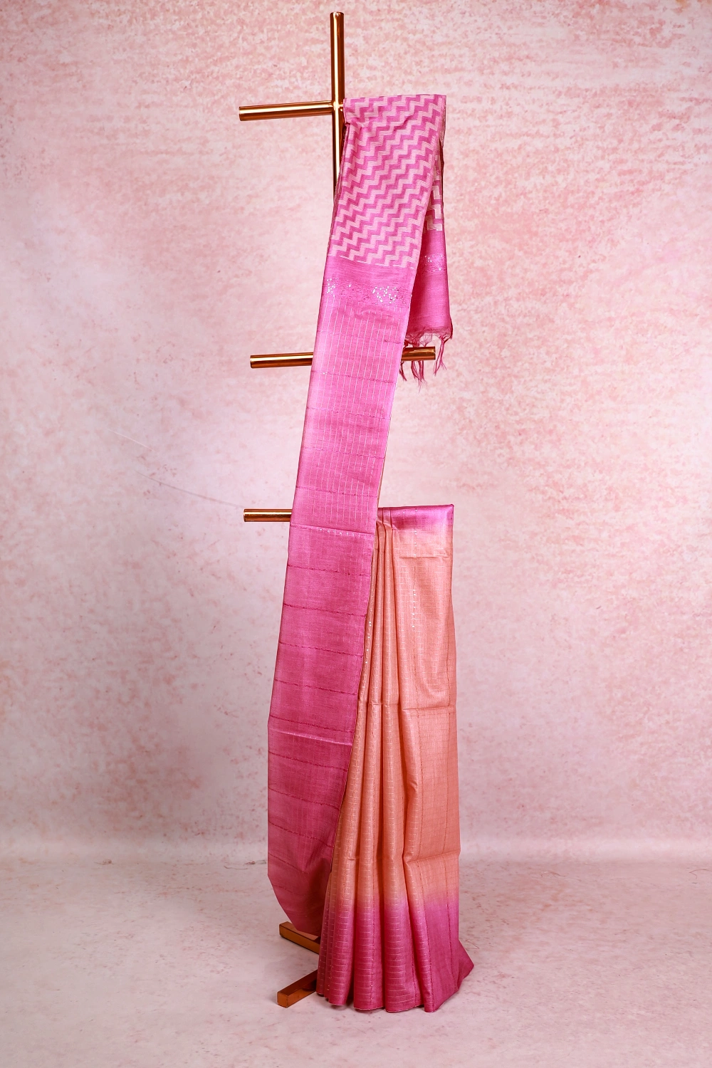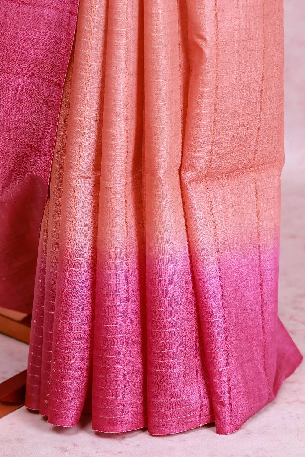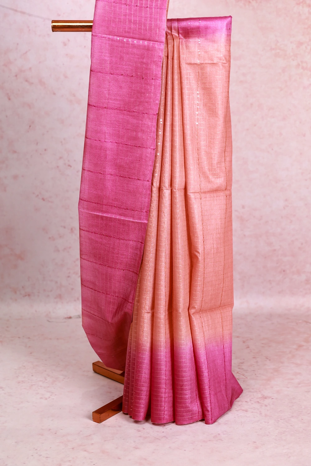 Light Magenta Semi Tussar Lines With Sequines Saree Without Border. Includes Un Stitched Blouse