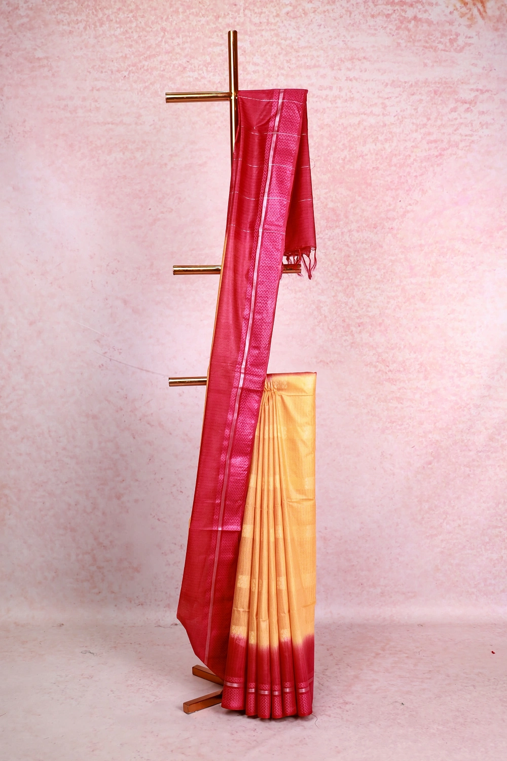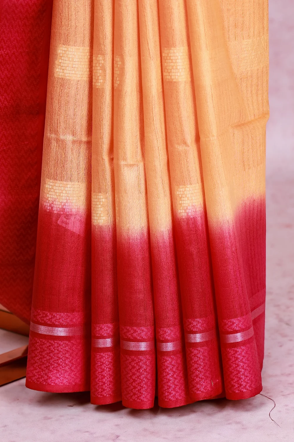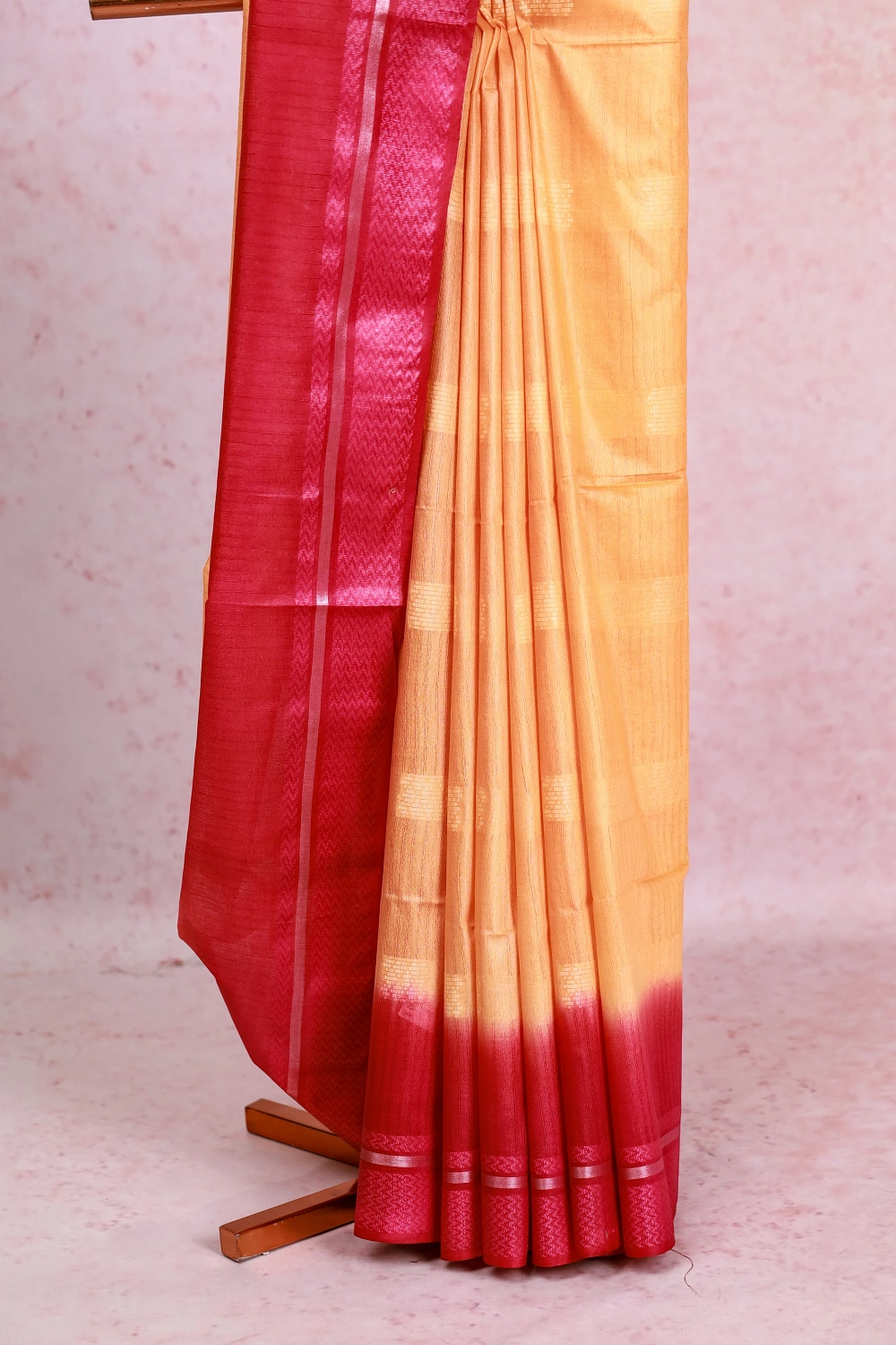 Light Orange Semi Tussar Butta Saree With Small Border. Includes Un Stitched Blouse