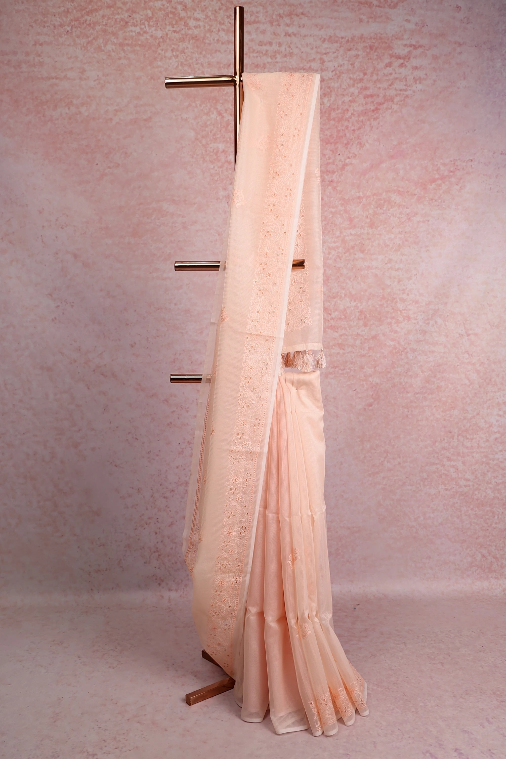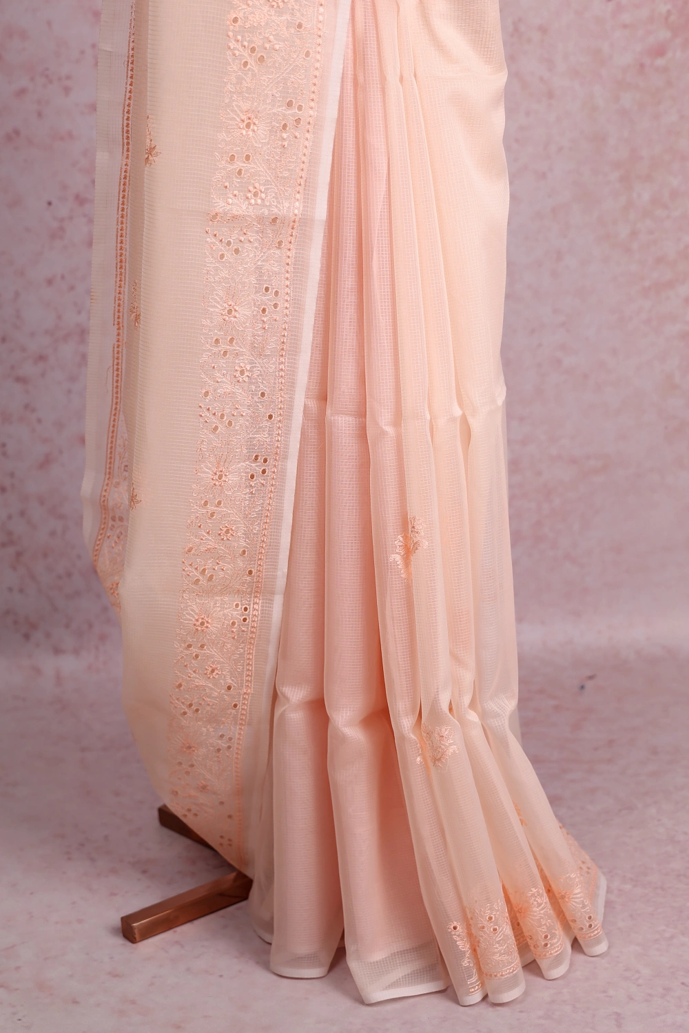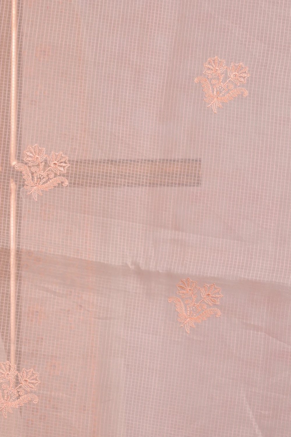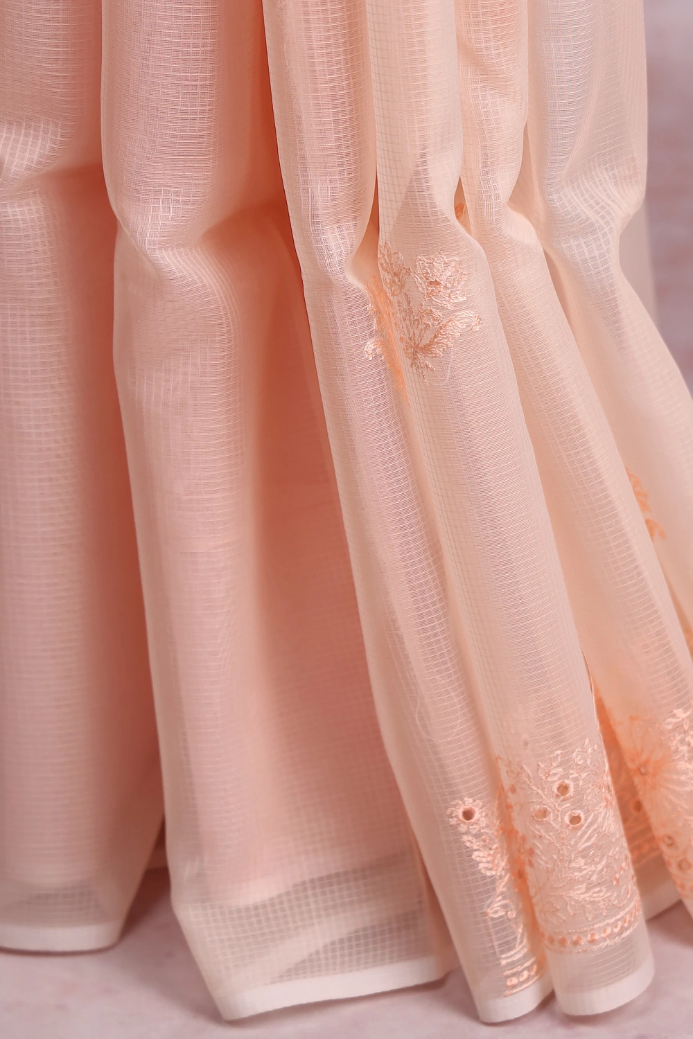 Light Peach Kota Butta Saree With Cut Work Border. Includes Un Stitched Blouse