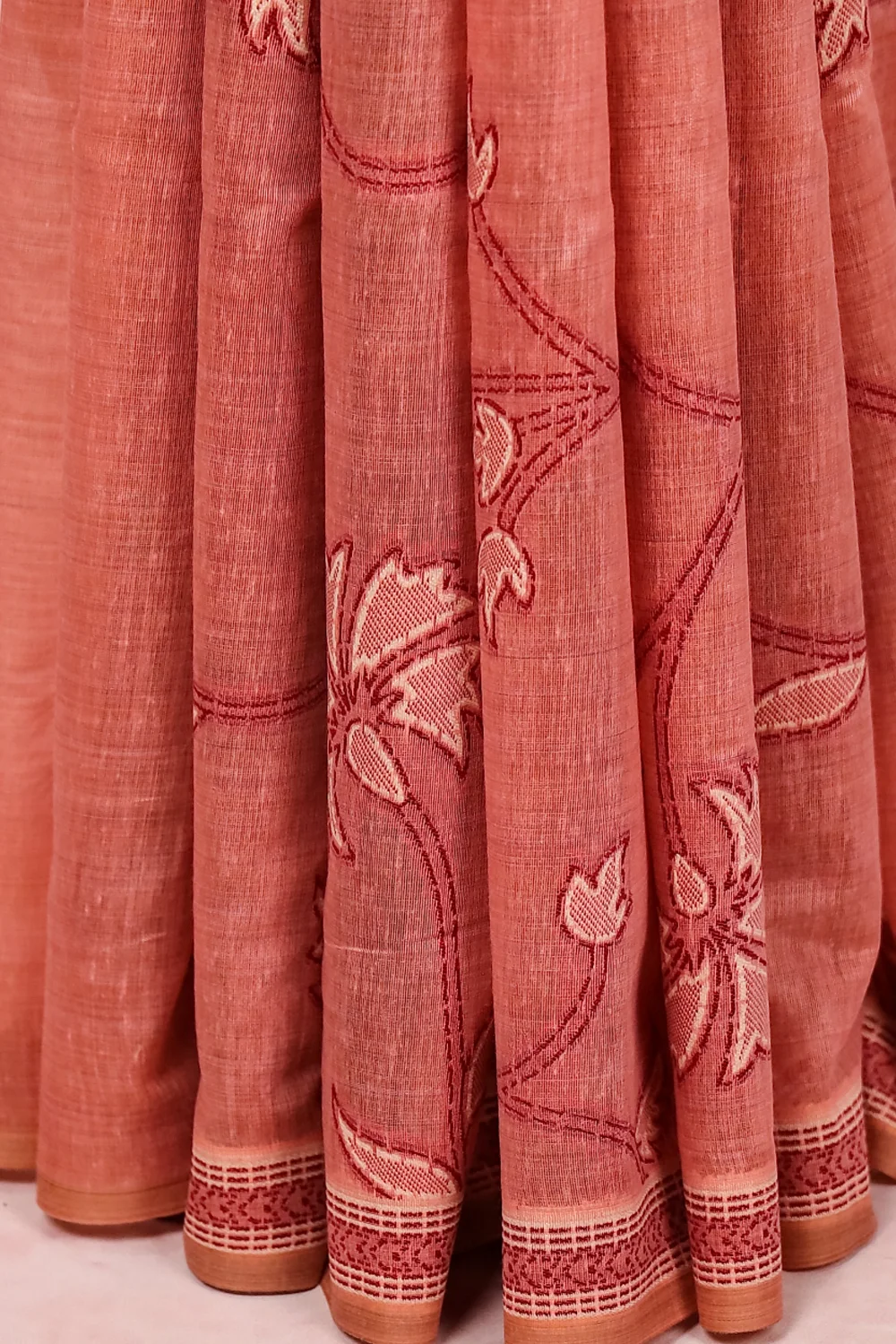 Light Peach Mul Cotton Saree