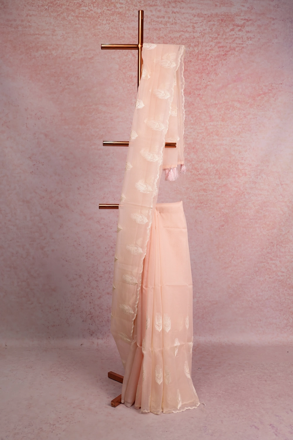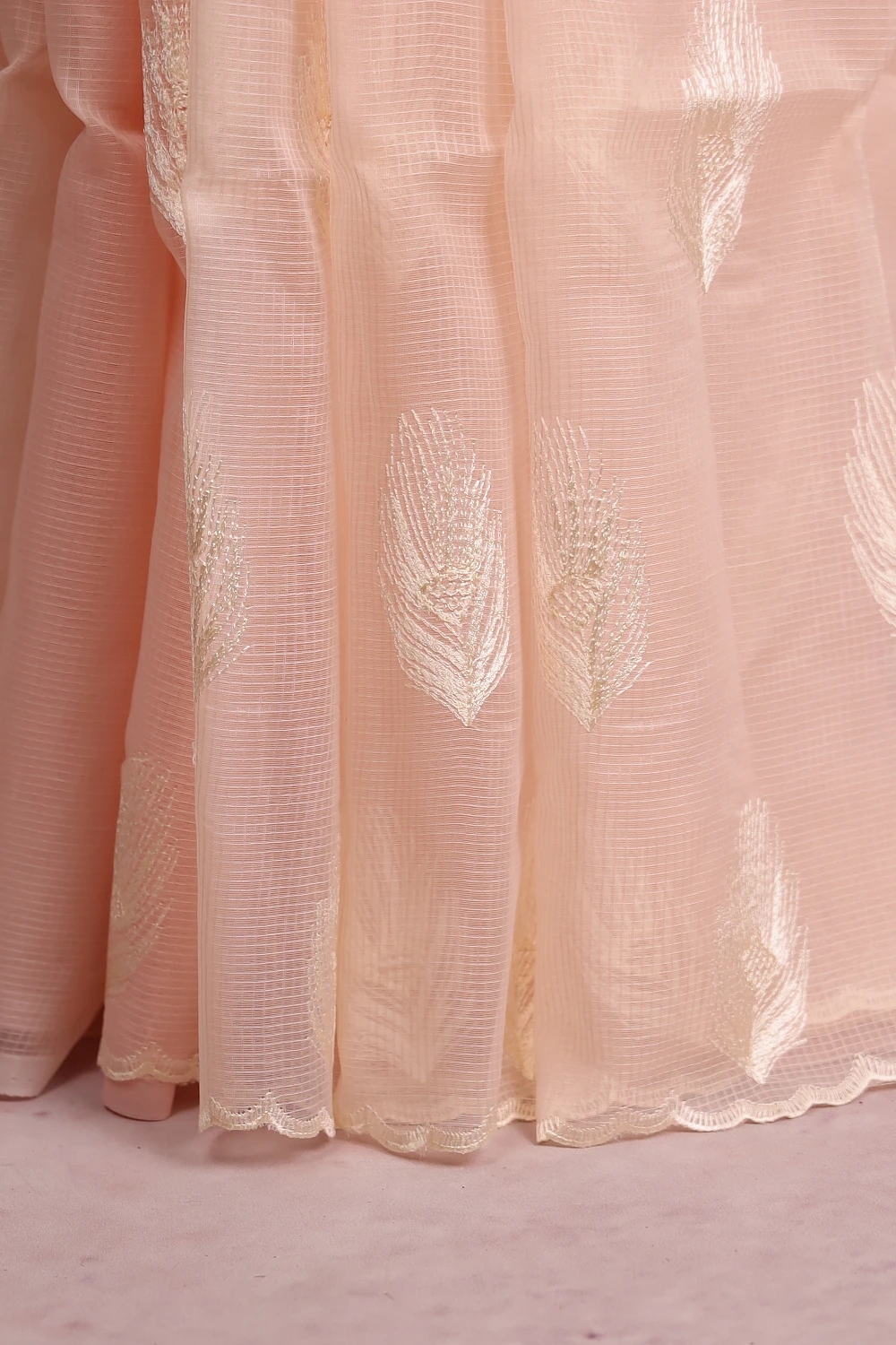 Light Peach Net Kota Saree
