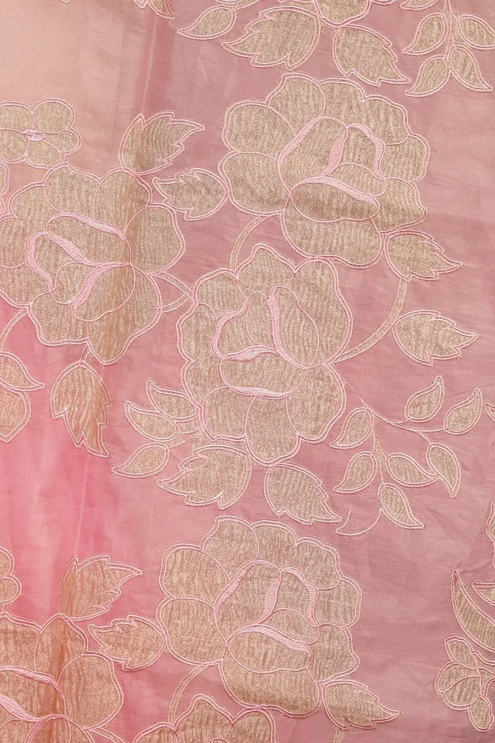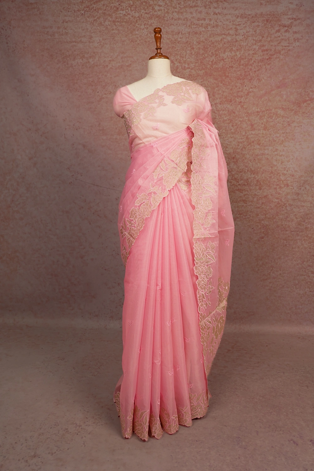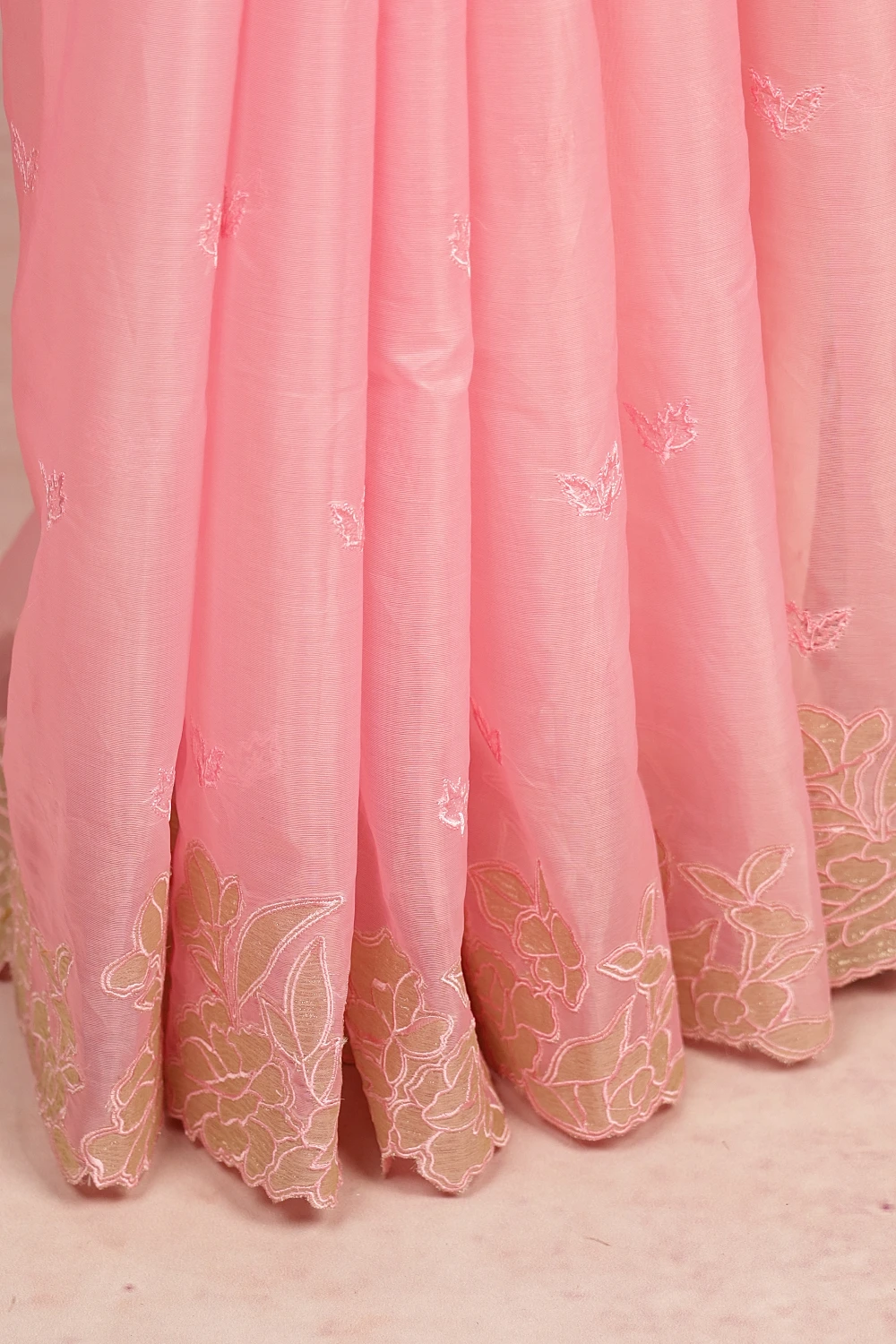Light Rose Organza Embroidary Saree With Applic Work Border. Includes Unstitched Blouse