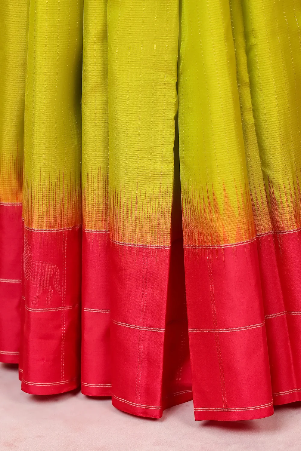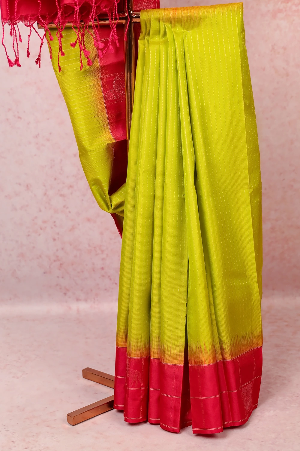lime Green Kanchi Soft Silk Lines Saree with Line border. Includes Unstitched Blouse