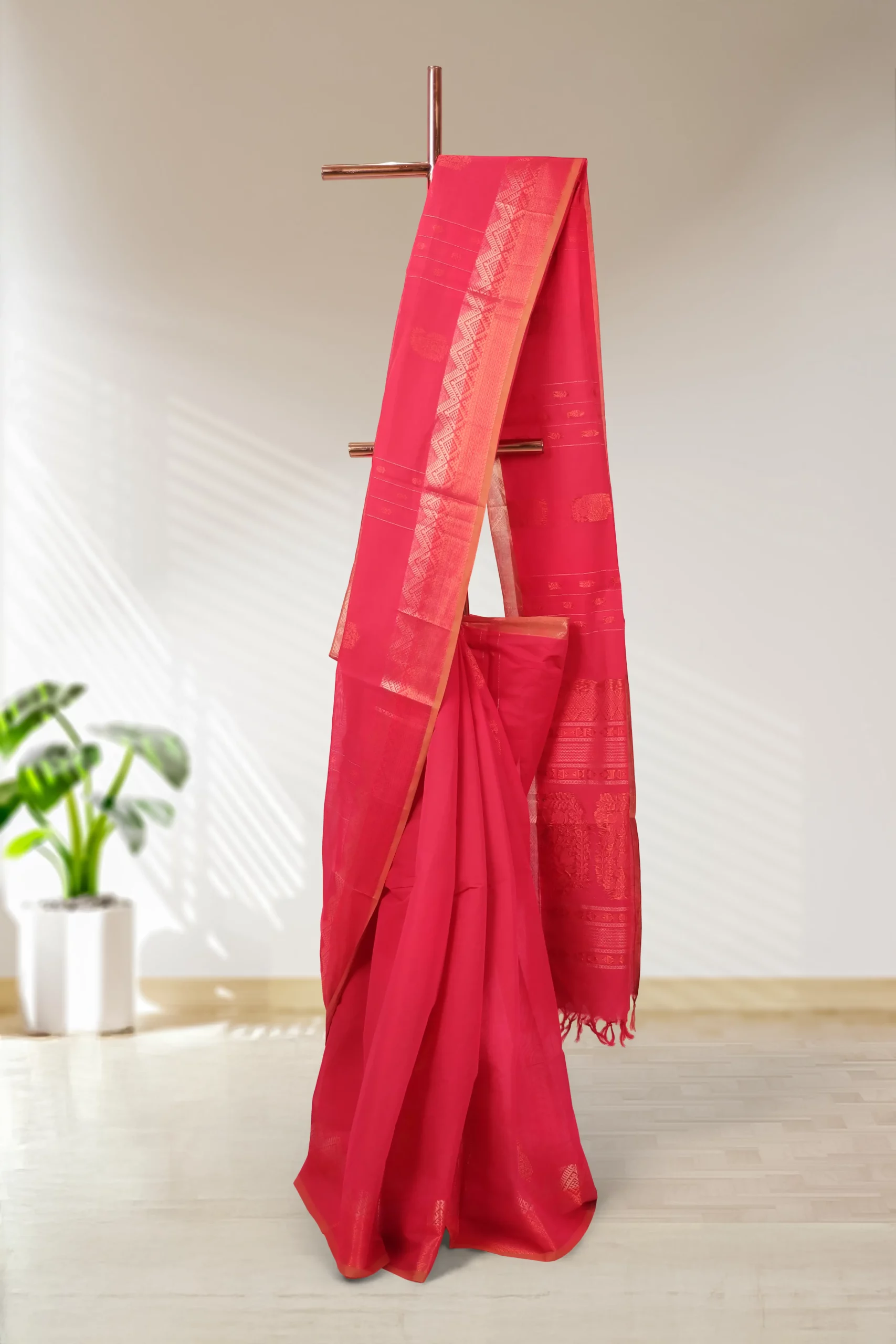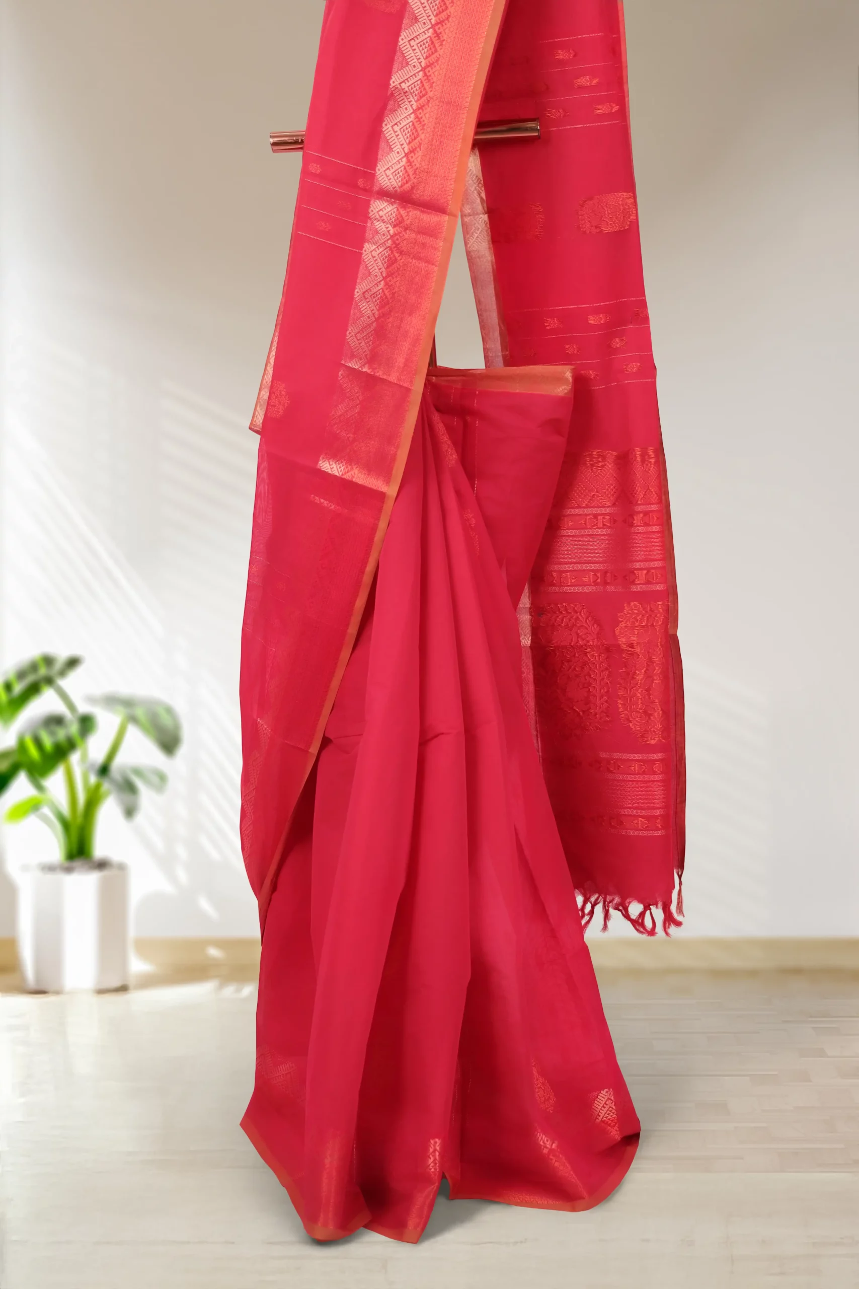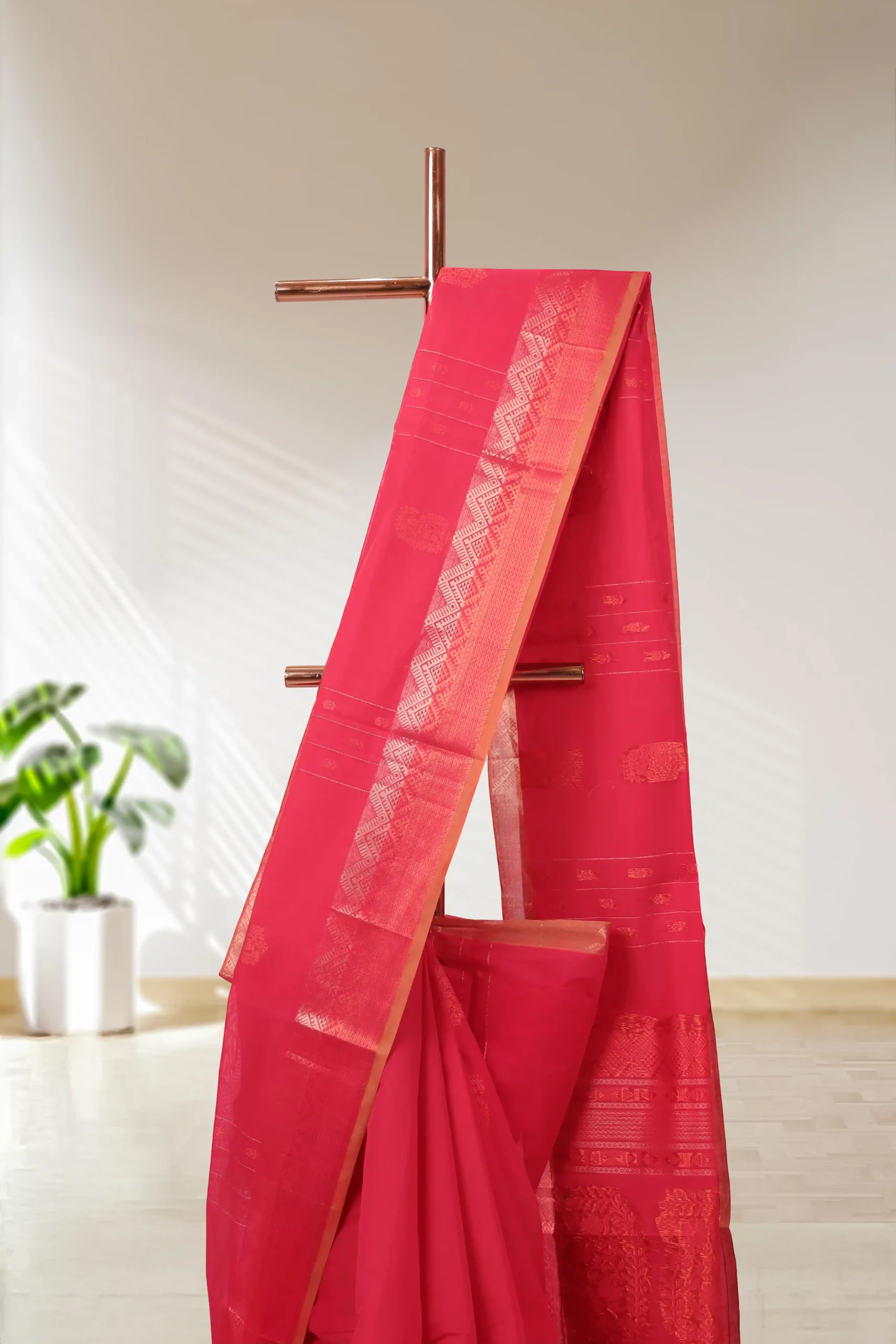Magenta Cotton Stripes With Butta Saree with Small border. Includes Unstitched Blouse