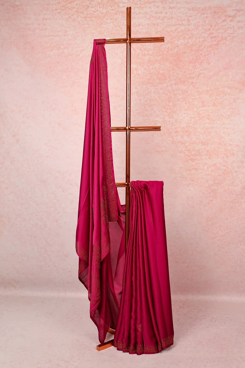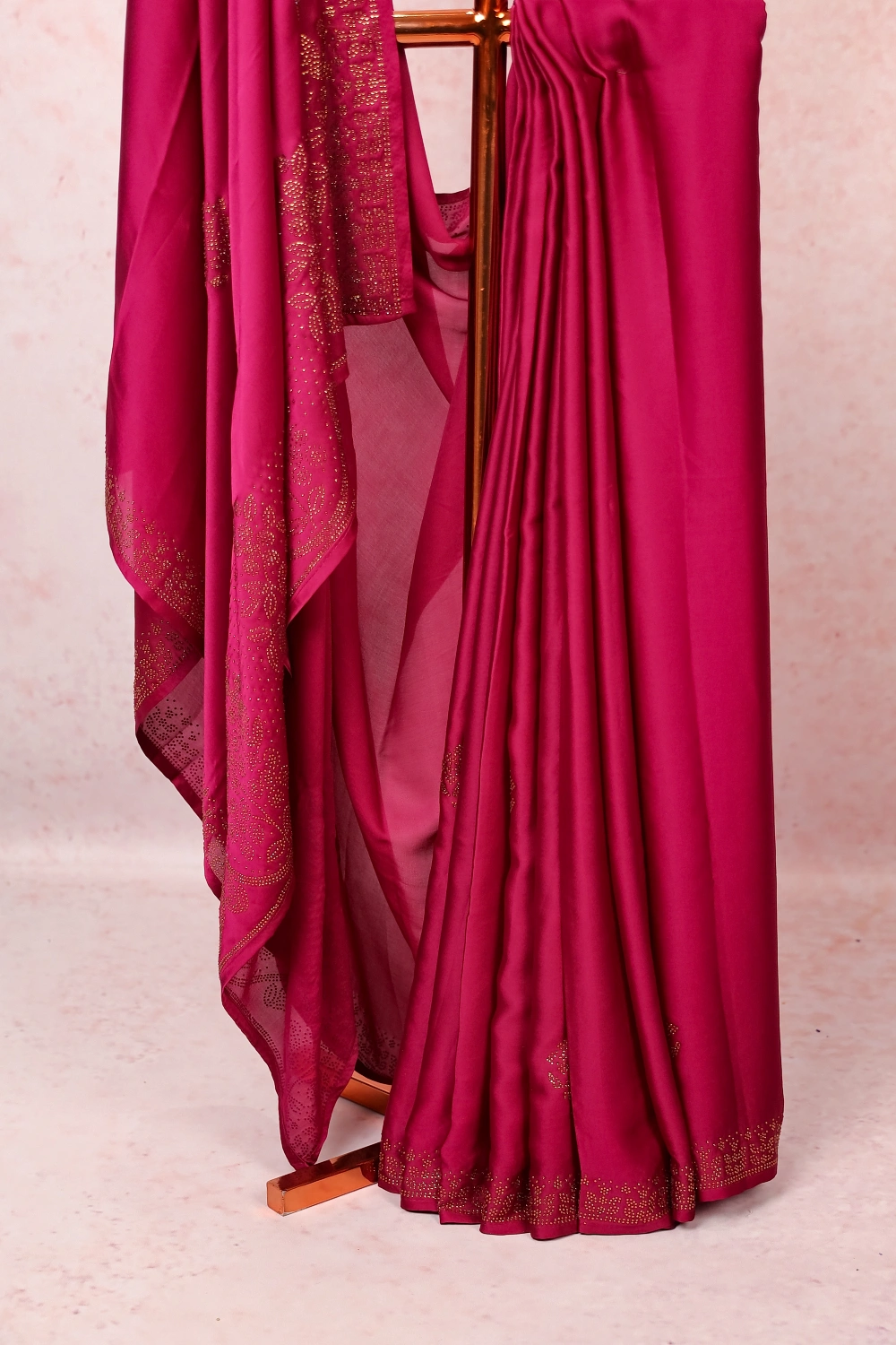 Magenta Pink Satin Chifon Saree