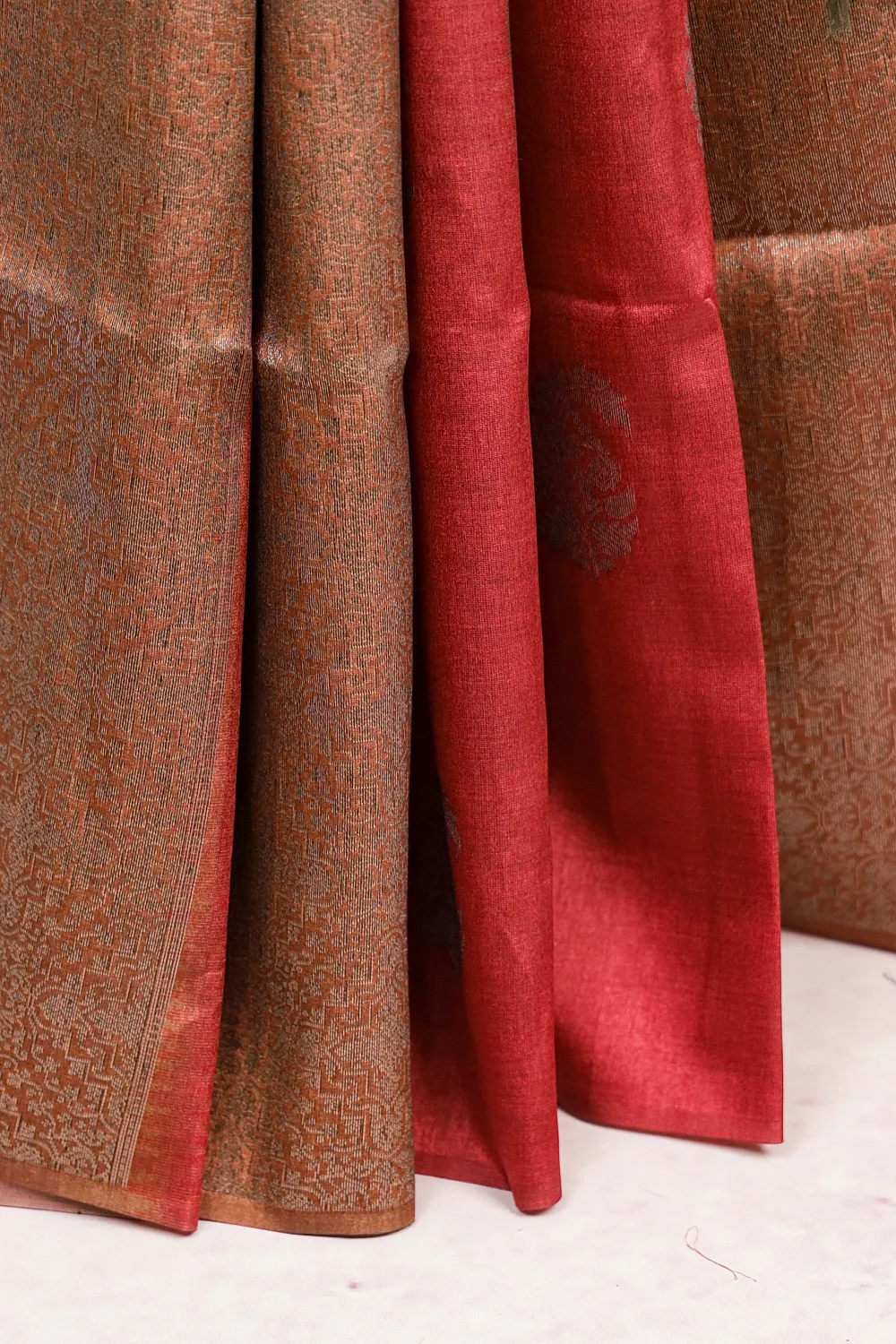 Maroon And Moss Green Semi Silk Saree