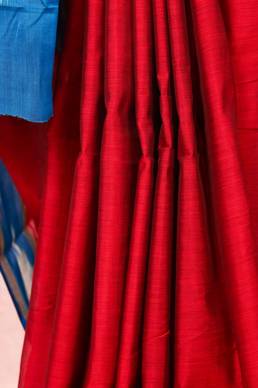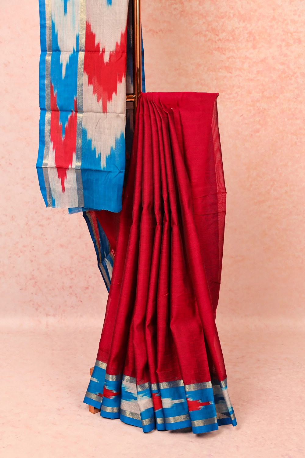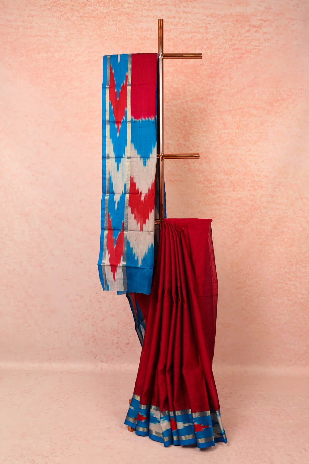 Maroon Cotton Plain Body Saree with Printed border. Includes Unstitched Blouse
