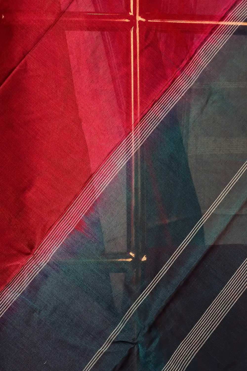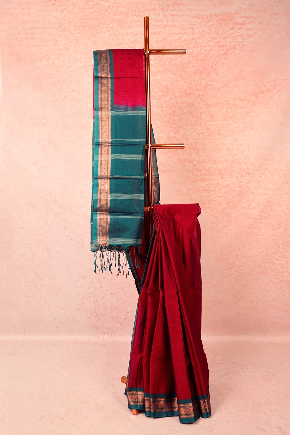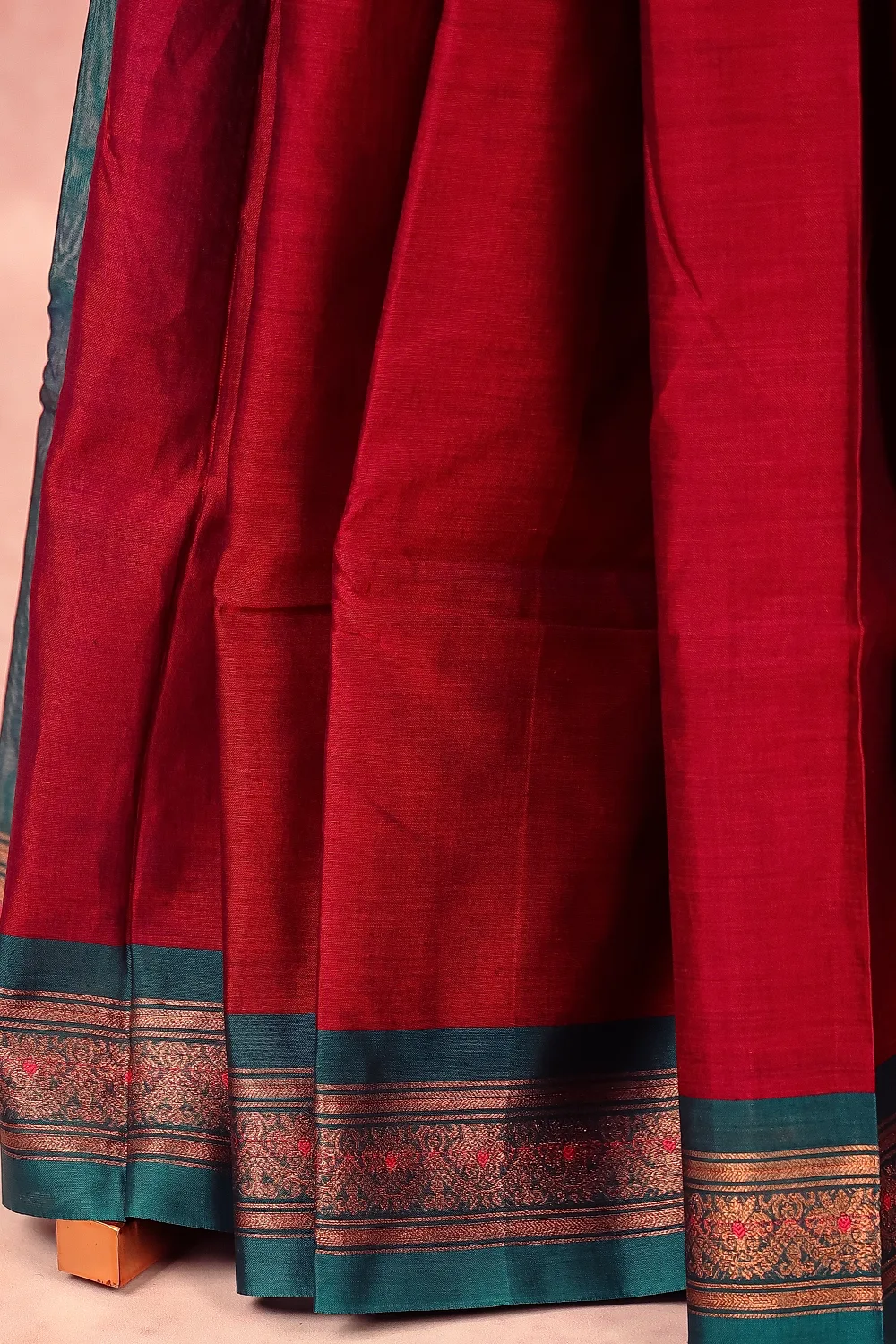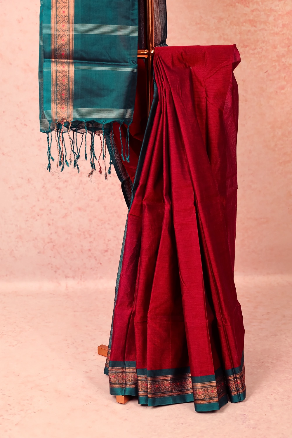 Maroon Cotton Plain Body Saree with Designer border. Includes Unstitched Blouse