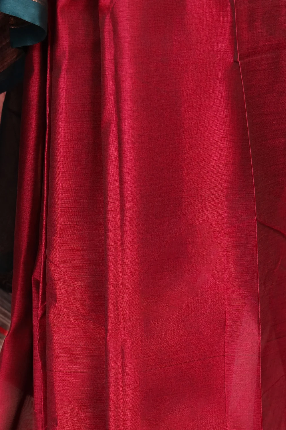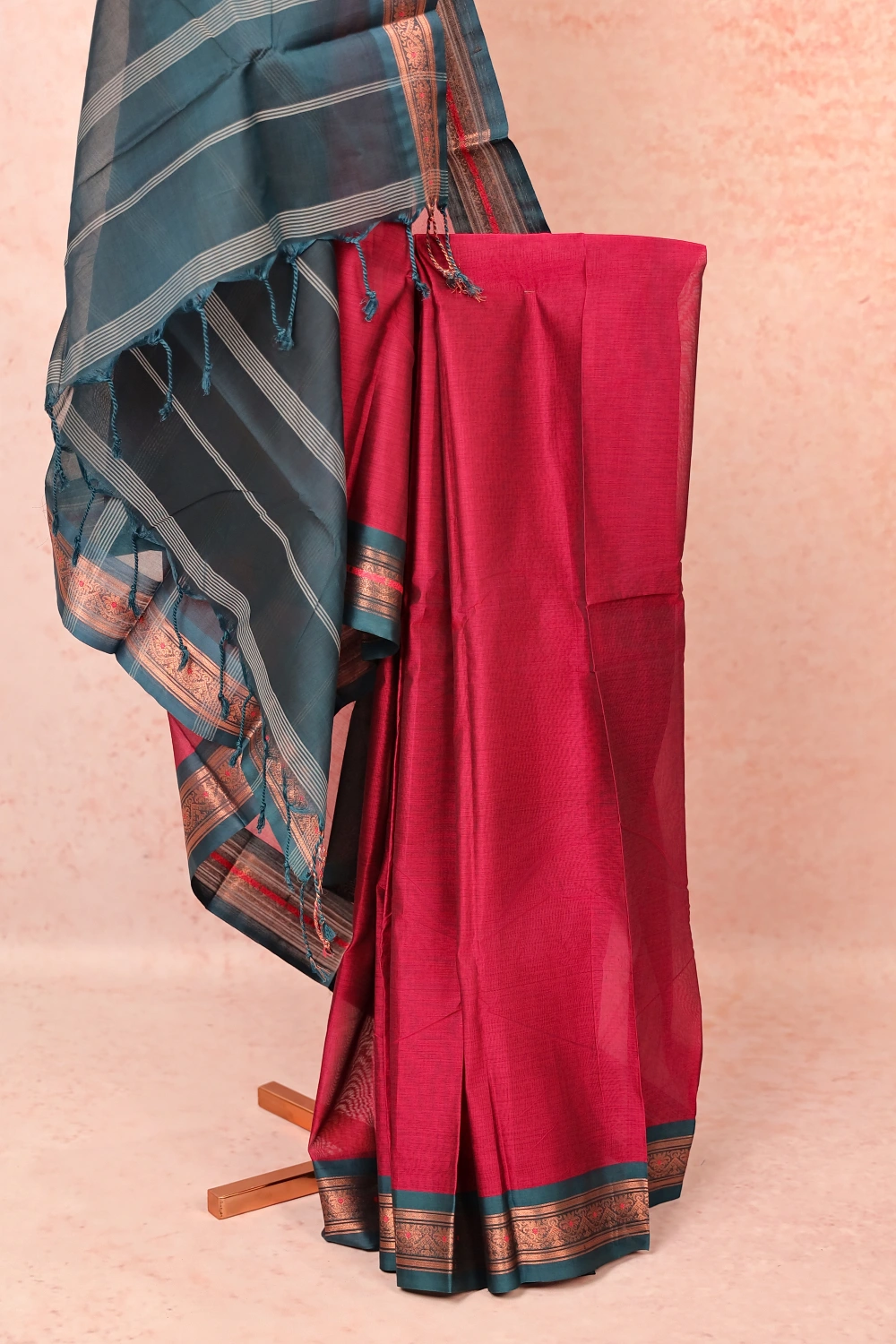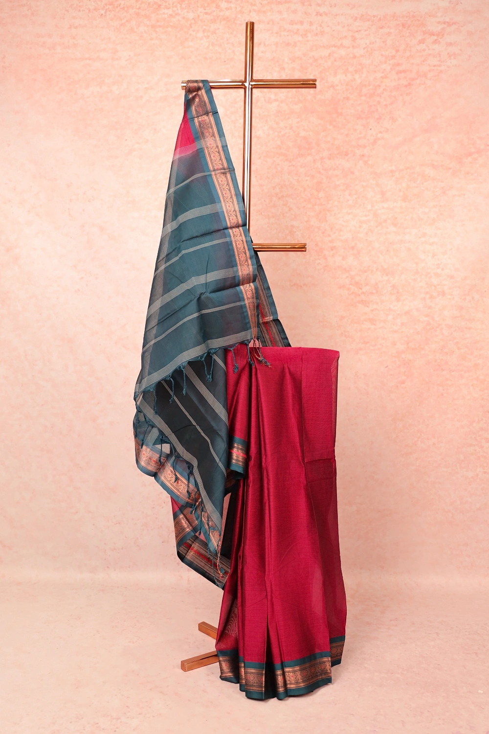 Maroon Cotton Plain Body Saree with Designer border. Incluldes Unstitched Blouse
