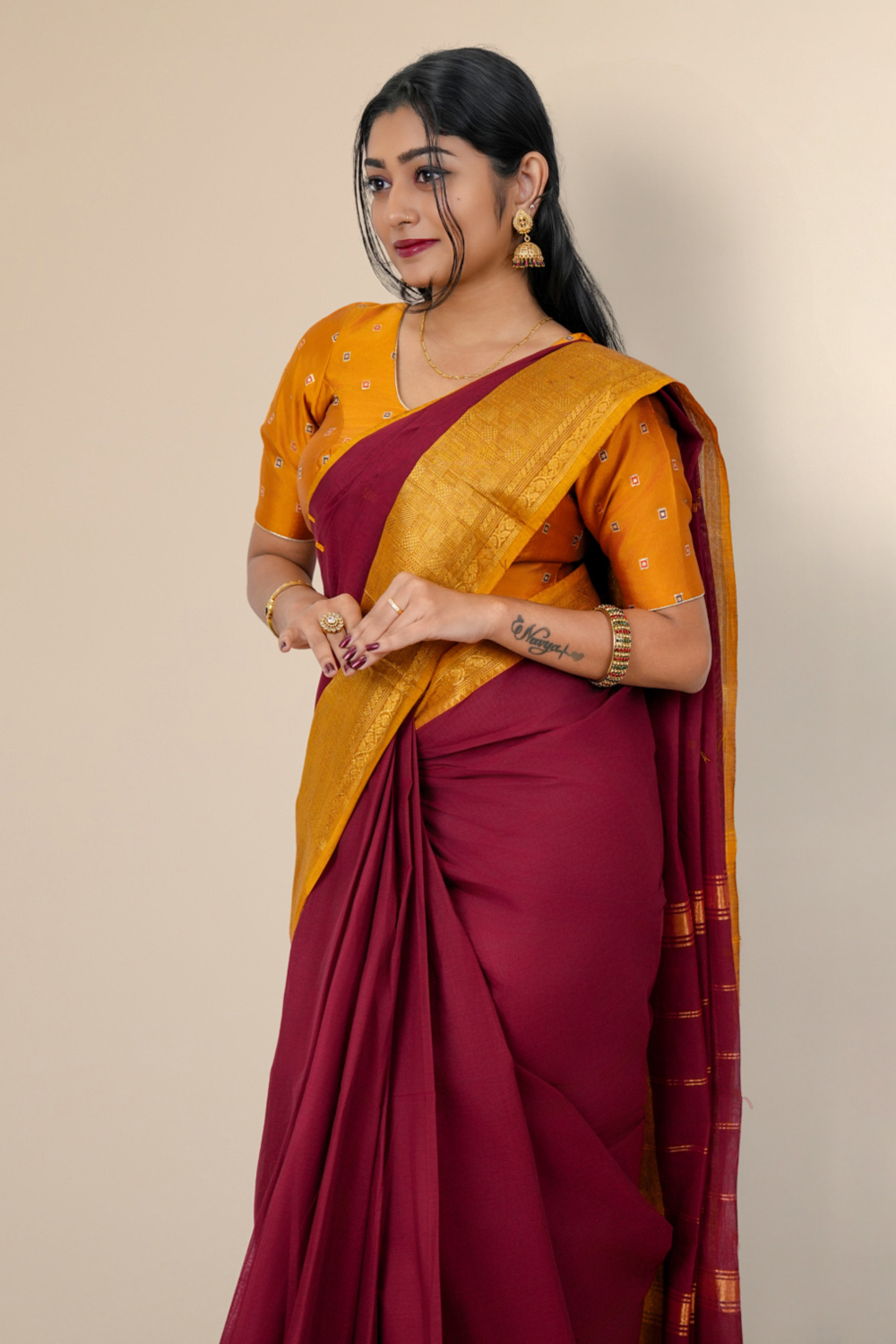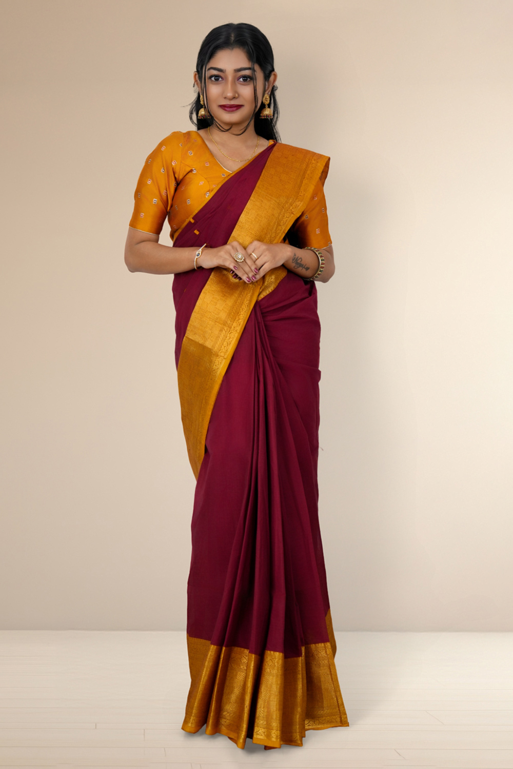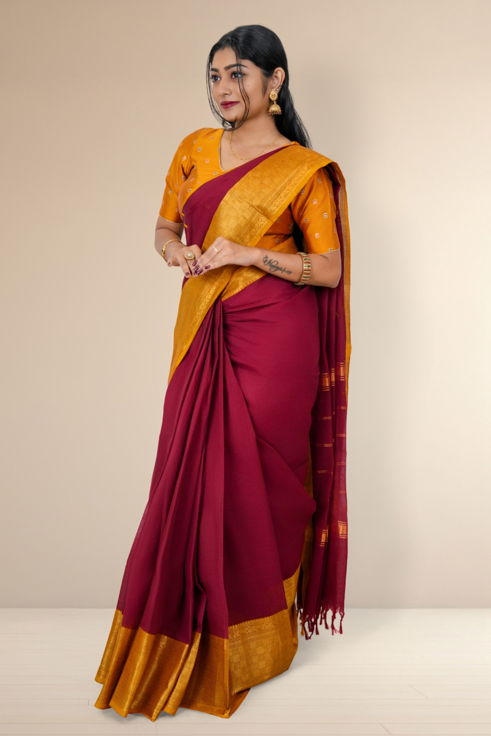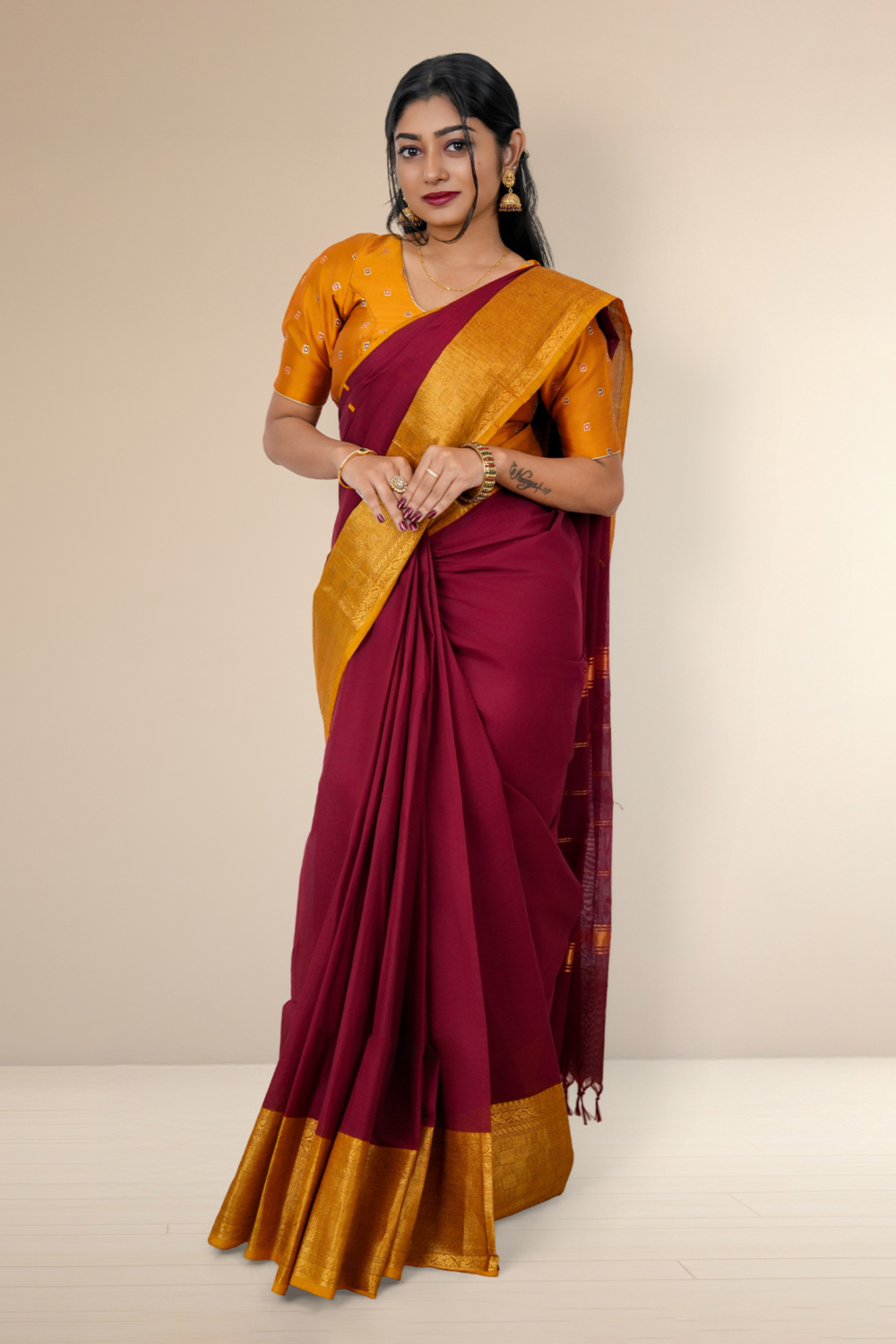 Maroon Cotton Saree