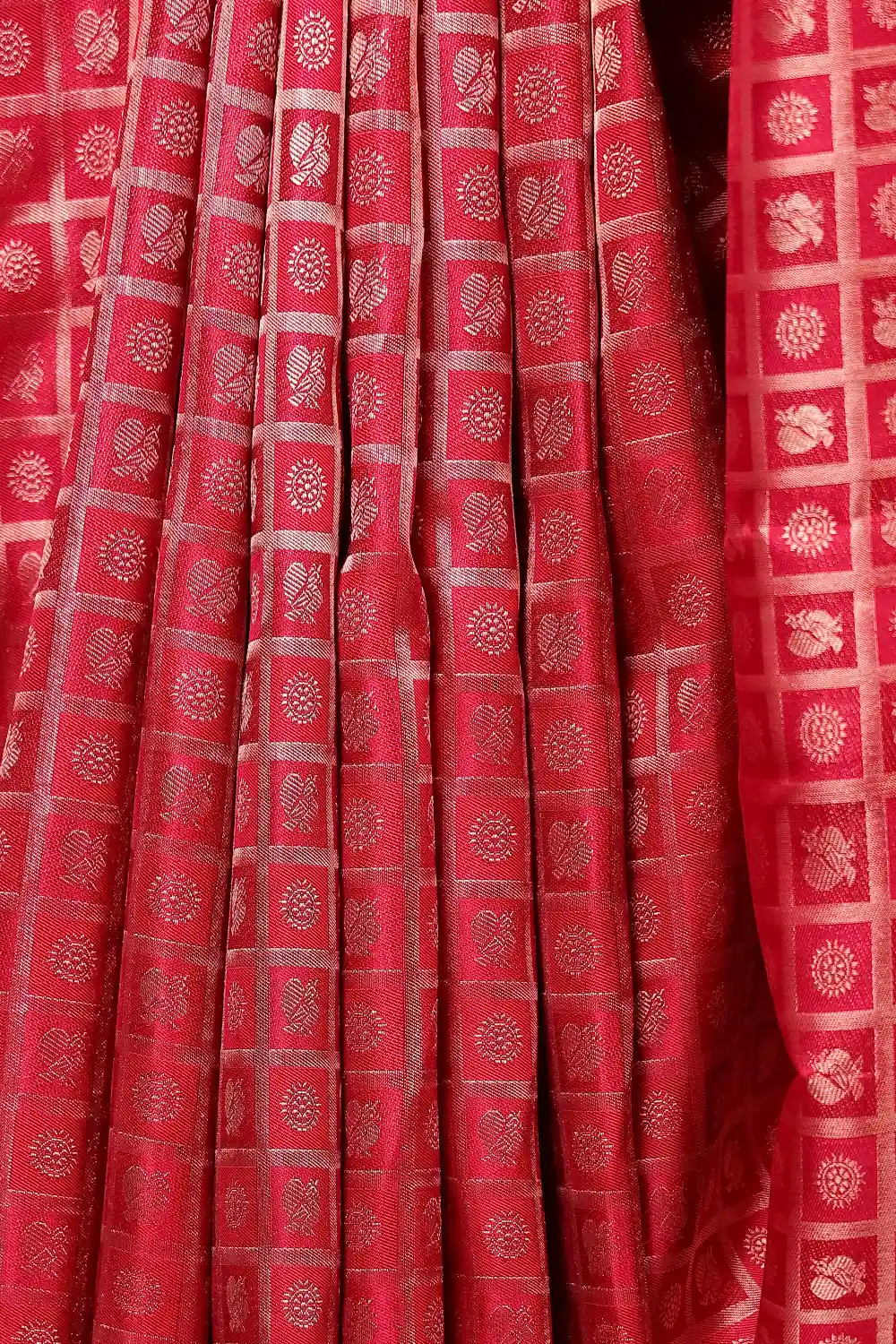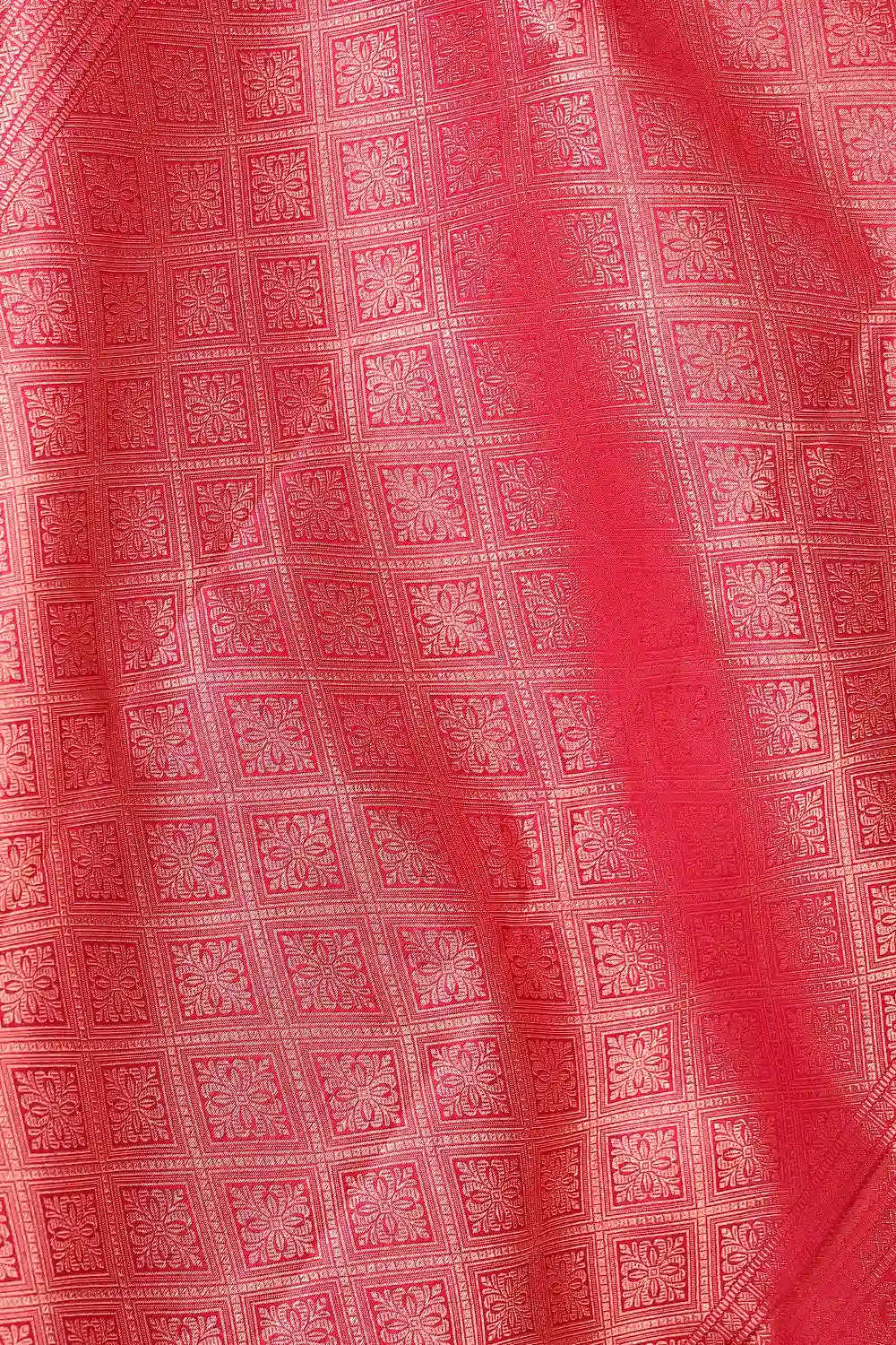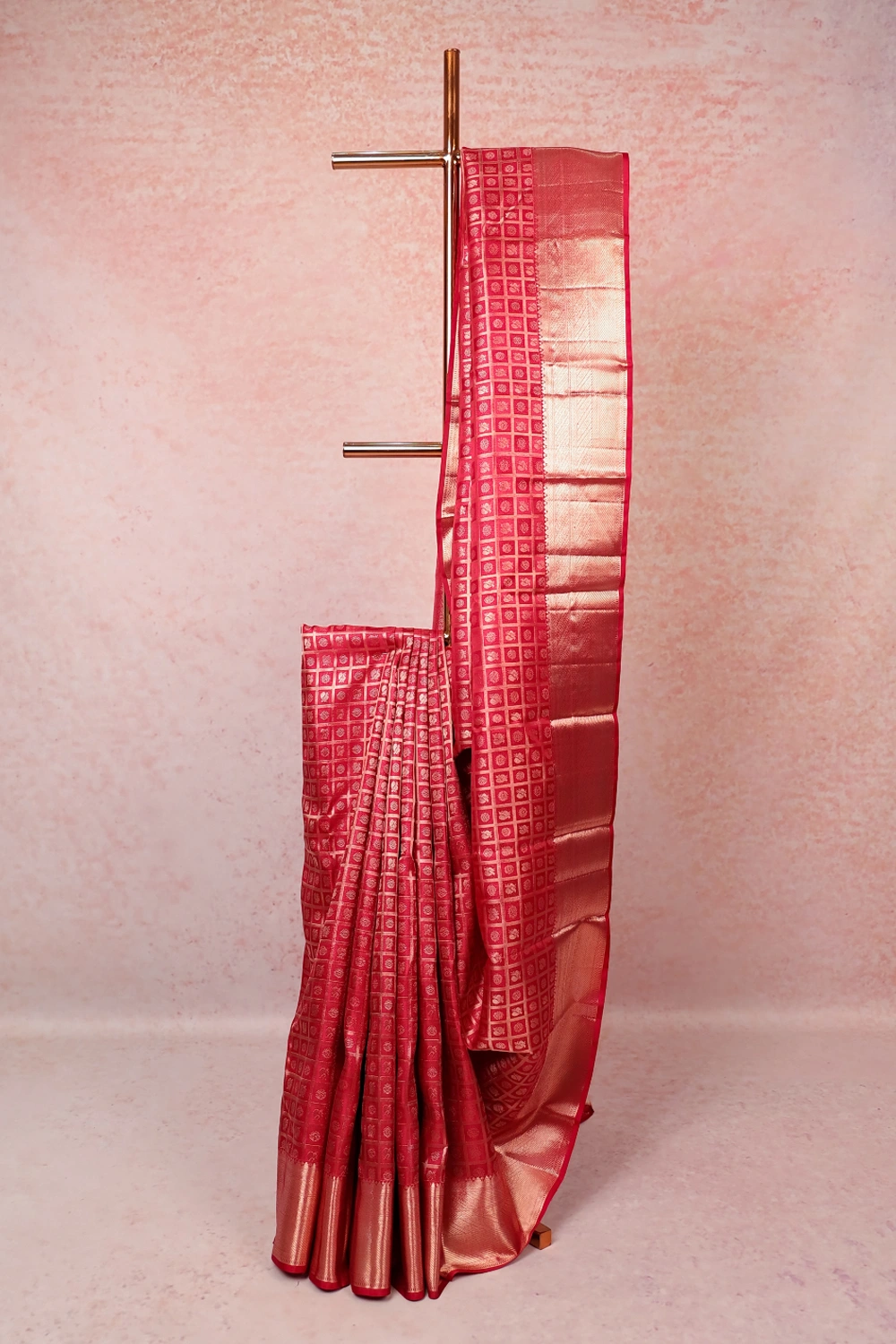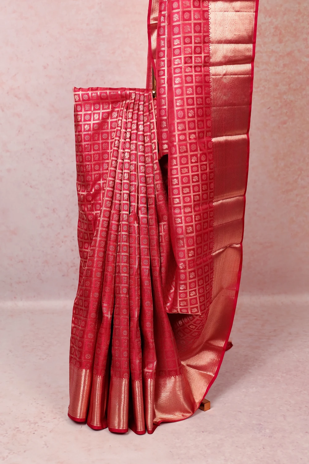 Maroon Kancheepuram Silk Brocade Saree with Designer border. Includes Unstitched Blouse