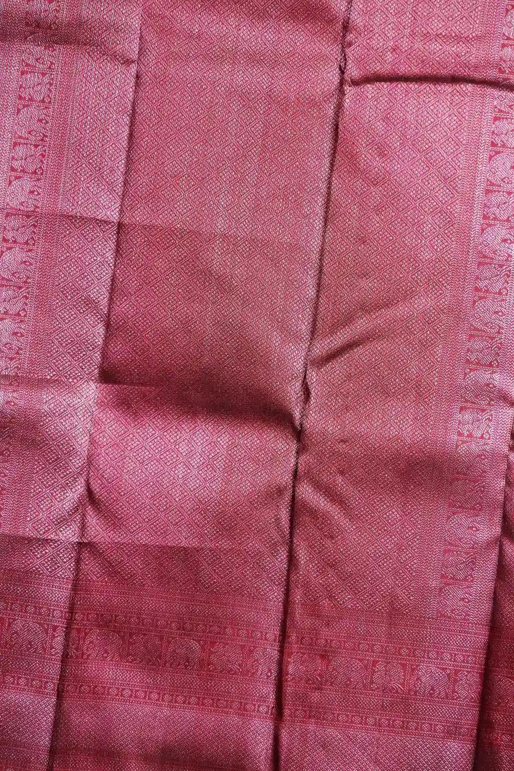 Maroon Kancheepuram Silk Brocade Saree With Designer Border. Includes Un Stitched Blouse