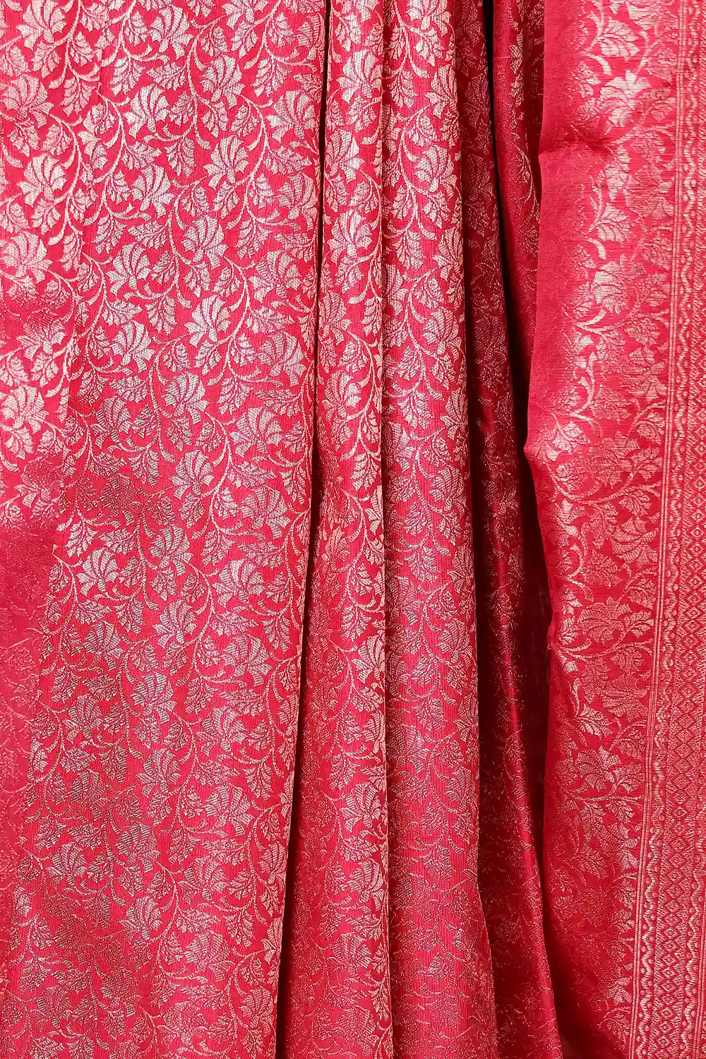 Maroon Kancheepuram Silk Brocade Saree with Designer border. Includes Unstitched Blouse