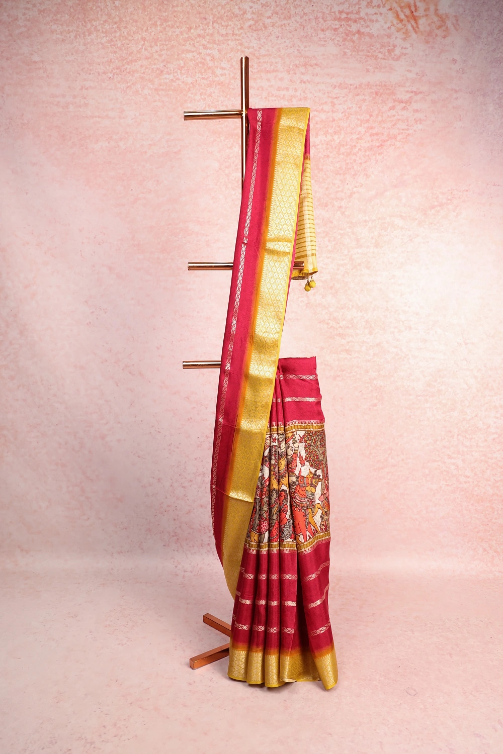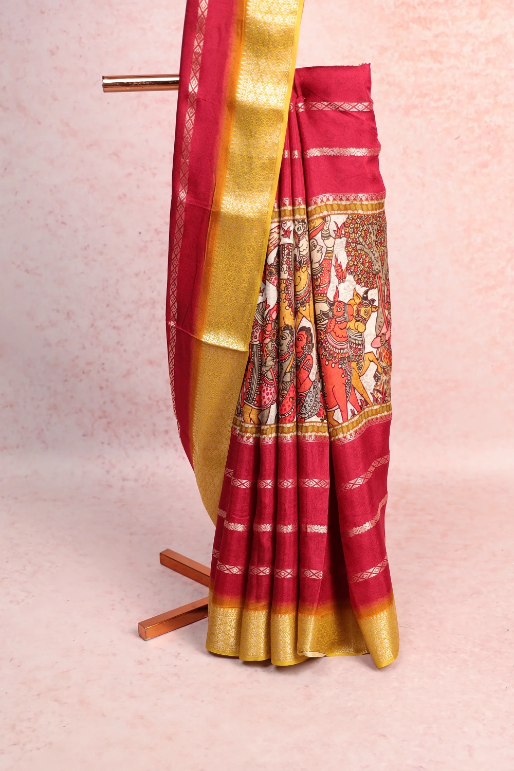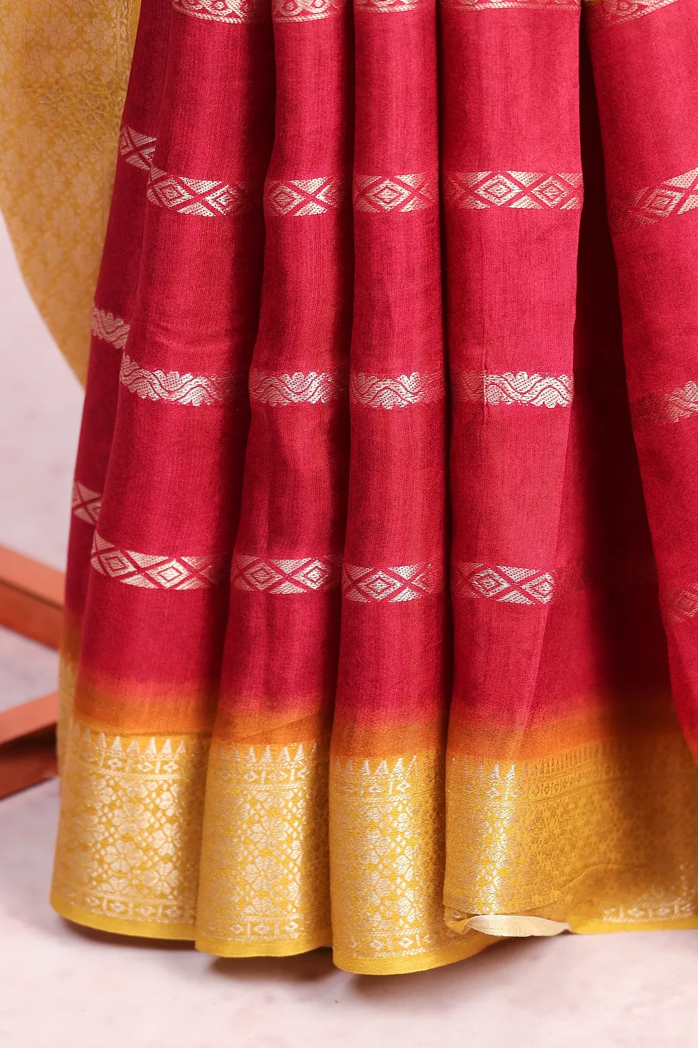 Maroon Semi Silk Lines Saree with Designer Border. Includes Unstitched Blouse
