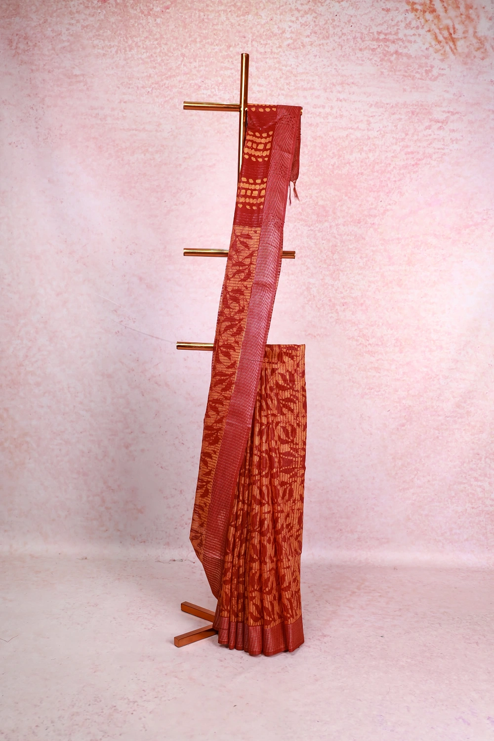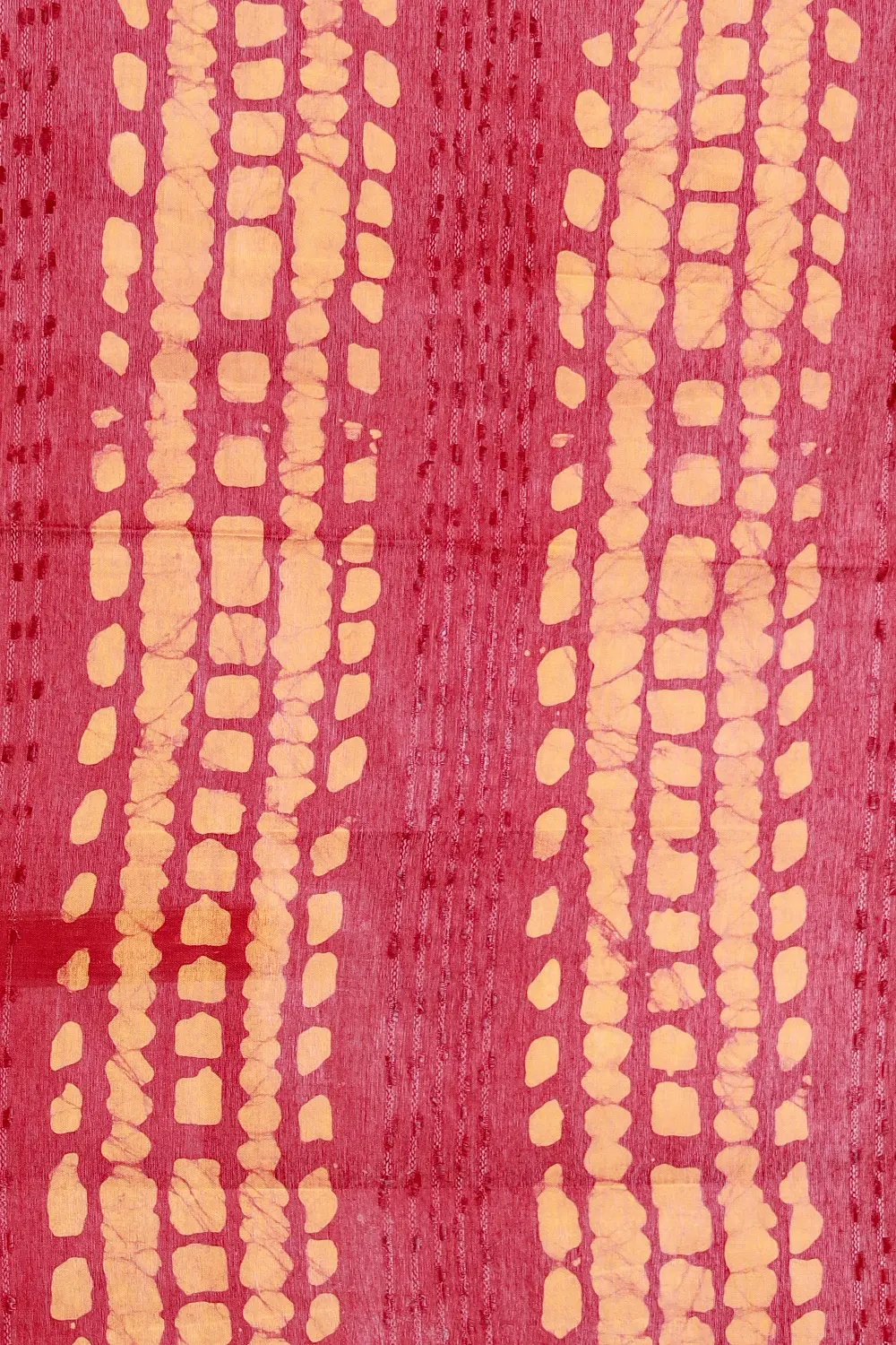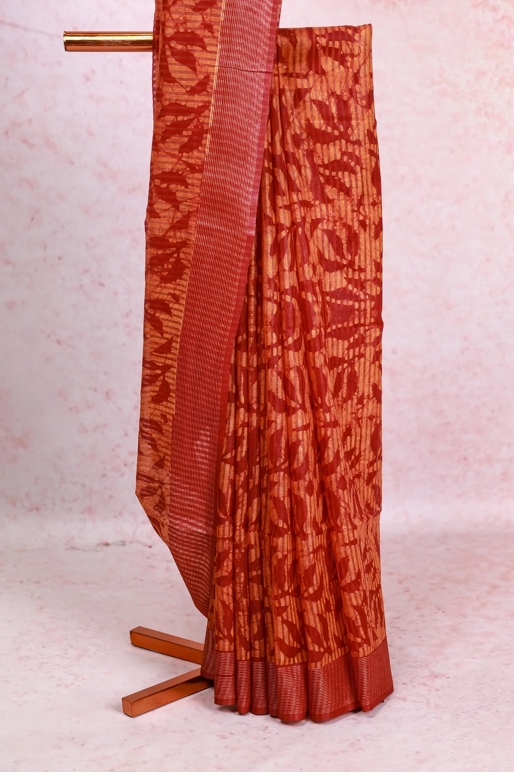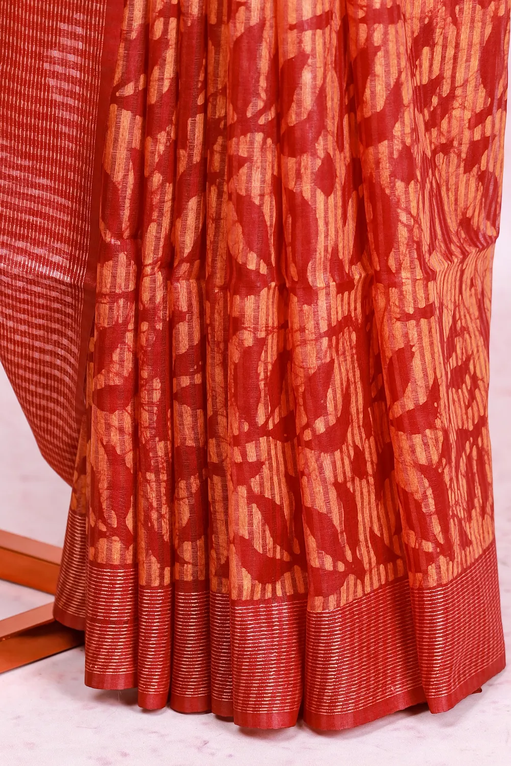 Maroon Semi Tussar Bathik Print Saree With Line Border. Includes Un Stitched Blouse