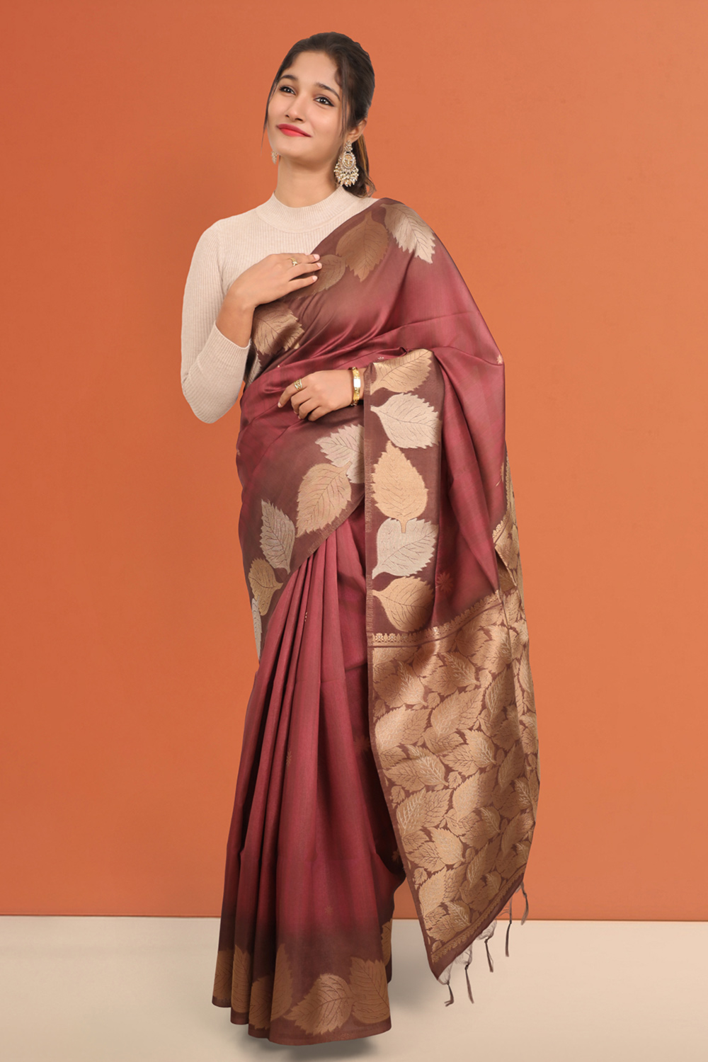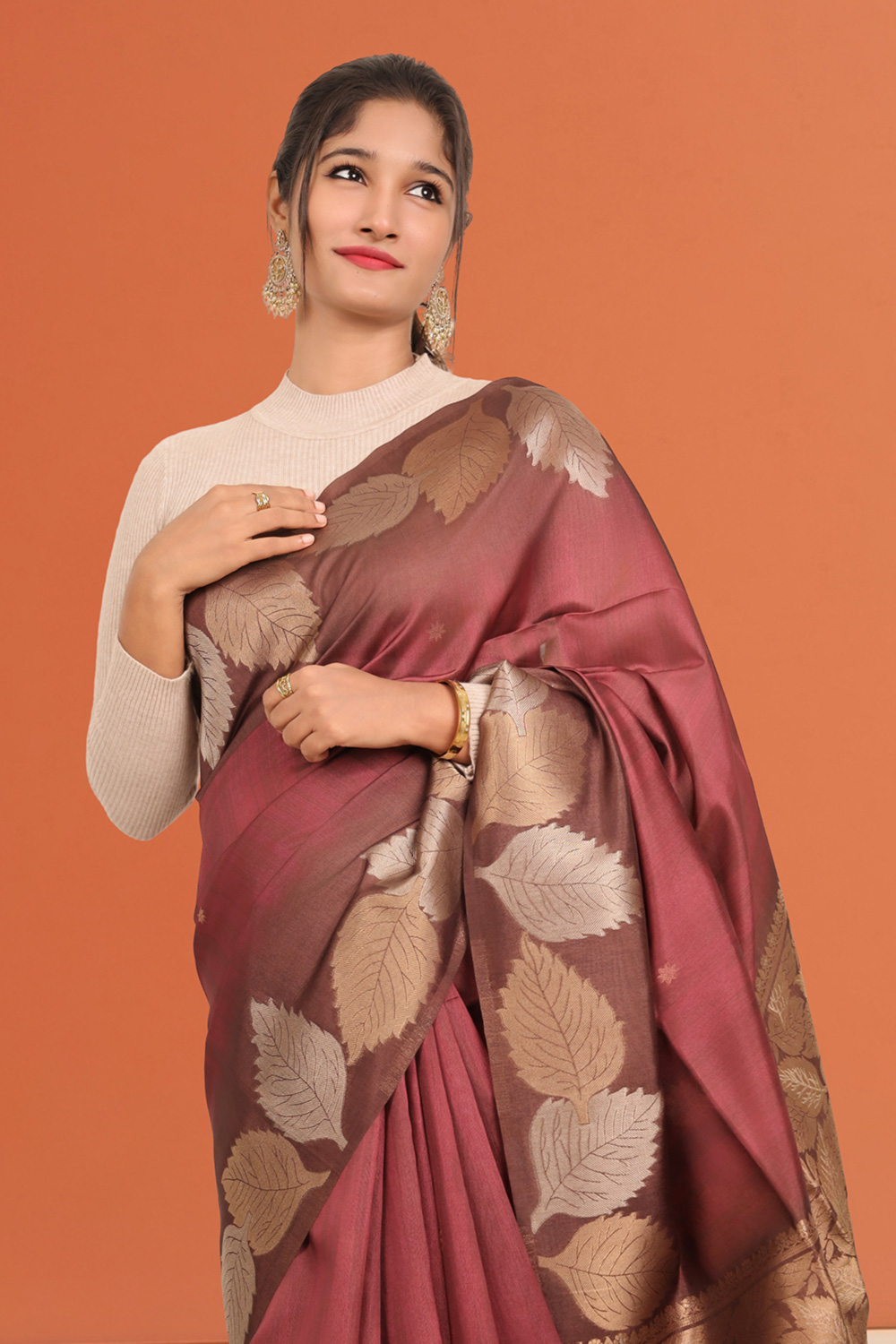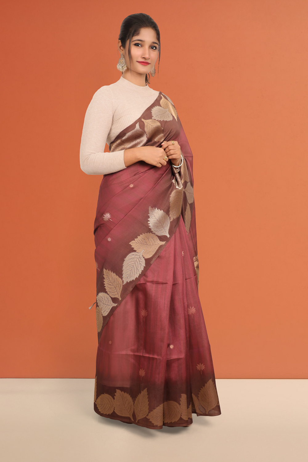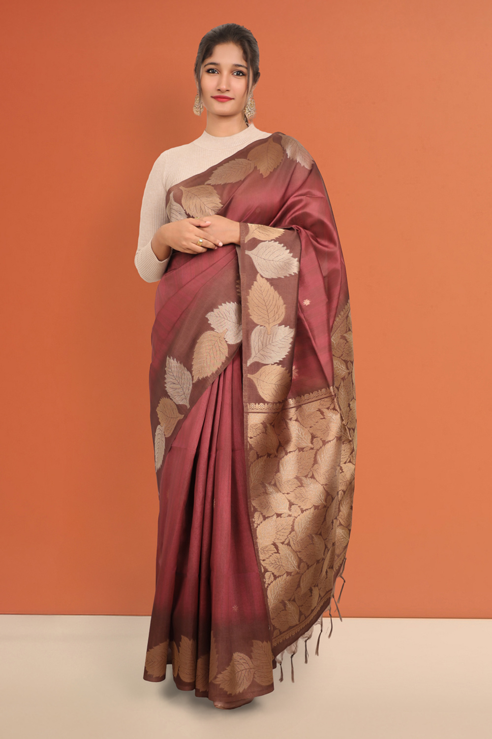 Maroon Semi Tussar Saree