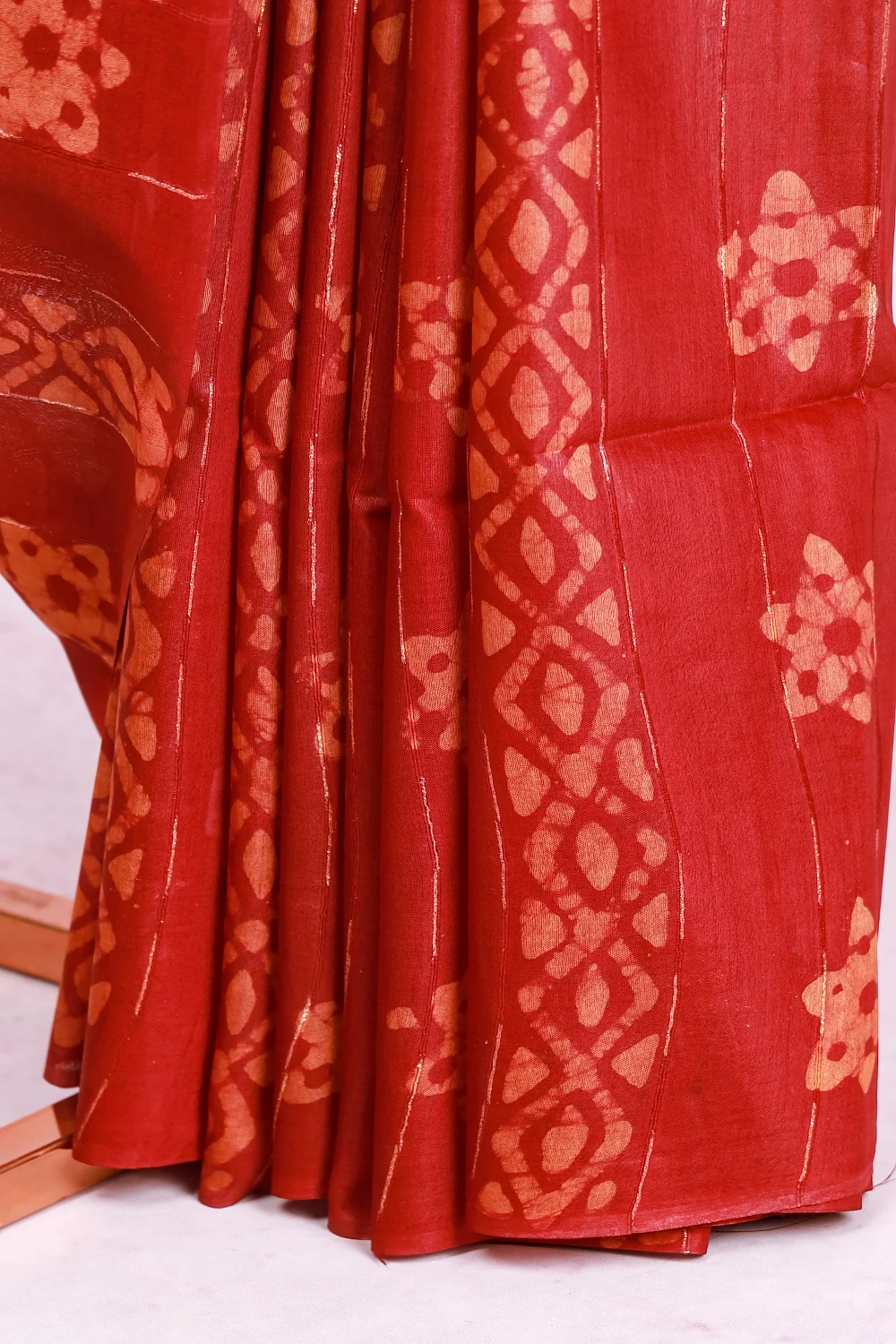 Maroon Semi Tussar Bandhani Print Saree With Bandhani Border. Includes Unstitched Blouse