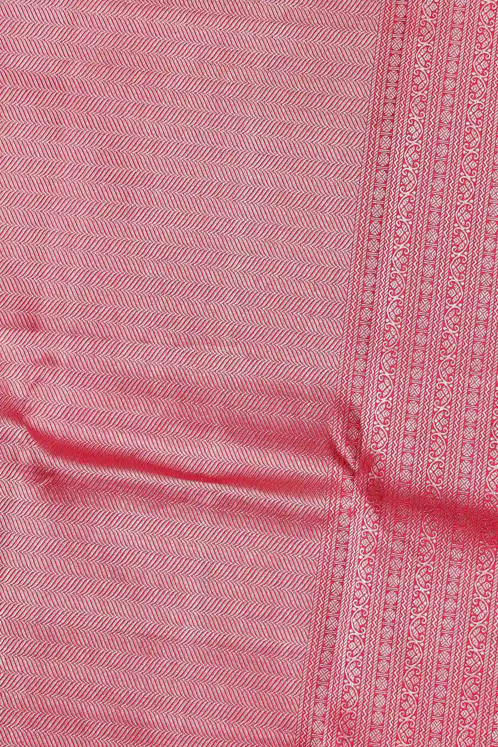 Maroonish Red Kancheepuram Silk Brocade Saree With Designer Border. Includes Un Stitched Blouse