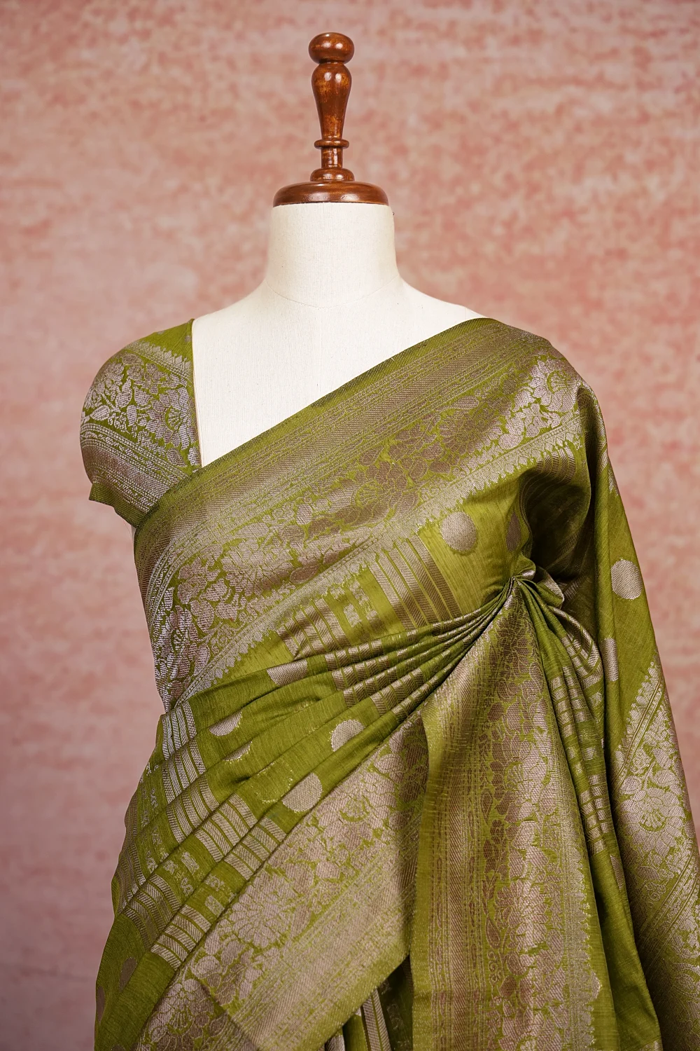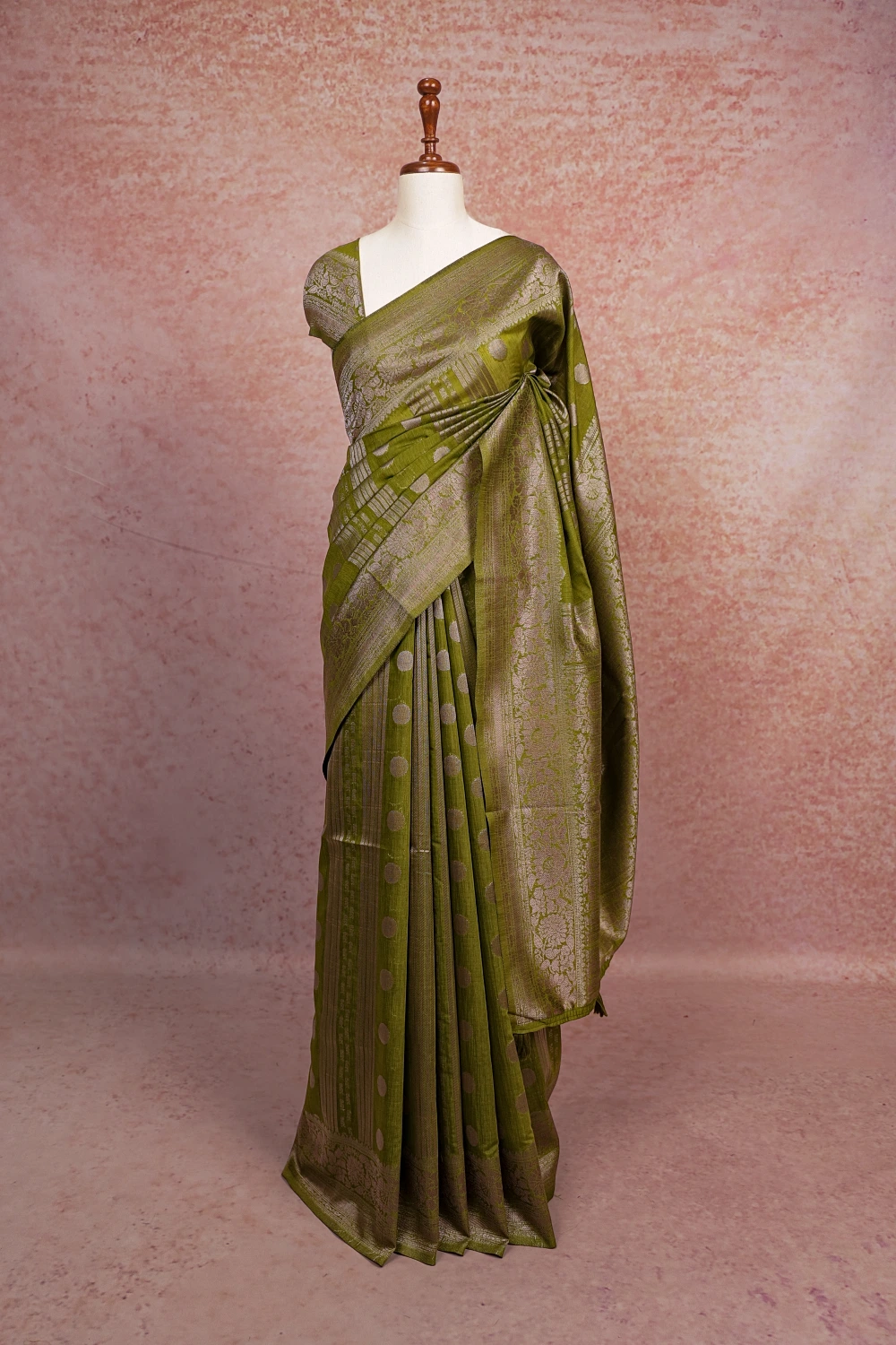Mehandi Green Semi Banarasi Saree