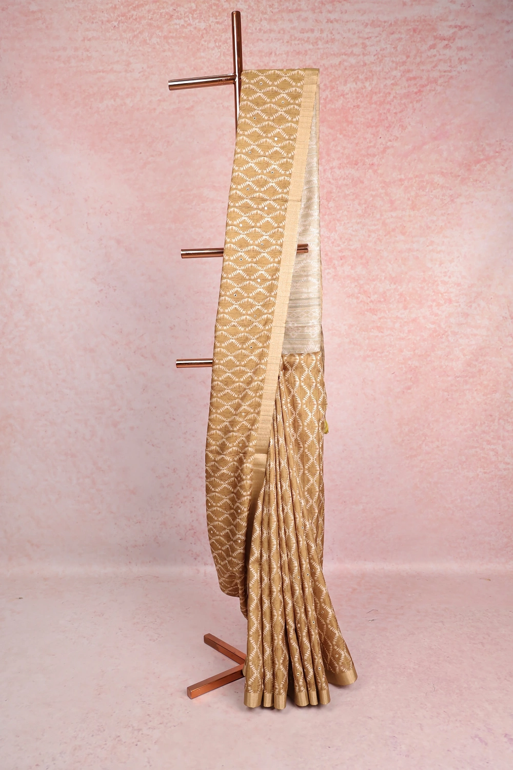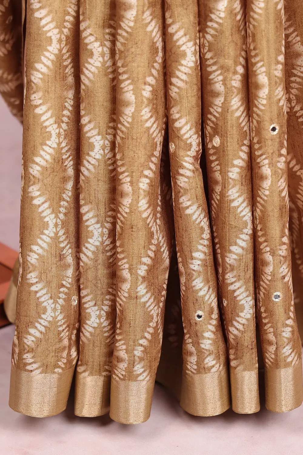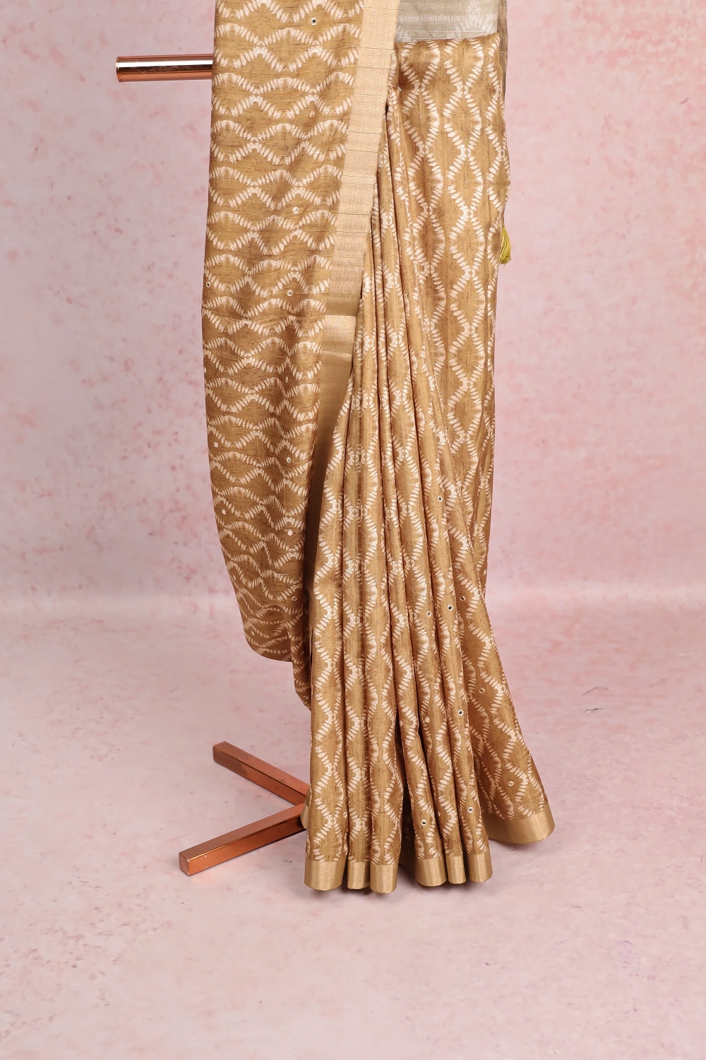 Mehandi Green Semi Tussar Printed Saree With Plain Border. Includes Un Stitched Blouse